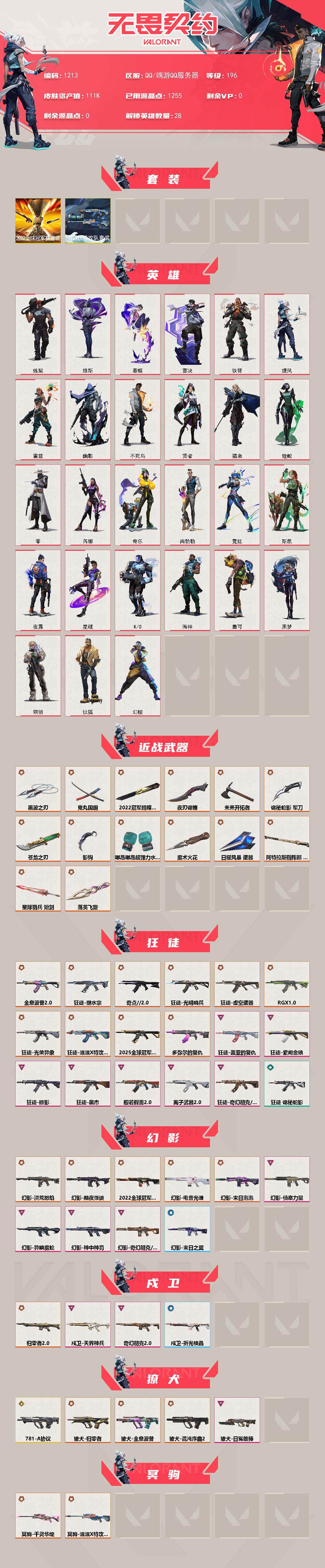 【英雄】:幻棱,炼狱,维斯,暮蝶,钛狐,壹决,铁臂,捷风,雷兹,幽影,不死鸟,贤者,猎枭,蝰蛇,零,芮娜,奇乐,尚勃勒,霓虹,斯凯,夜露,星礈,K/O,海神,盖可,黑梦,钢锁
