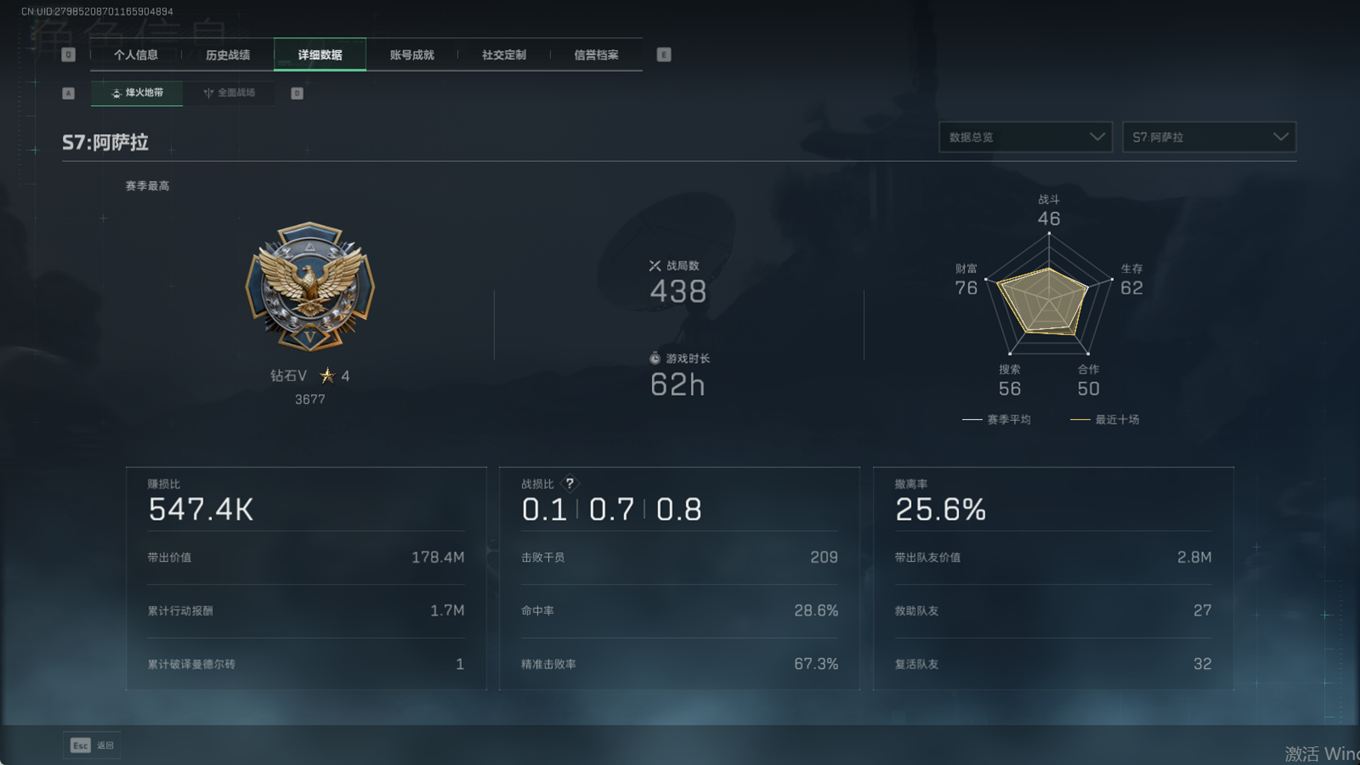 N6384/QQ区/哈夫币184W/总资产387.9M/行动等级60/战场等级23/s7赛季顶级安全