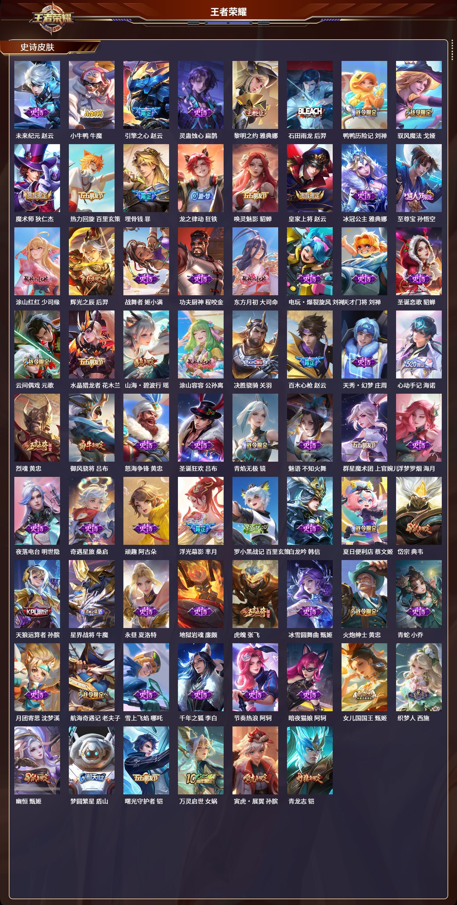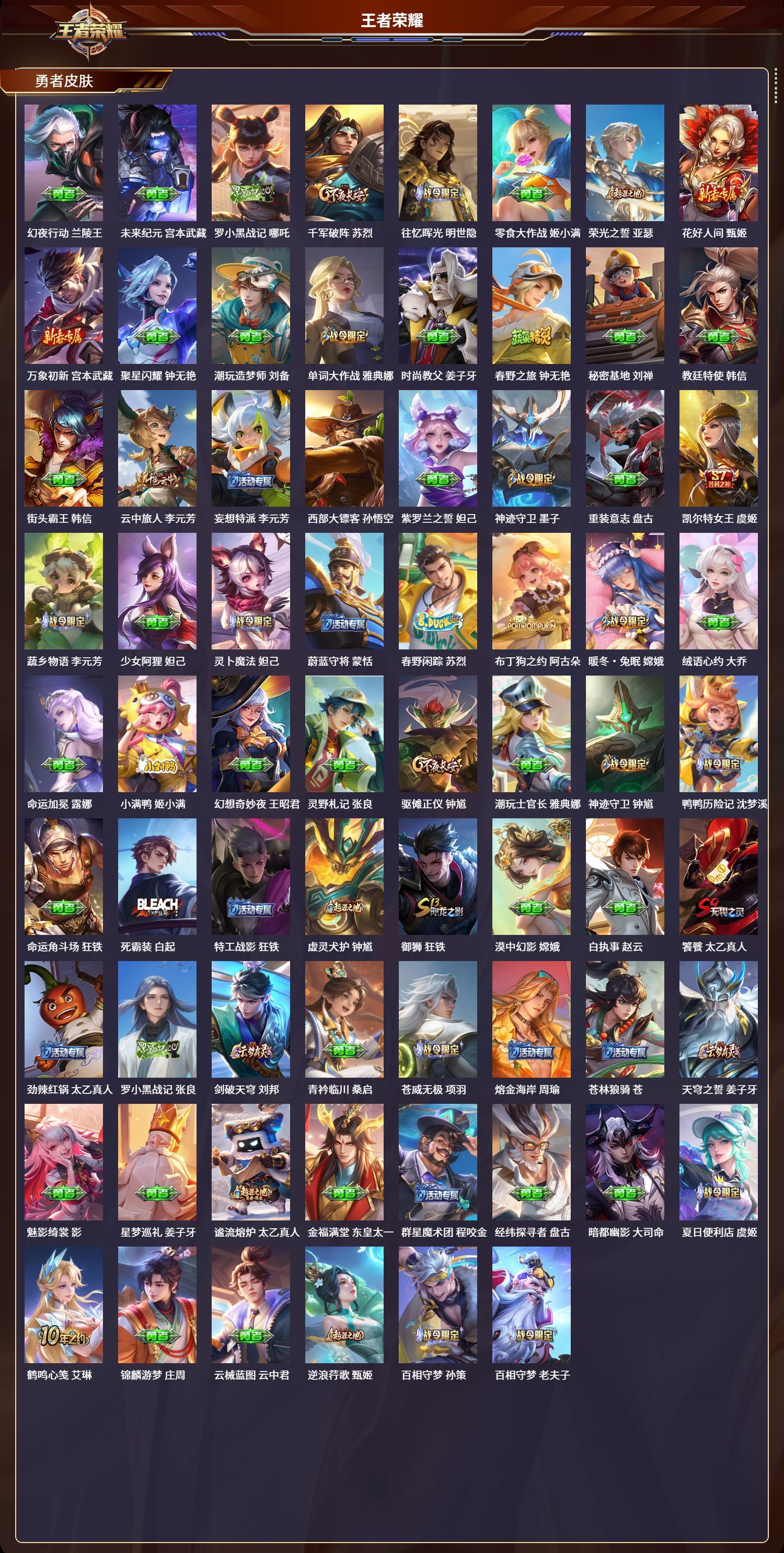 苹果QQ/无双王者/575皮肤/127英雄/9典藏/1珍品无双/7无双/5珍品传说/93传说/192