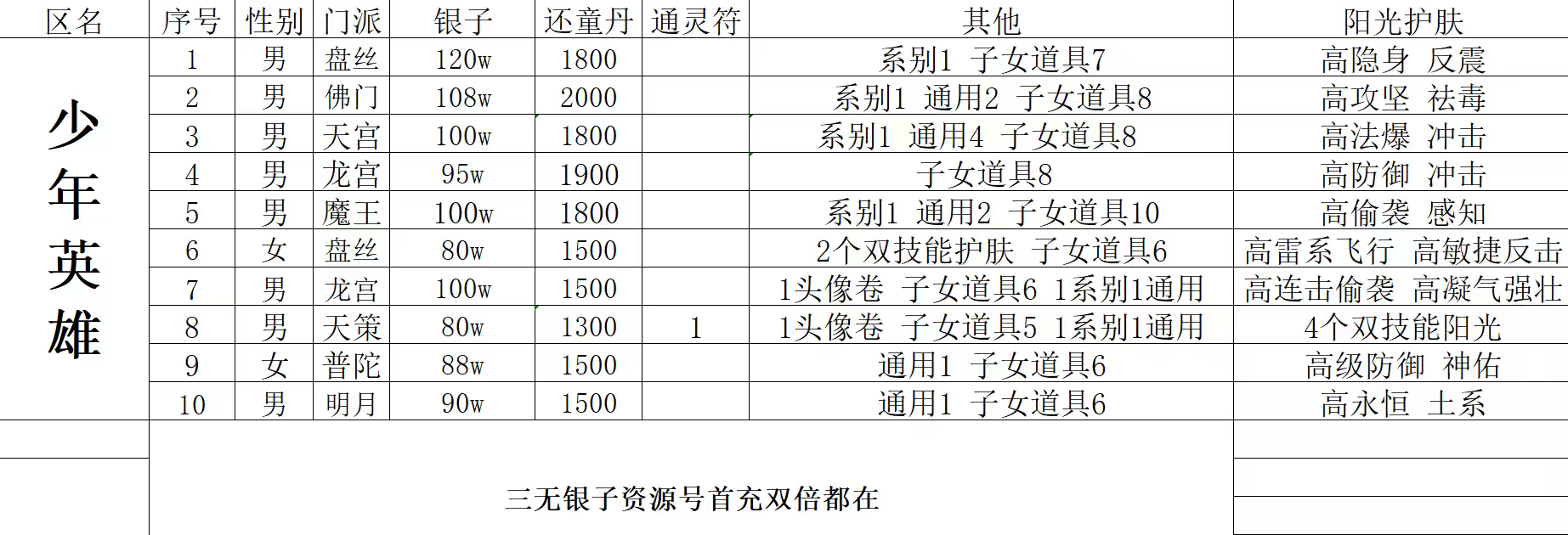 少年英雄 男龙宫 百万银子资源 超值百万护符