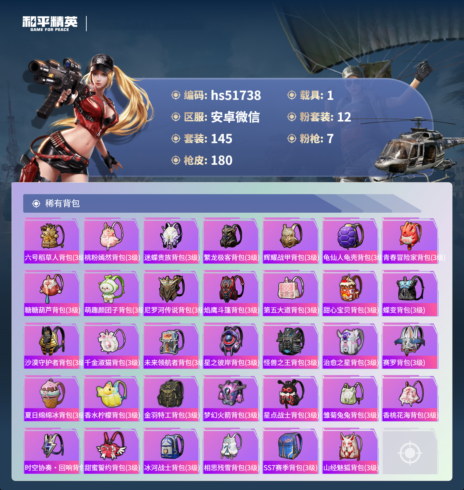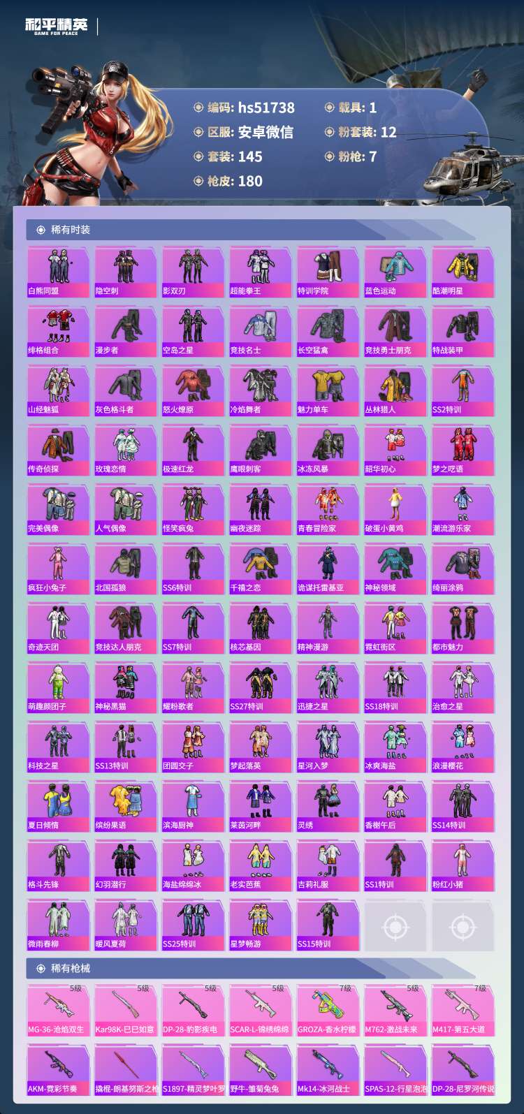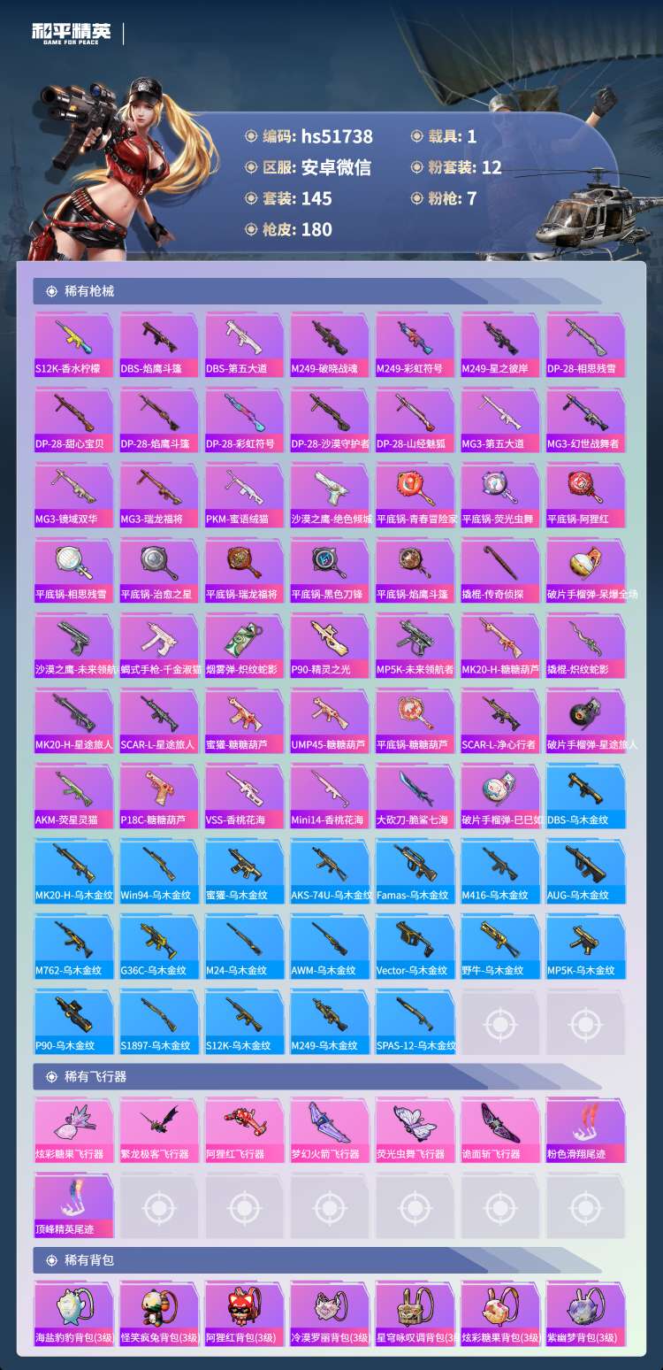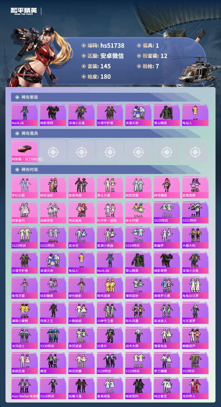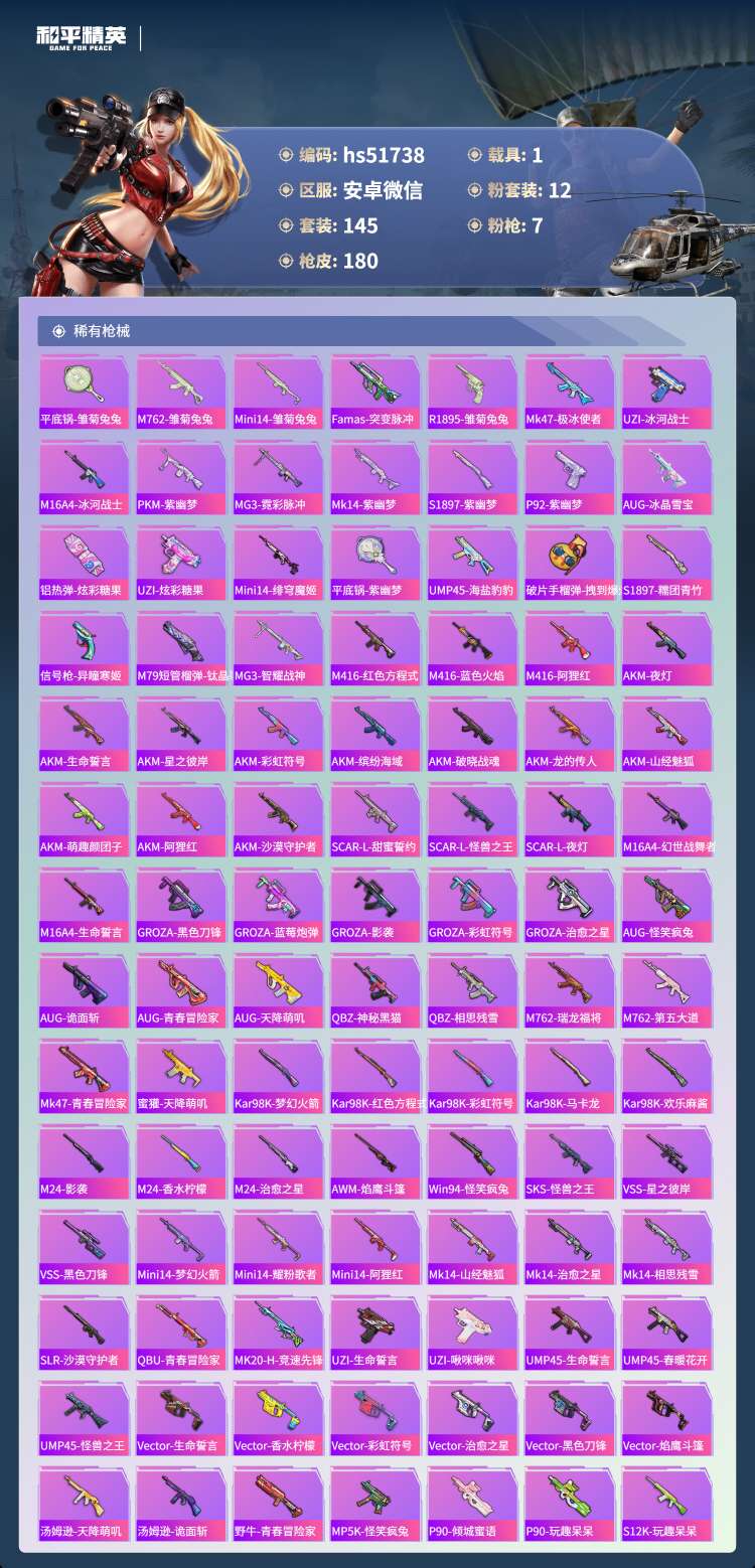 安卓微-5王牌印记-12粉装-7特效枪-1载具-145套装-18