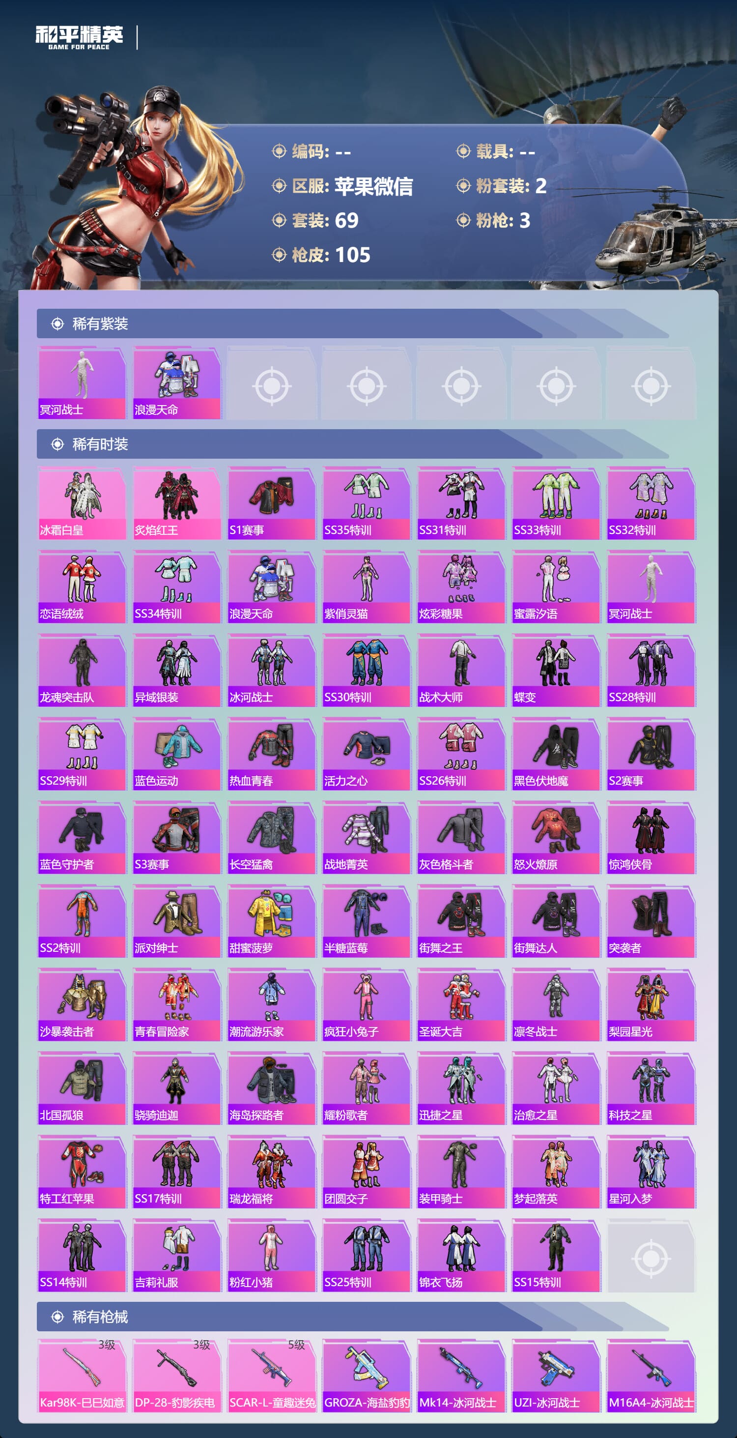 苹果微/-8王牌印记-2粉装-3特效枪-69套装-105枪皮-1卓越