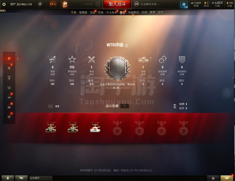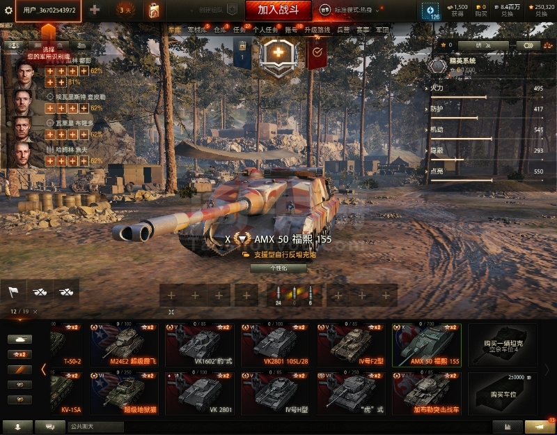 银币600万、6配件1辆7级金币车:IS2S3辆6级金币车:斯柯达T40、131虎式、T3485