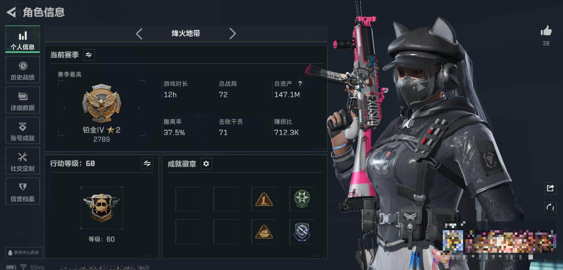 【mhlm504】总资产:147.1M,哈夫币:153W,武器皮肤106,烽火