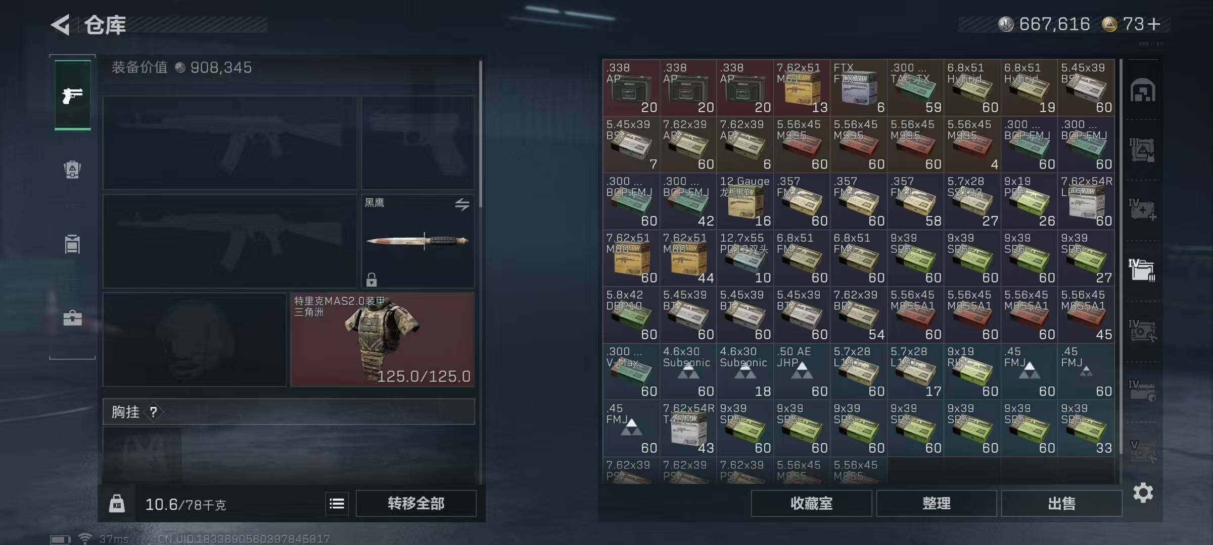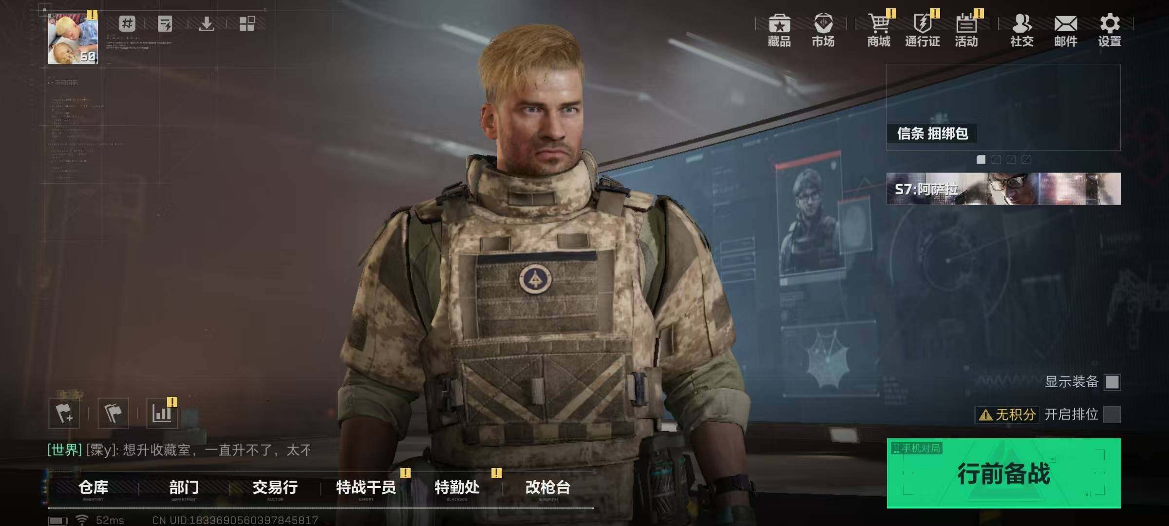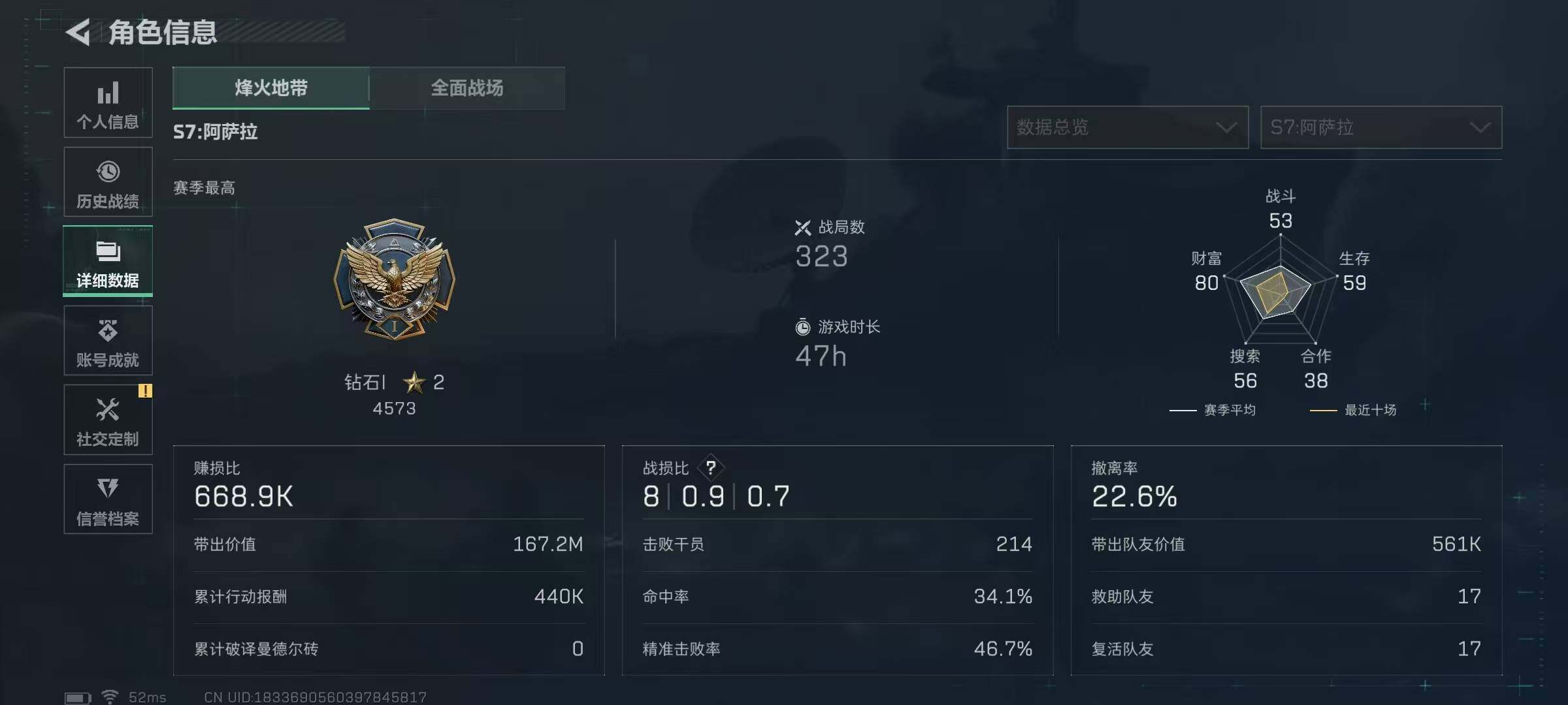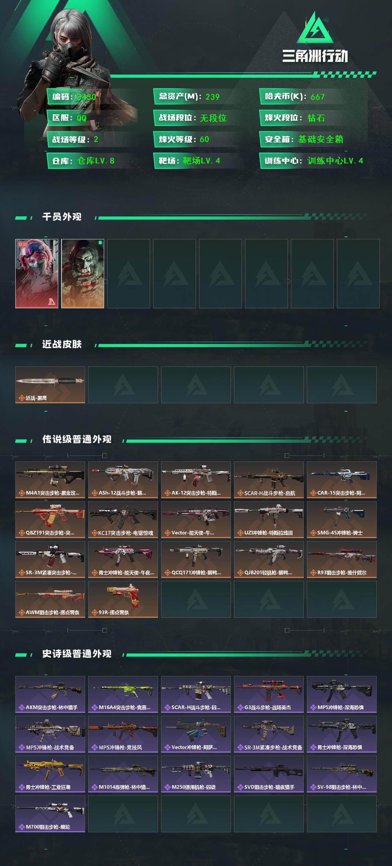 667k哈伏币-239m流动资产-60烽火等级-钻石-2战场等级-无军衔