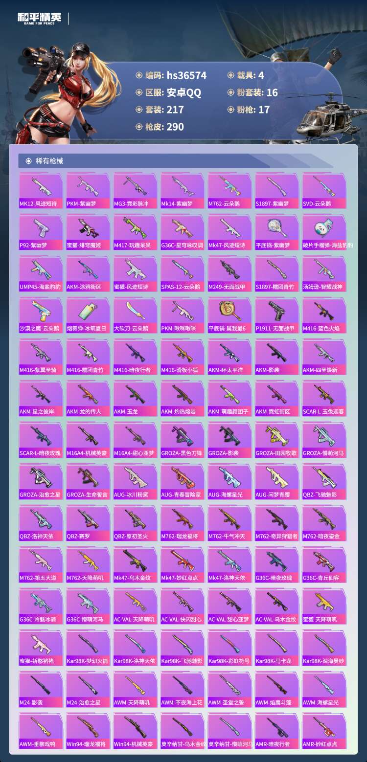 安卓手Q-16王牌印记-有战神框-16粉装-17特效枪-4载具-