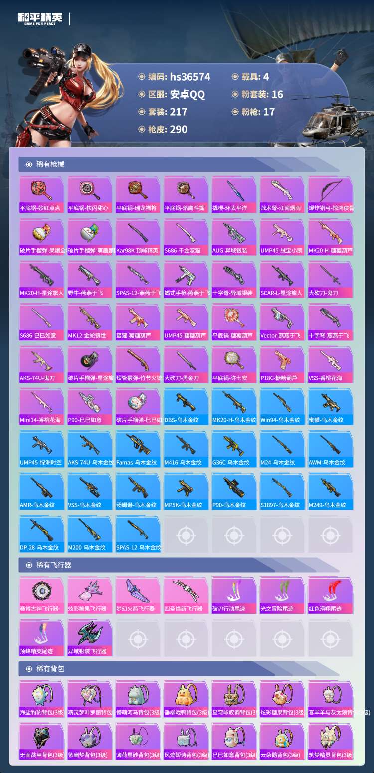 安卓手Q-16王牌印记-有战神框-16粉装-17特效枪-4载具
