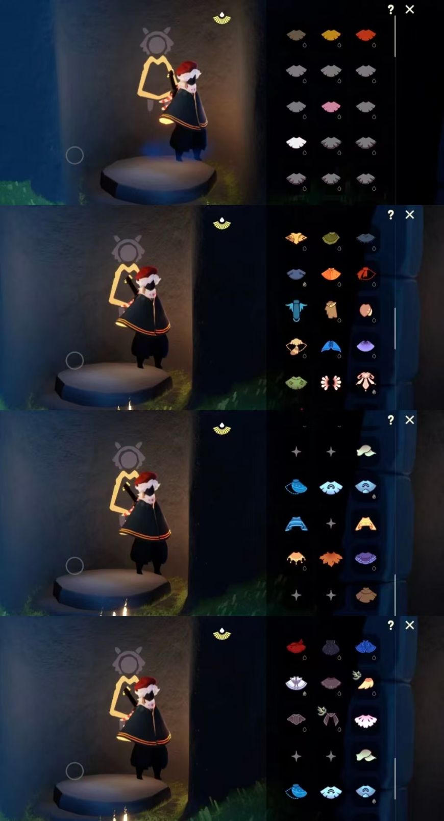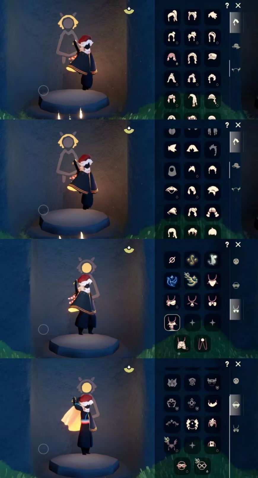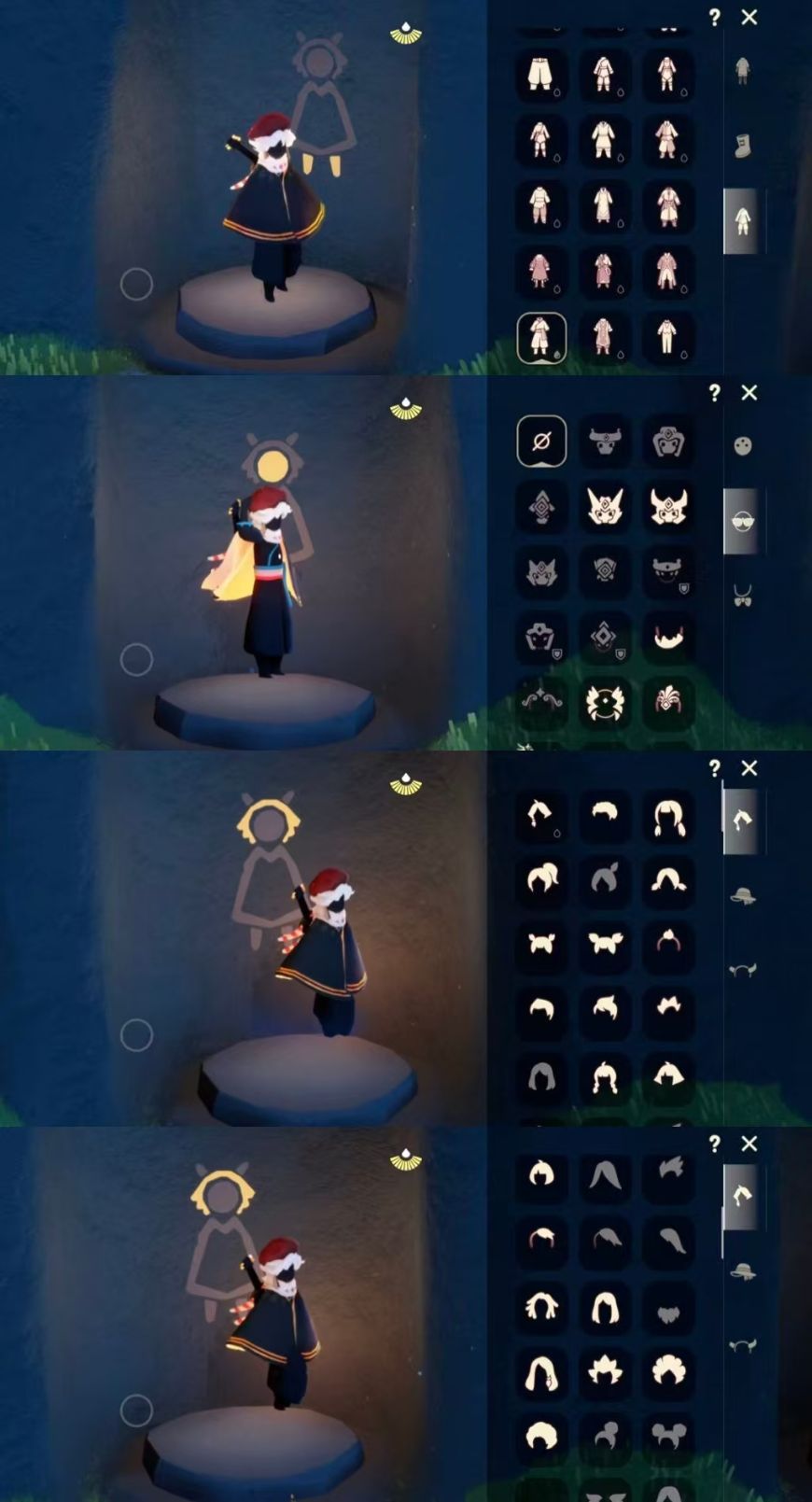 区服:国服ios登入方式:手机'蜡烛数量:380翼数量:93爱心:38身高:1.5已经毕业地图:霞谷'已经毕业季节:青鸟季,姆明季,二重奏季礼包数量:2稀有礼包:彩虹武士裤,彩虹耳饰热门物品:公主头,正太头,樱花头,猫猫头,武士裤,花环头饰,宴会围巾,虚荣发型,花瓣斗篷,吉他,笛子,铃铛,雨伞其他亮点:迁徙季季卡