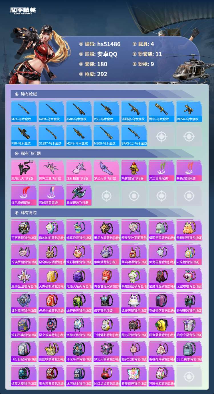 安卓手Q-13王牌印记-11粉装-9特效枪-4载具-180套装-2