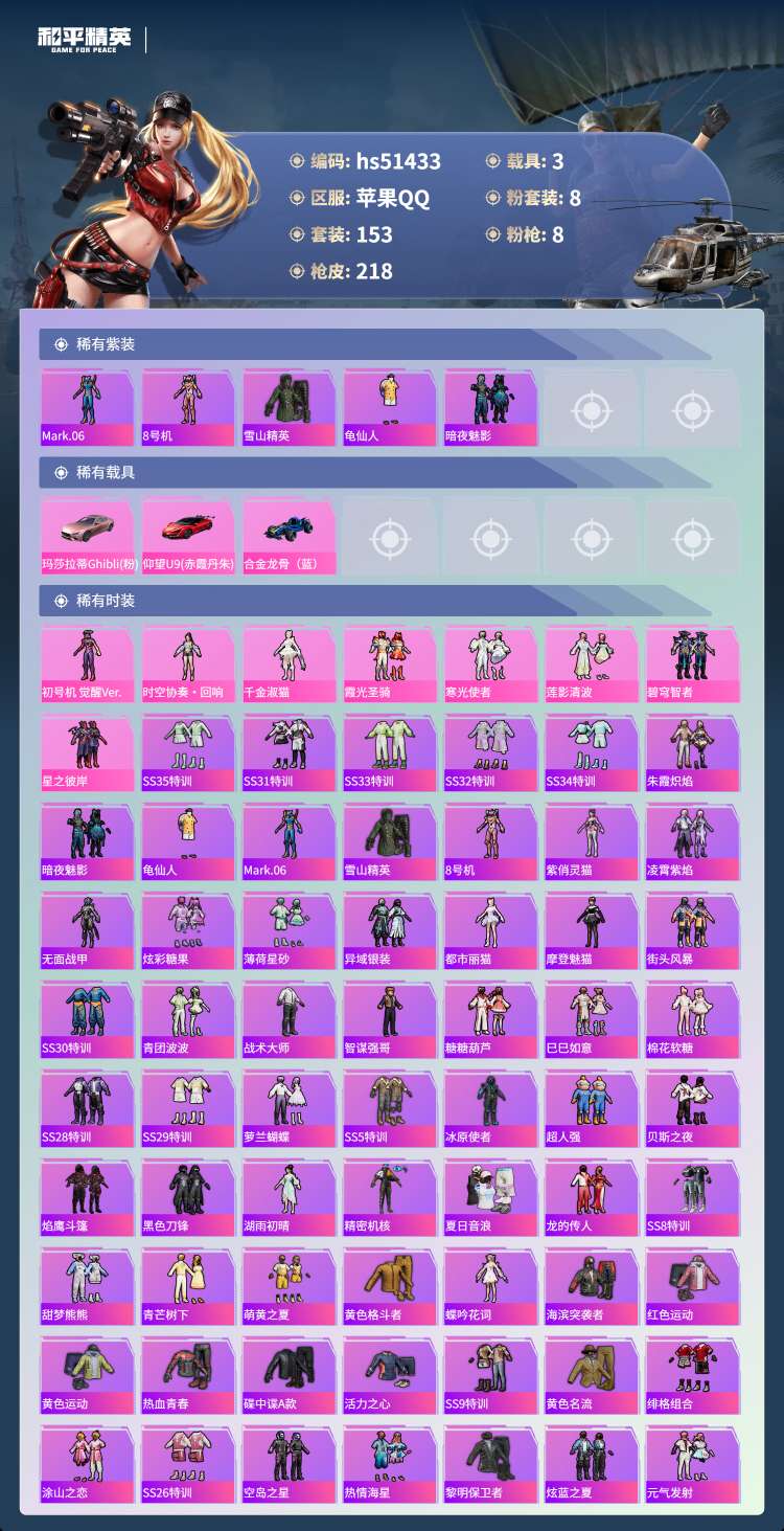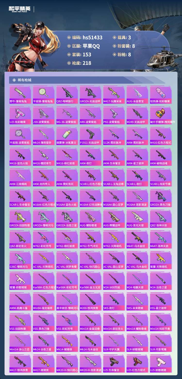 苹果手Q-12王牌印记-8粉装-8特效枪-3载具-153套装-21