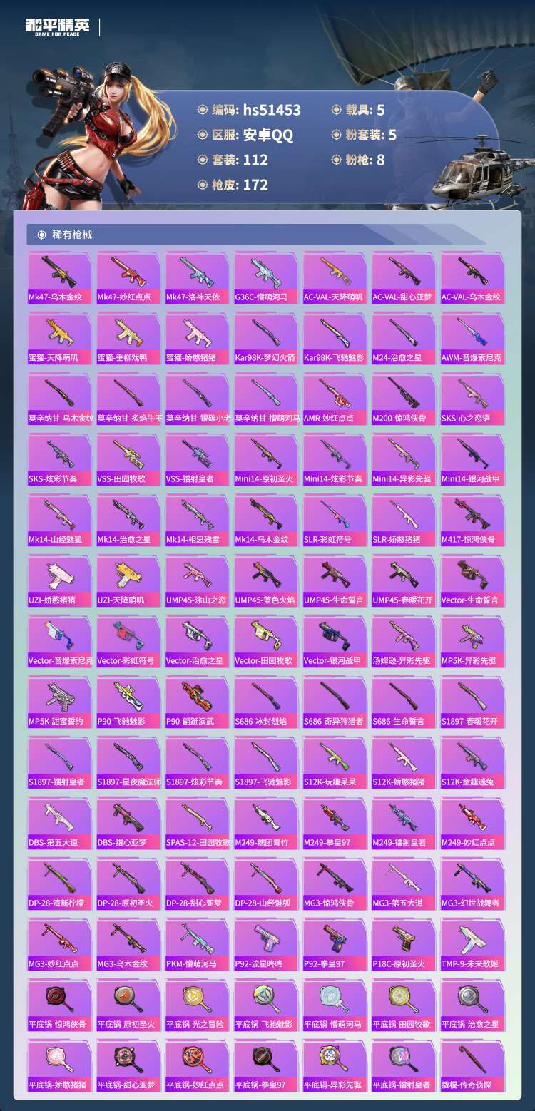 安卓手Q-9王牌印记-5粉装-8特效枪-5载具-112套装-172
