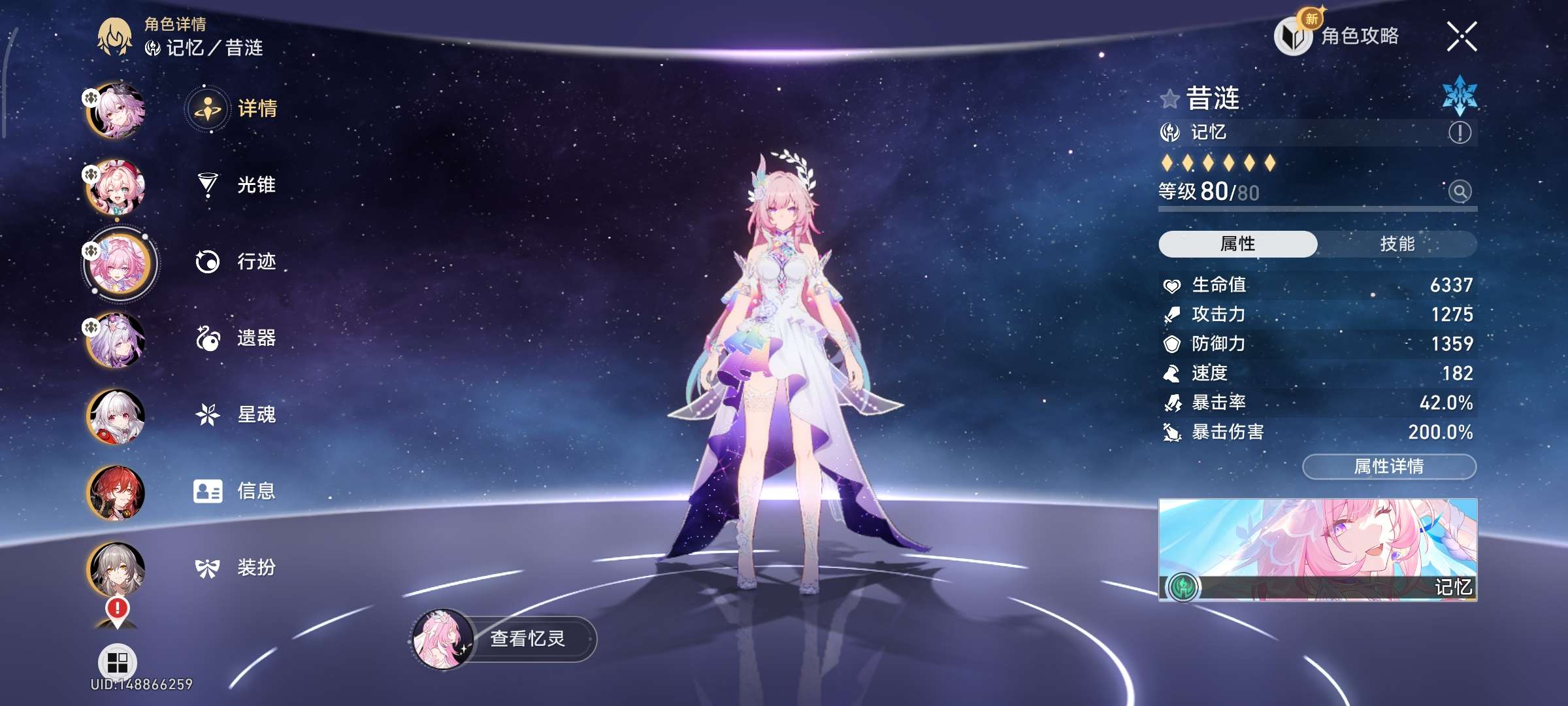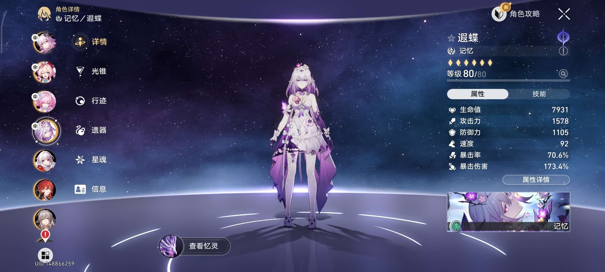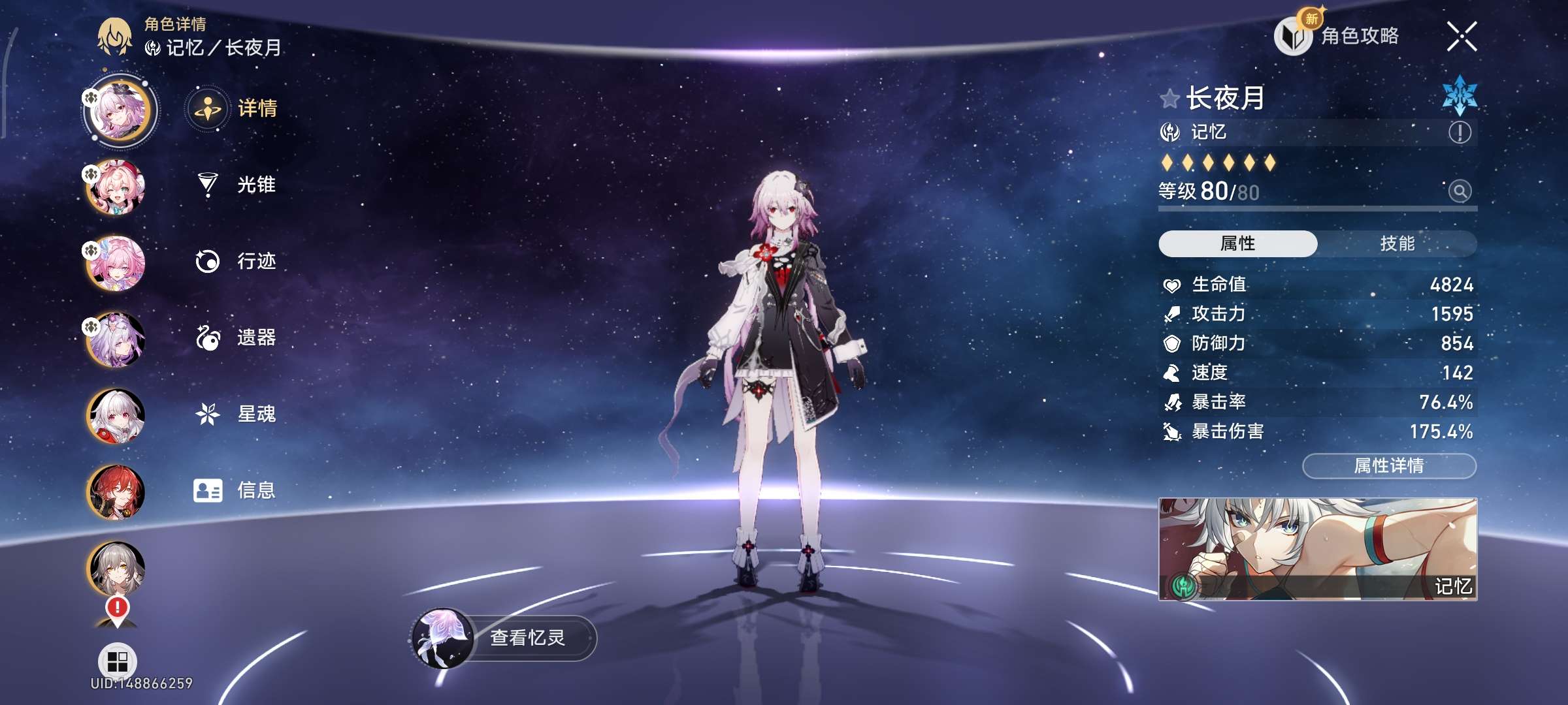 01遐蝶01昔涟00风堇00长夜月00缇宝01黄泉01镜流,主线只做到白厄