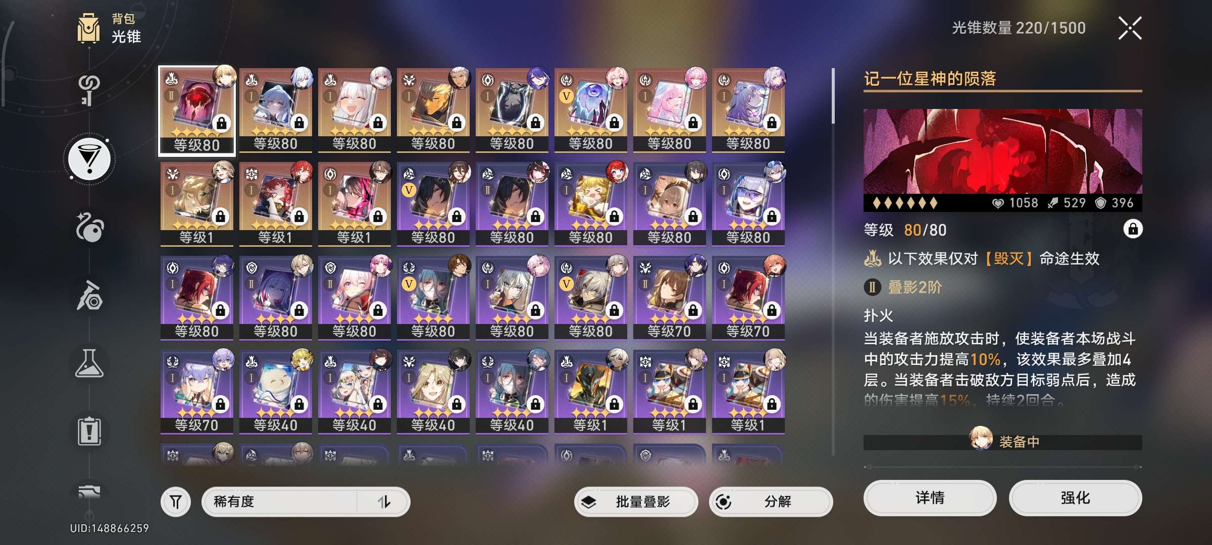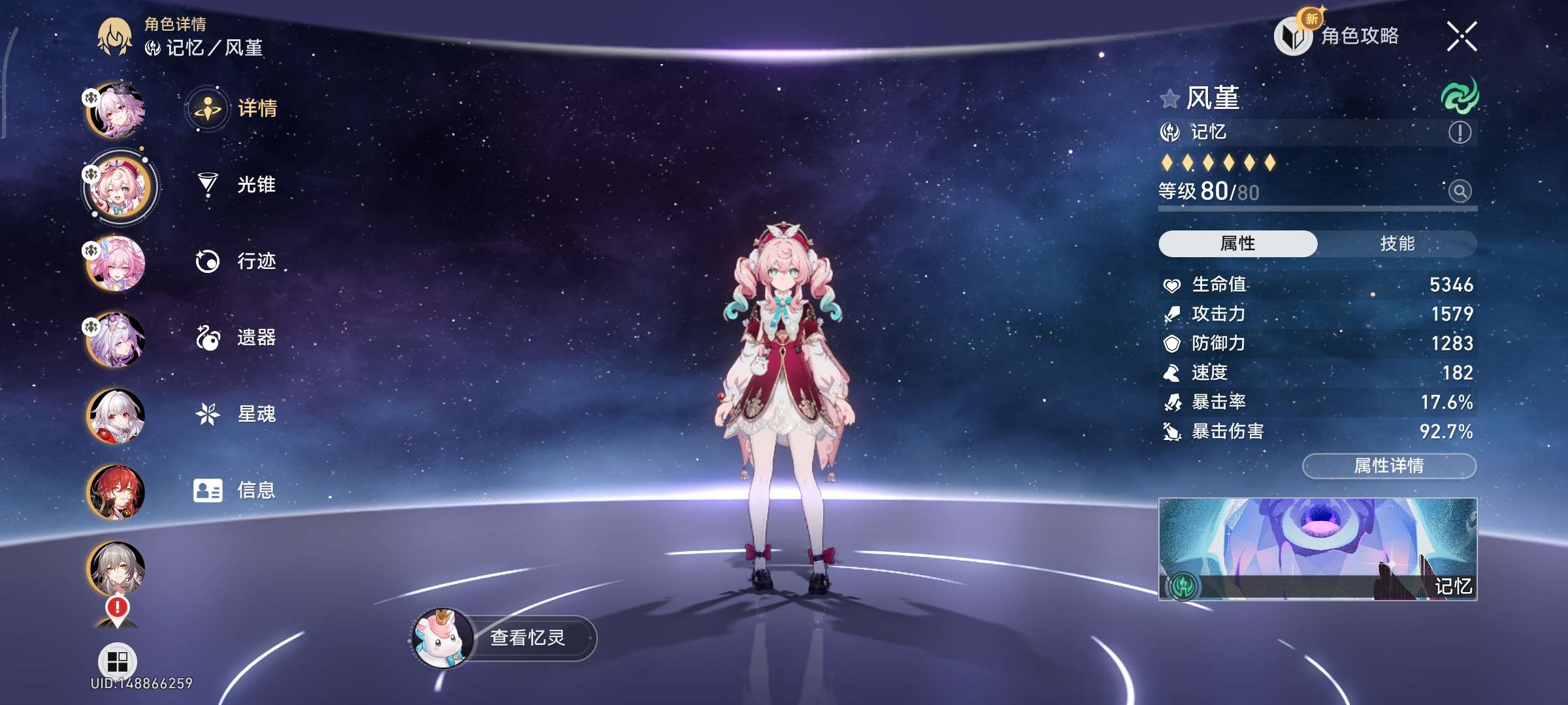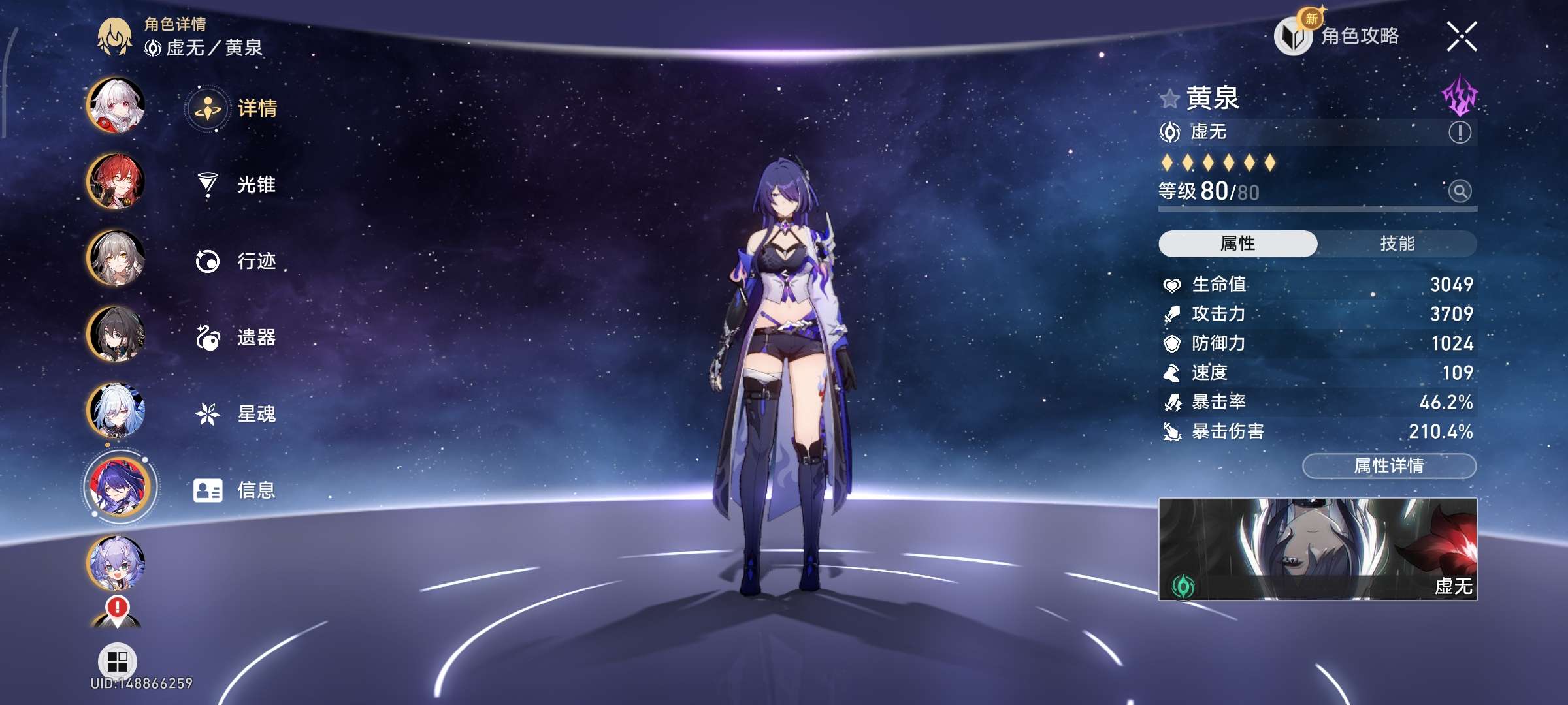 01遐蝶01昔涟00风堇00长夜月00缇宝01黄泉01镜流,主线只做到白厄