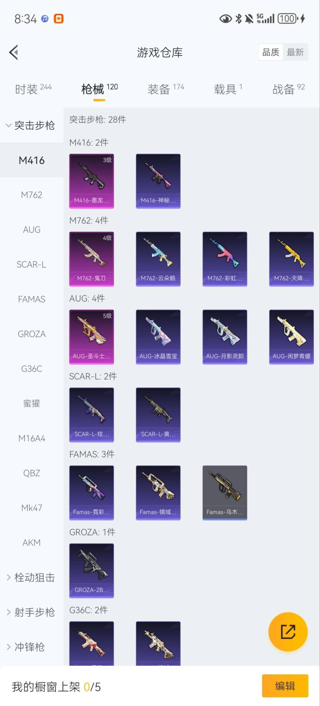 【稀有枪皮】:M762-鬼刀,AUG-圣斗士星矢,M416墨龙九天,UMP45量子极限,