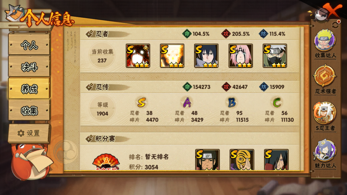 1022w战力白破超38S+5个198直购A+创柱碎片87忍战艾77