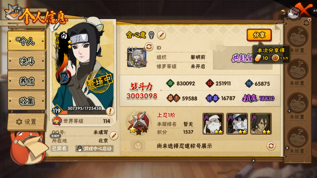 火影忍者【安卓QQ】300w战力传自3s+198直购漂泊再不斩共15a战力300