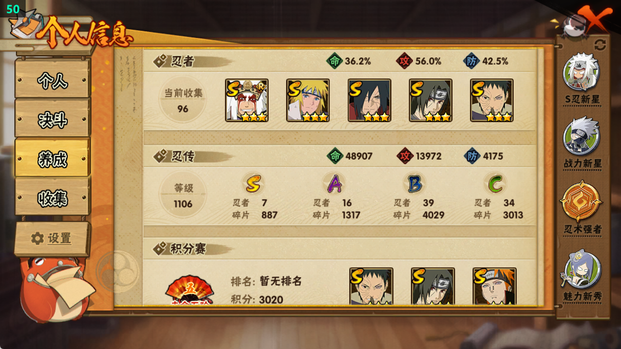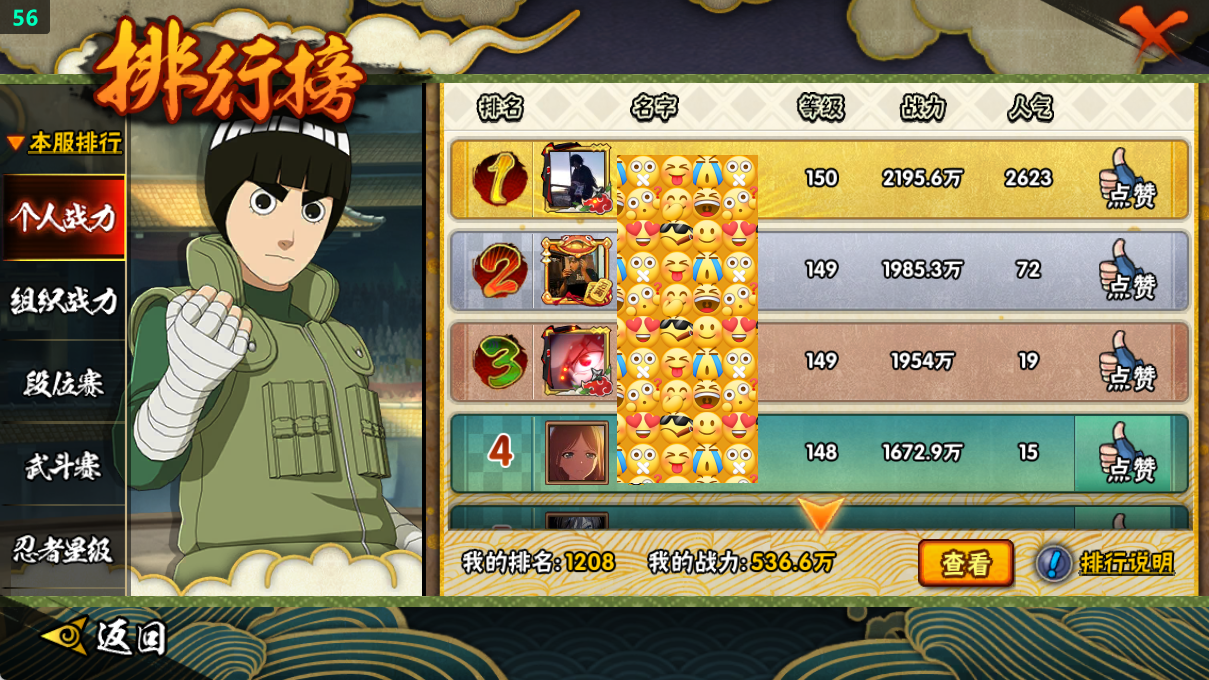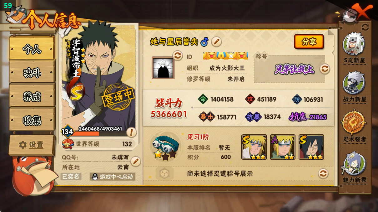 火影忍者【安卓QQ】536w破面+解斑7s+清水+骨架16A战力536忍者总数9