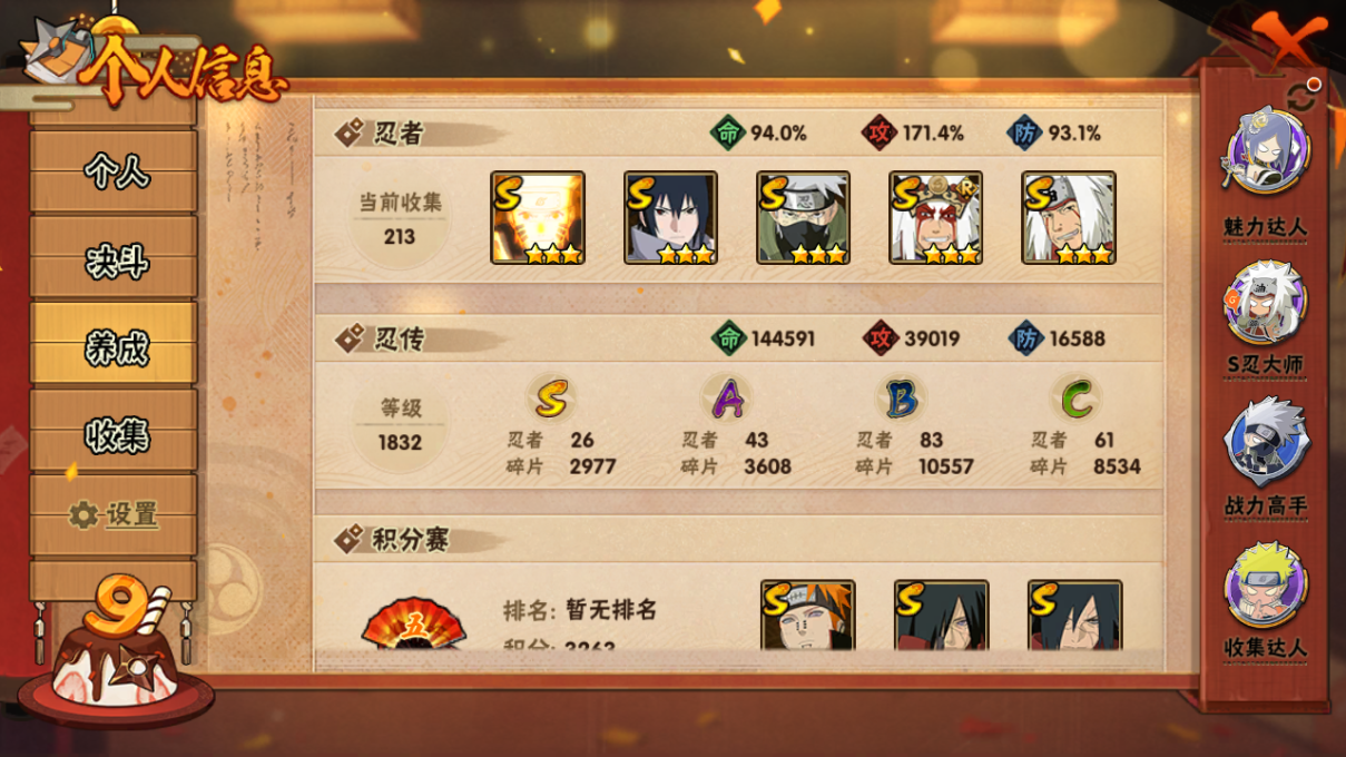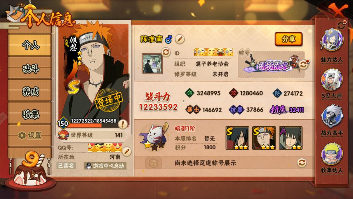 火影忍者【安卓QQ】1223w战力白破死水26S+1个298点卷A5个198直购