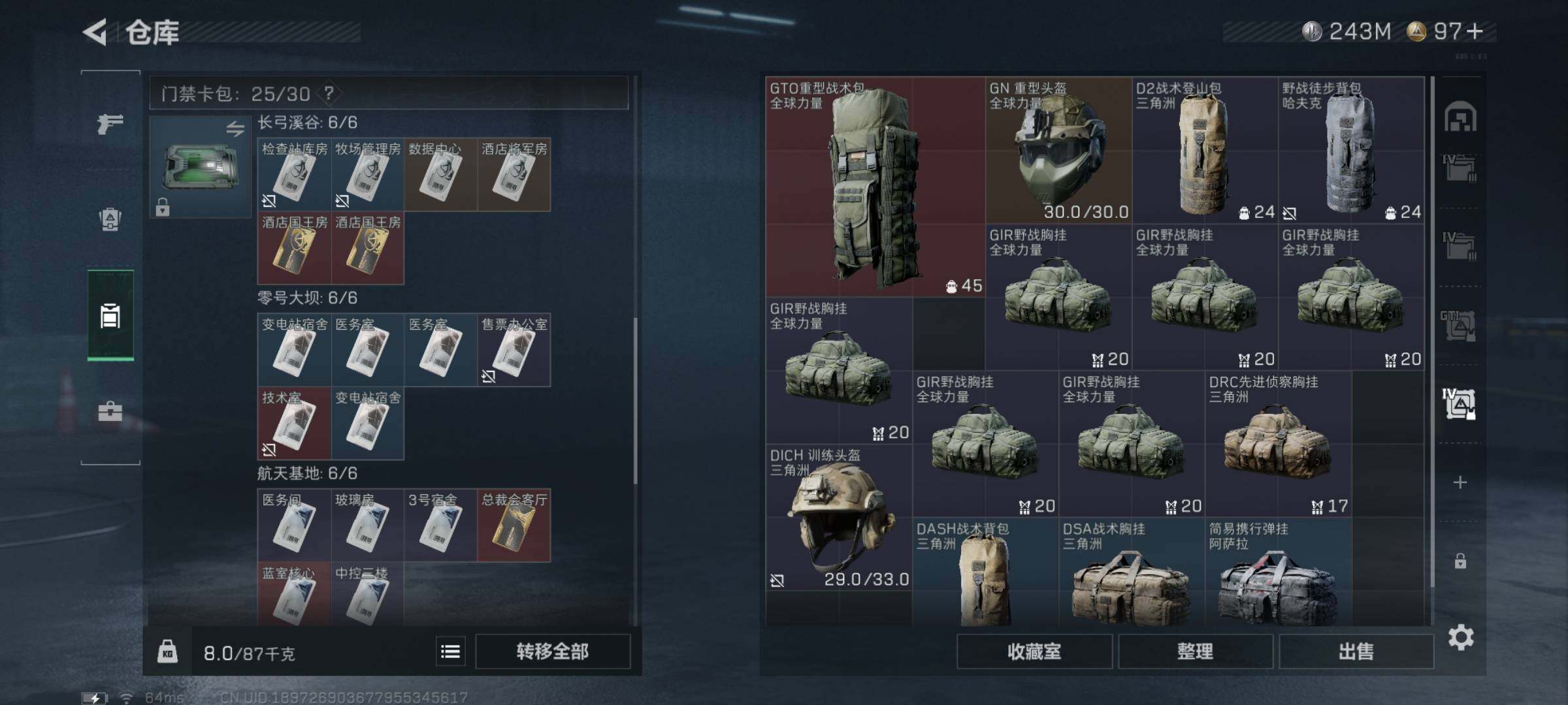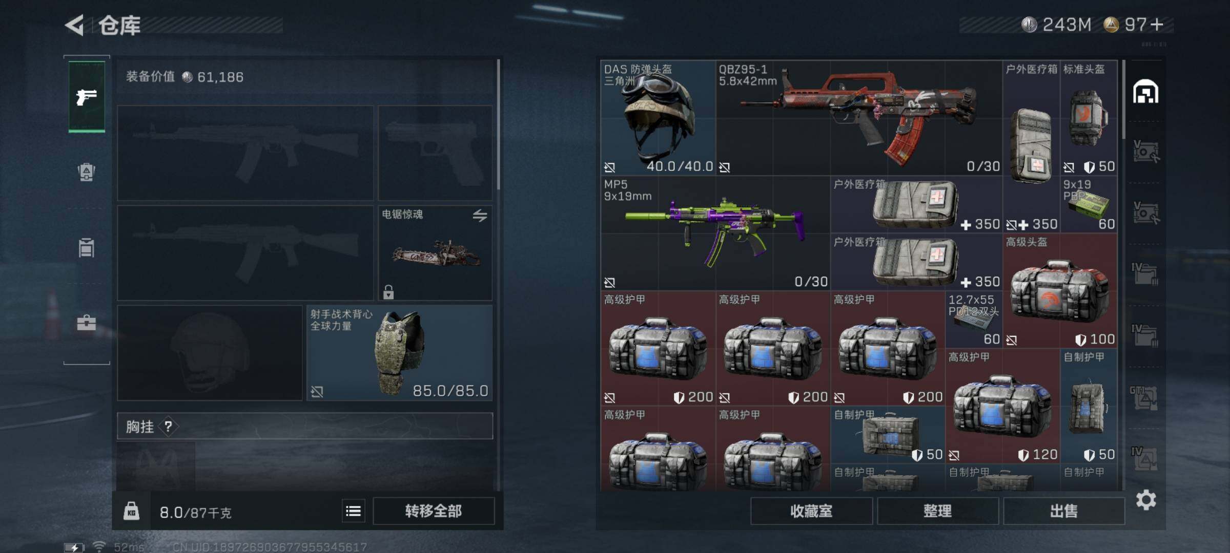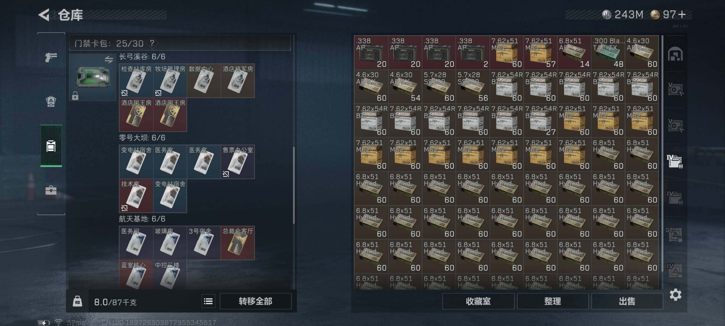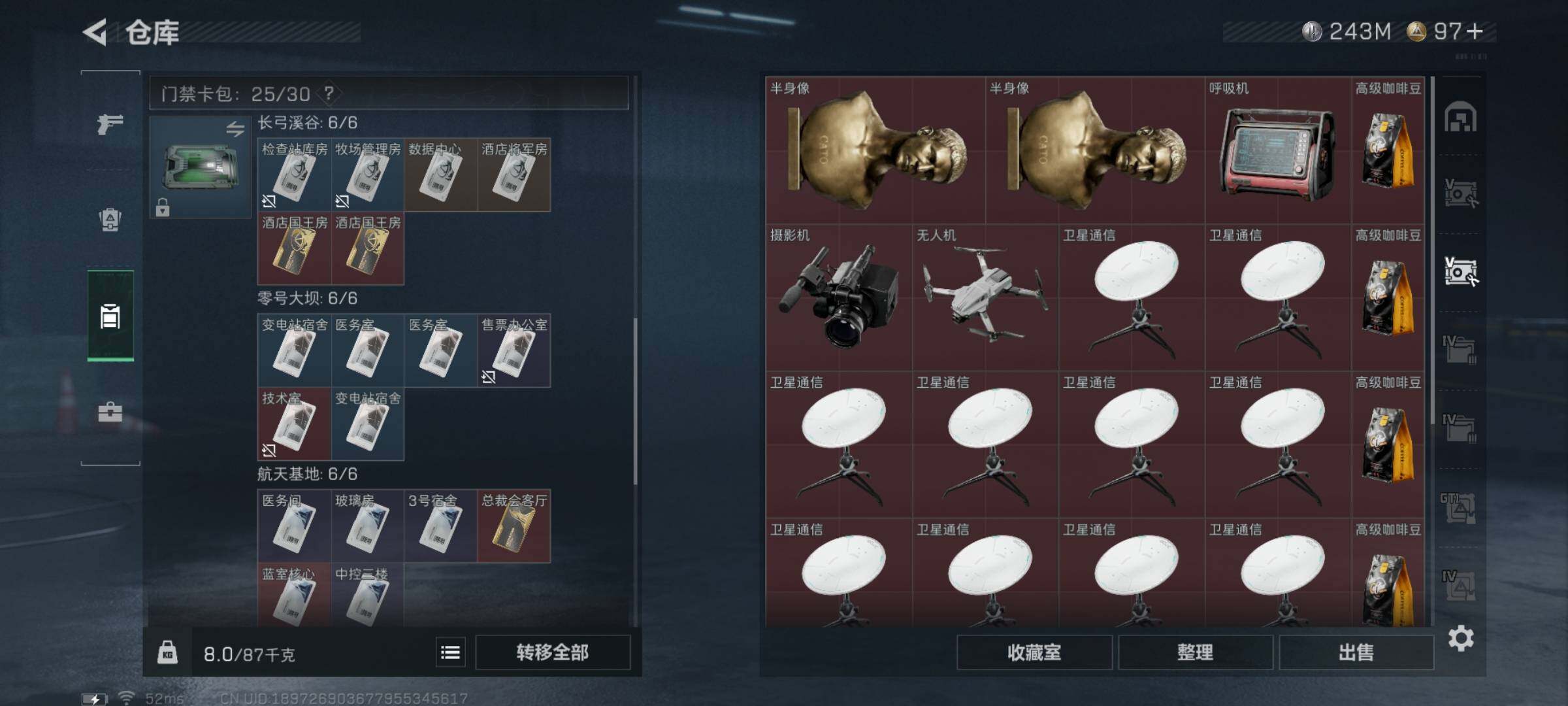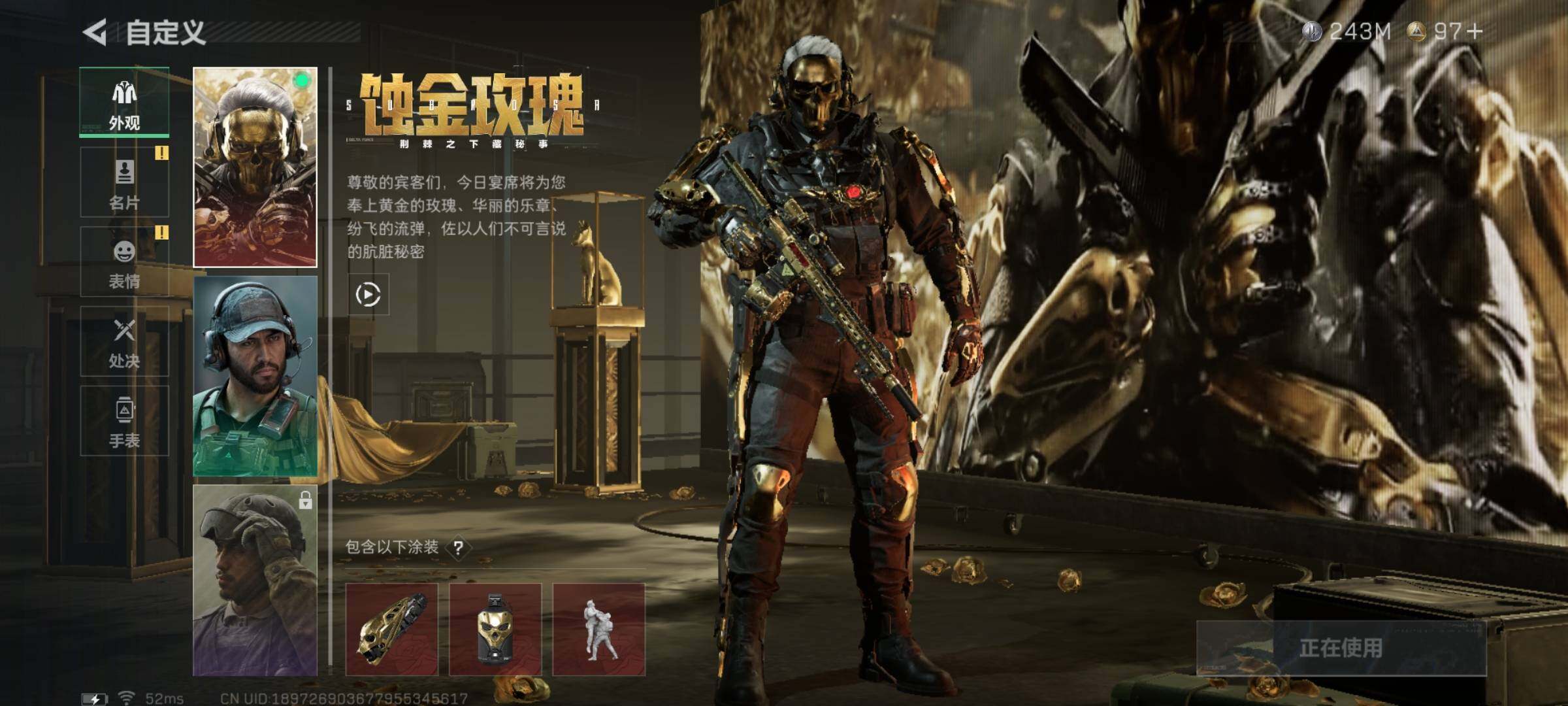 【高额资产账号300M,猛攻必备,蚀金玫瑰-刀皮-电锯惊魂】【无二次】YXz1501-特勤处:仓库8级/训练中心7级/靶场7级-总资产502m-哈夫币243m-烽火等级:60级