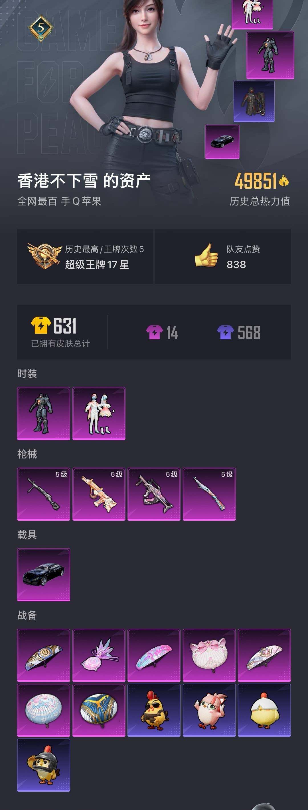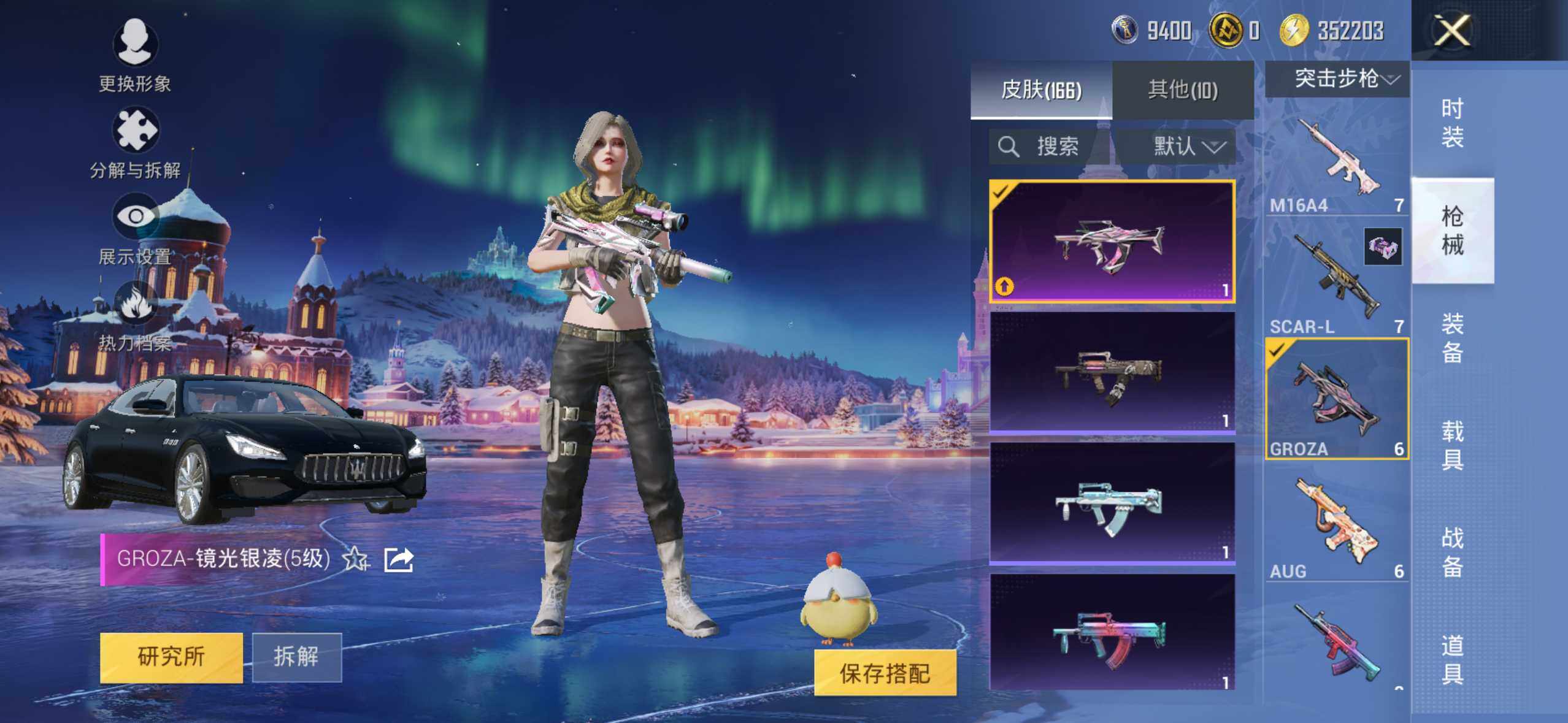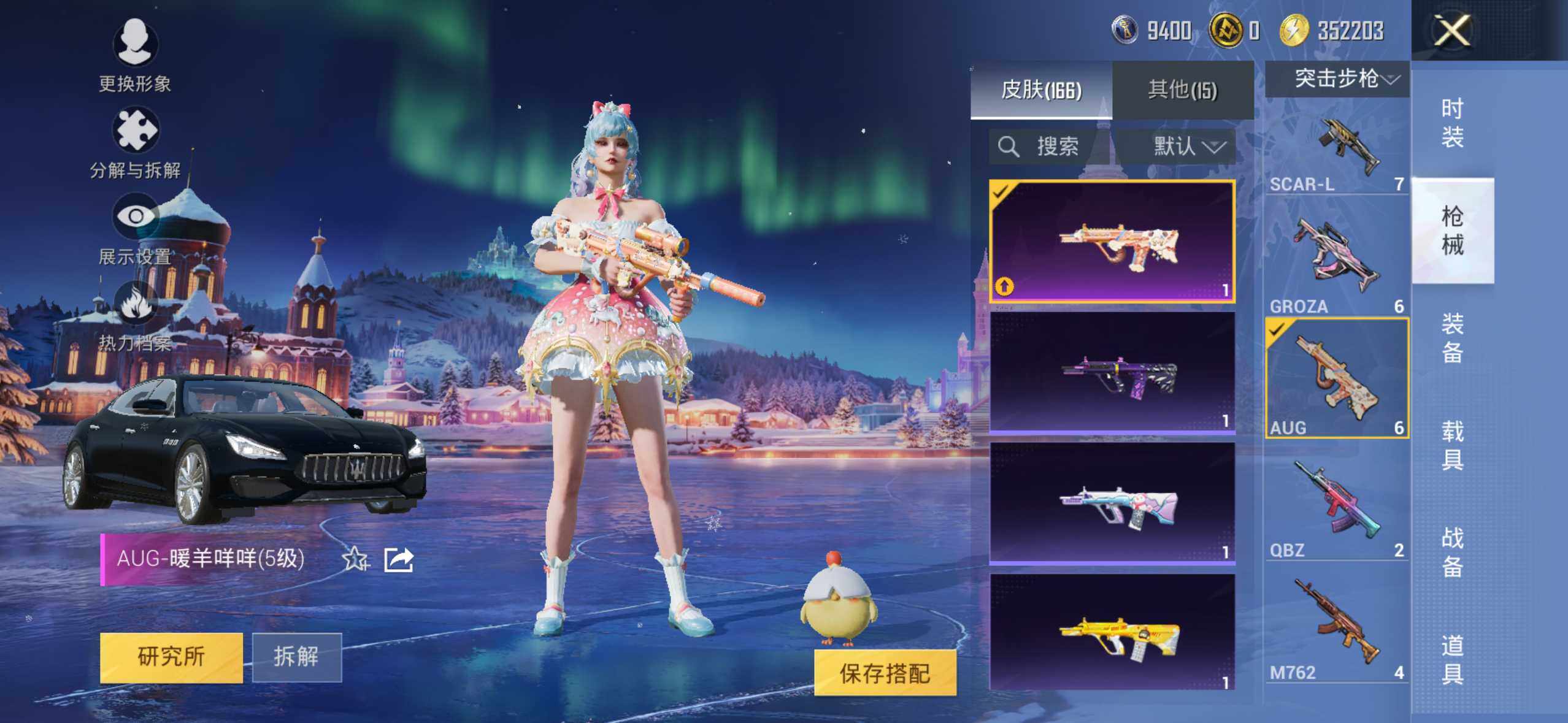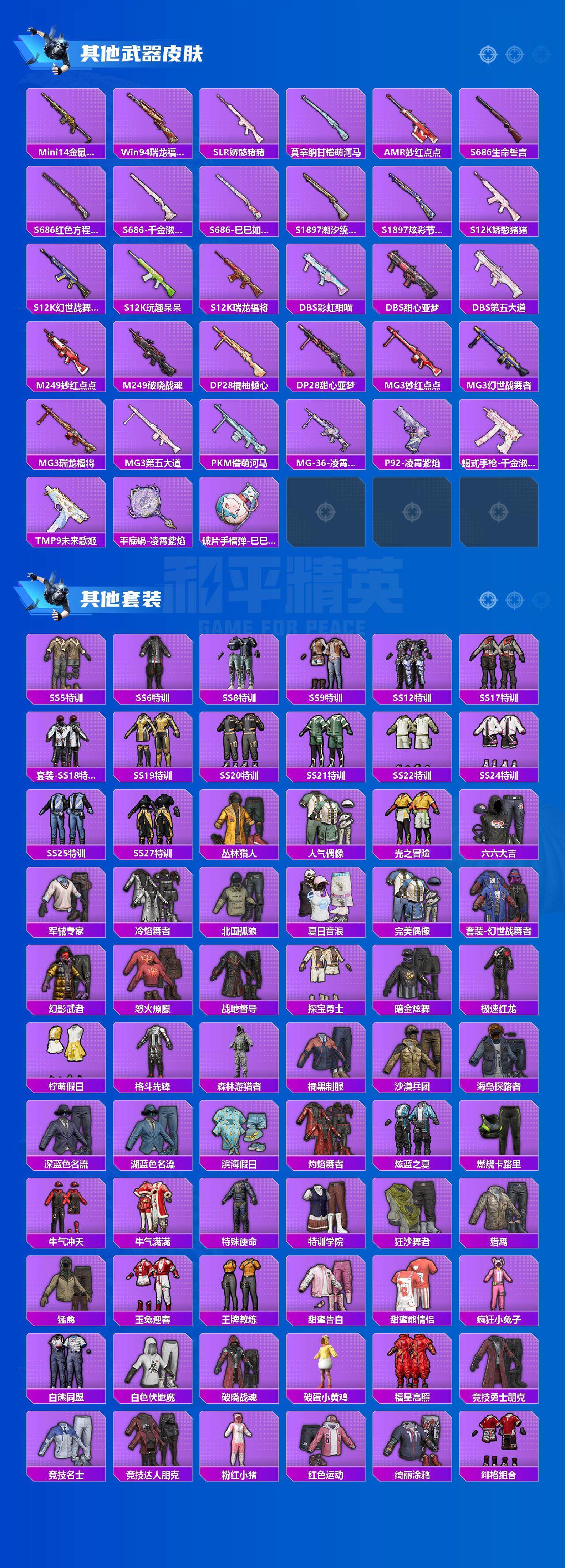 【粉色枪皮等级】:GROZA-镜光银凌(五级),AUG-暖羊咩咩(五级),Kar98K-巳巳如意(五级),DP-28-豹影