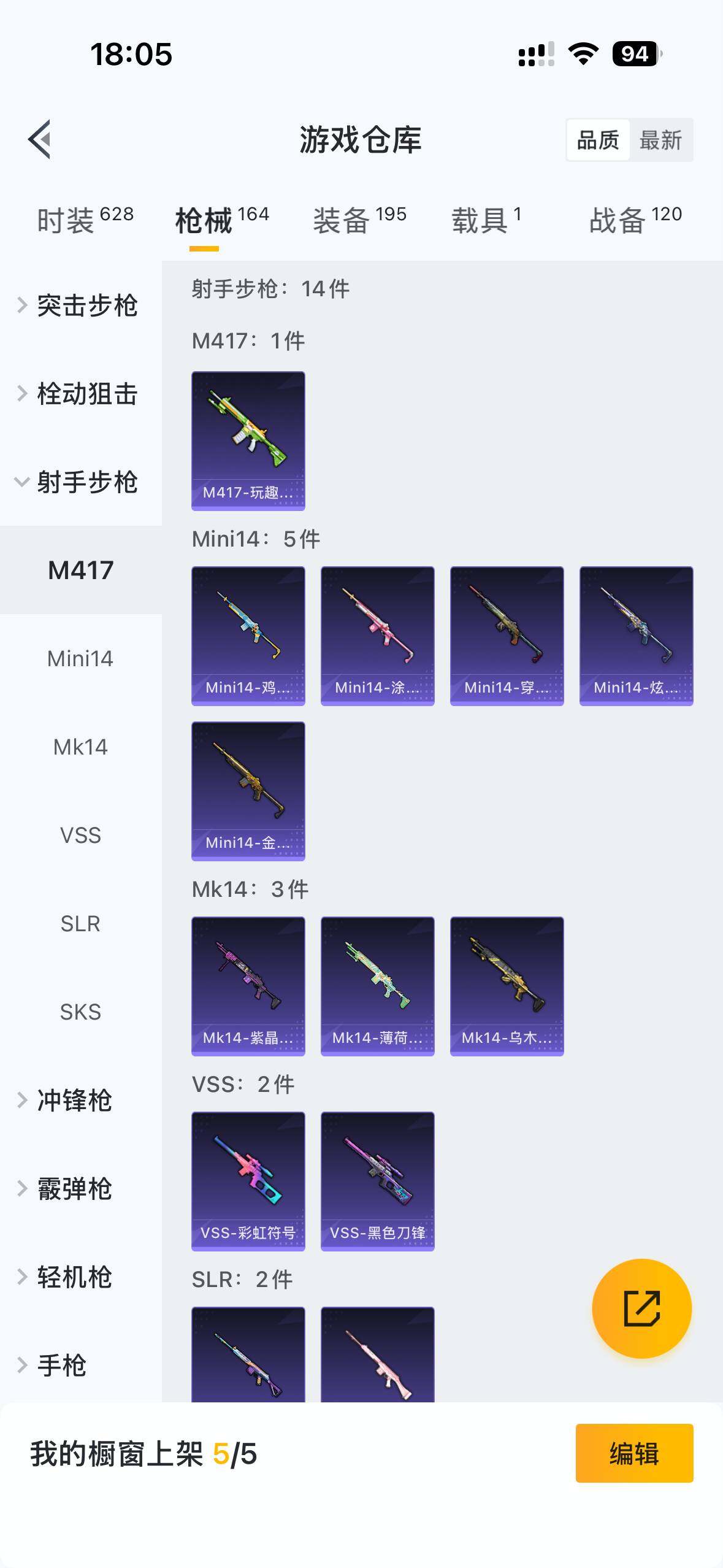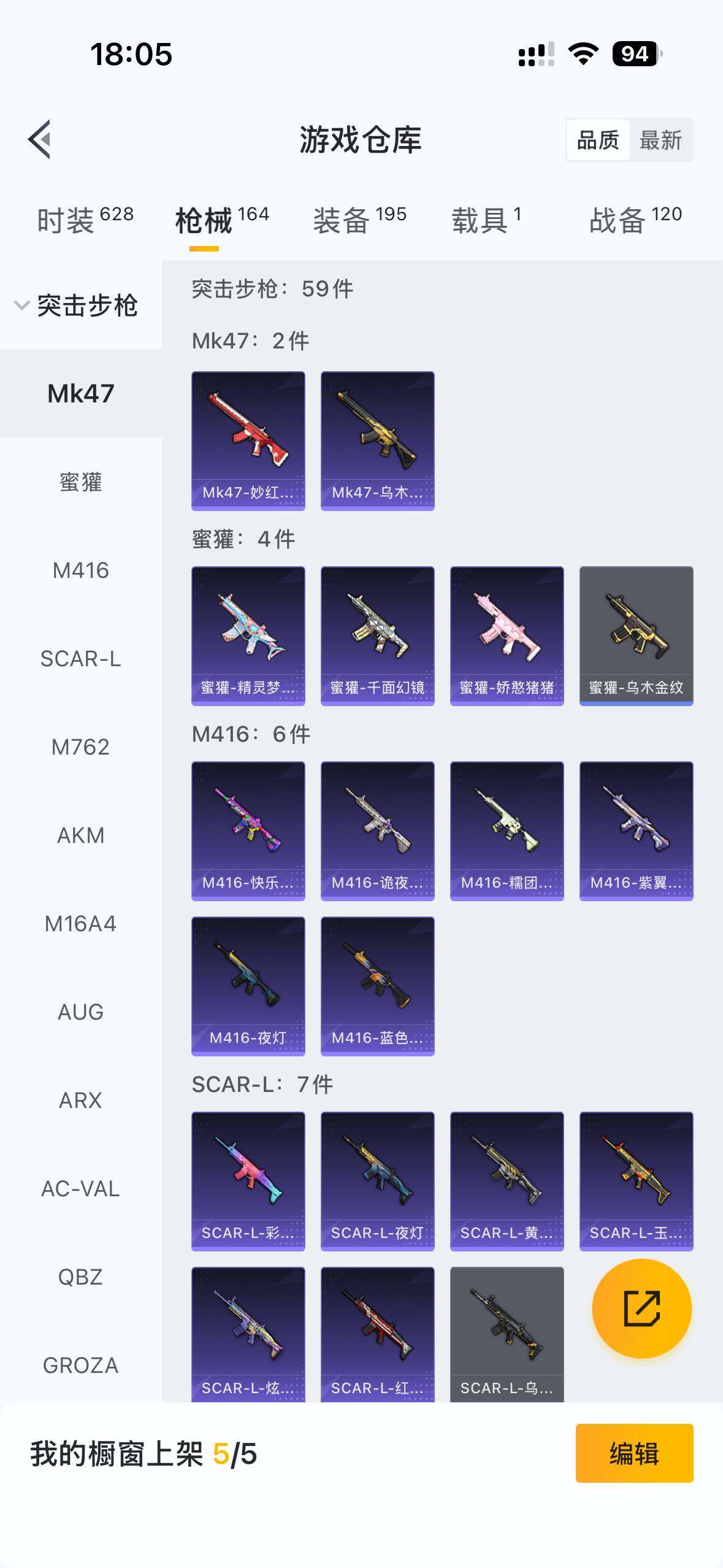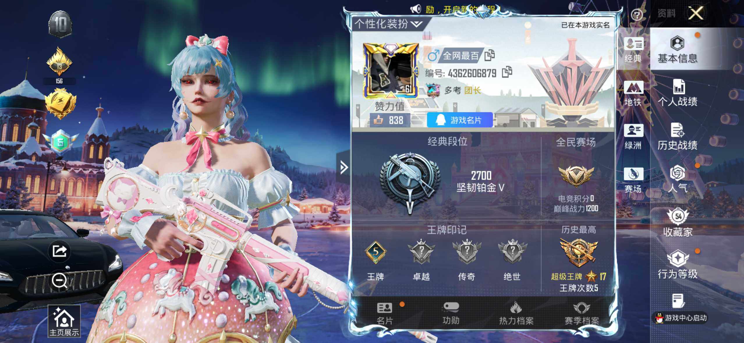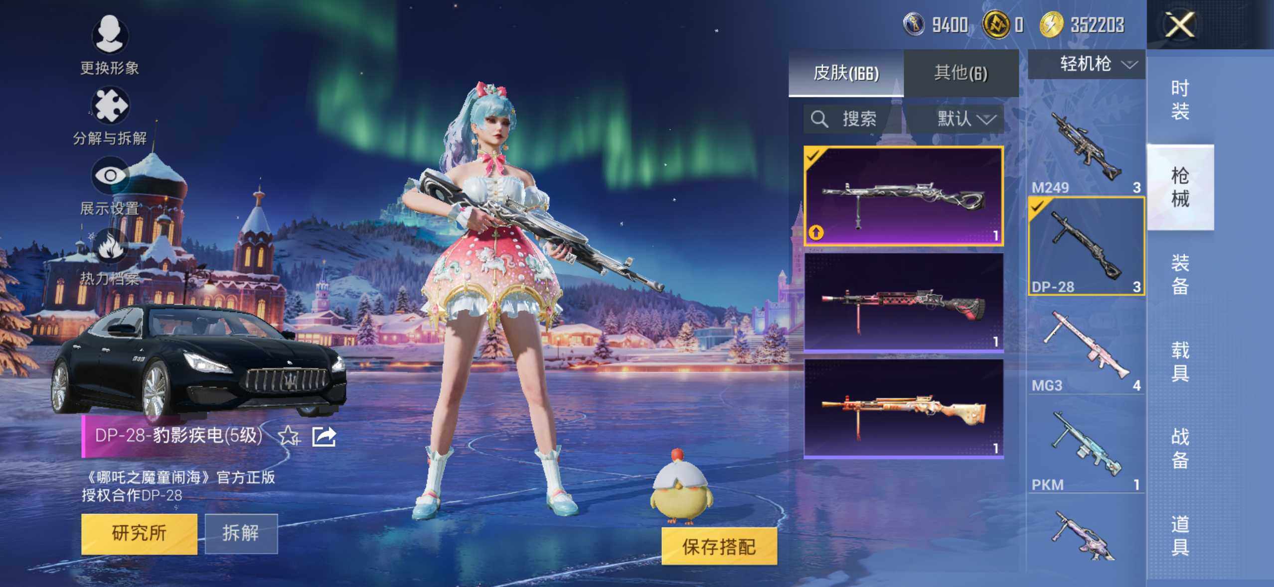 【粉色枪皮等级】:GROZA-镜光银凌(五级),AUG-暖羊咩咩(五级),Kar98K-巳巳如意(五级),DP-28-豹影