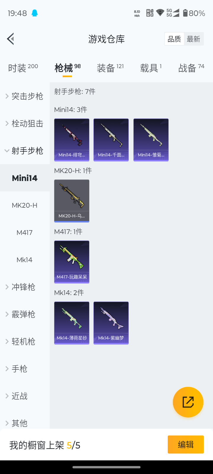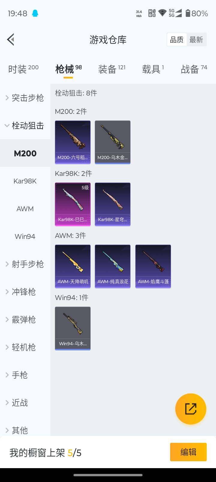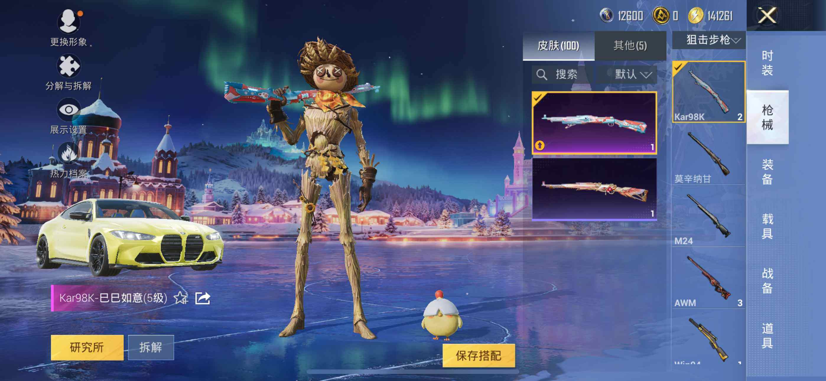 【粉色枪皮等级】:M416-电玩时刻(五级),Kar98K-巳巳如意(五级),DP-28-豹影疾电(五级),爆炸猎弓-拳皇·狂花道(七级),平底锅-喜羊羊与灰太