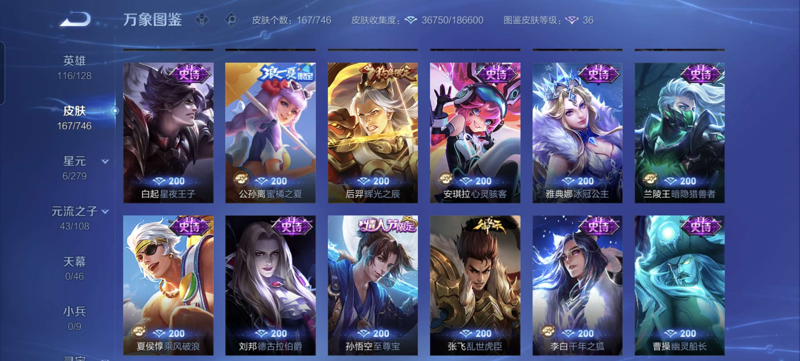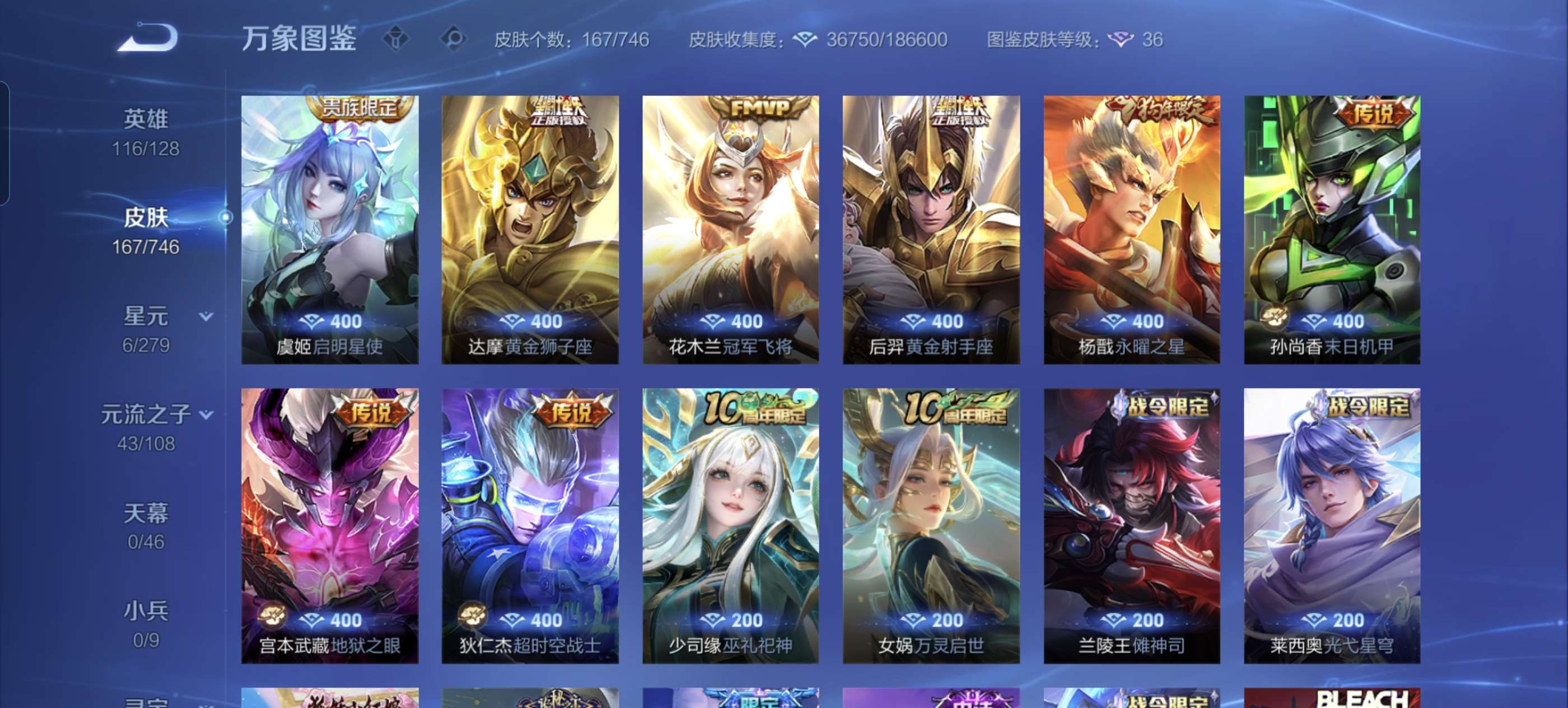 伽罗典藏 五无双 俩珍品 凯神罚 诸葛亮天机 甄姬冰雪 小乔时之魔女 耀的器灵 皮肤 干将千山赴会