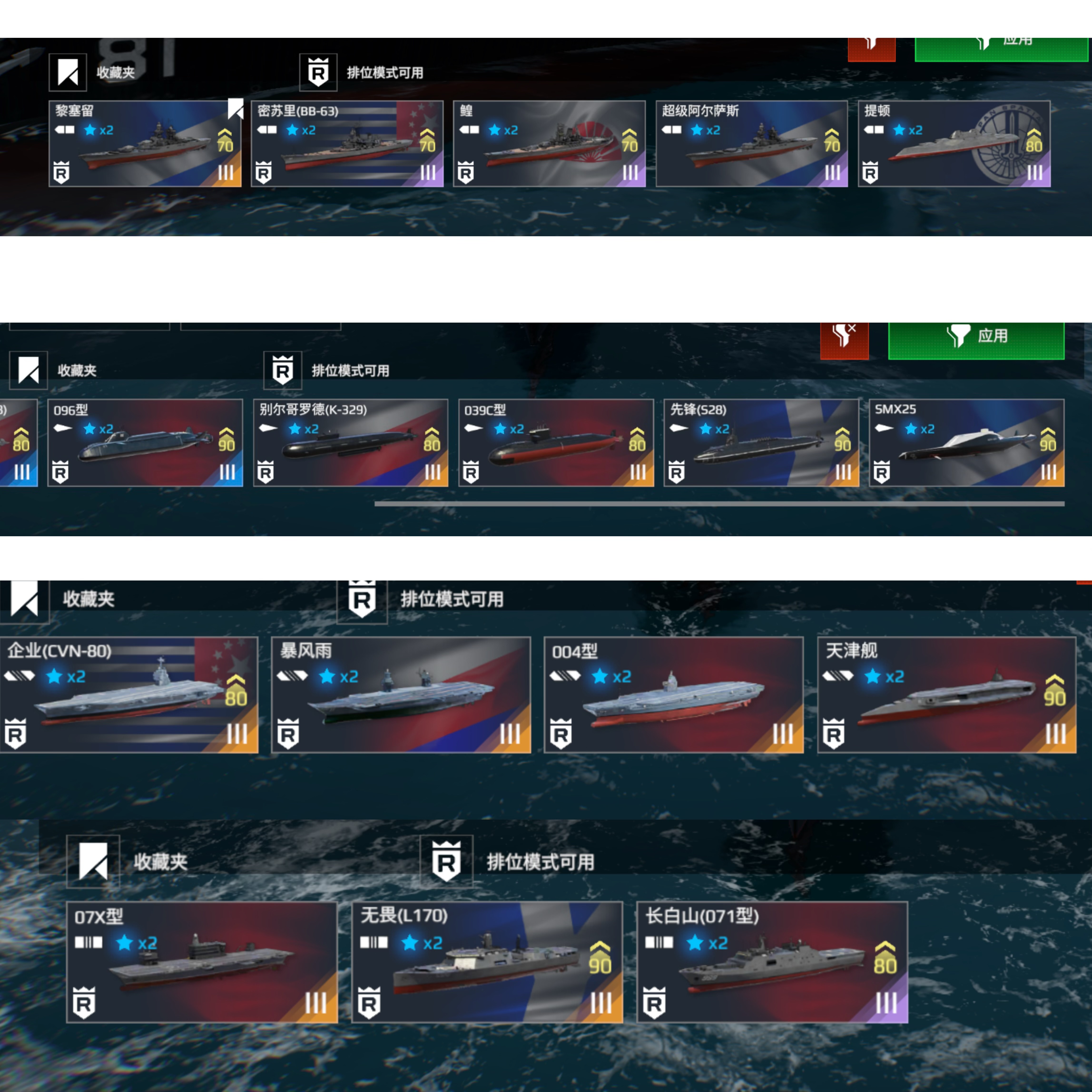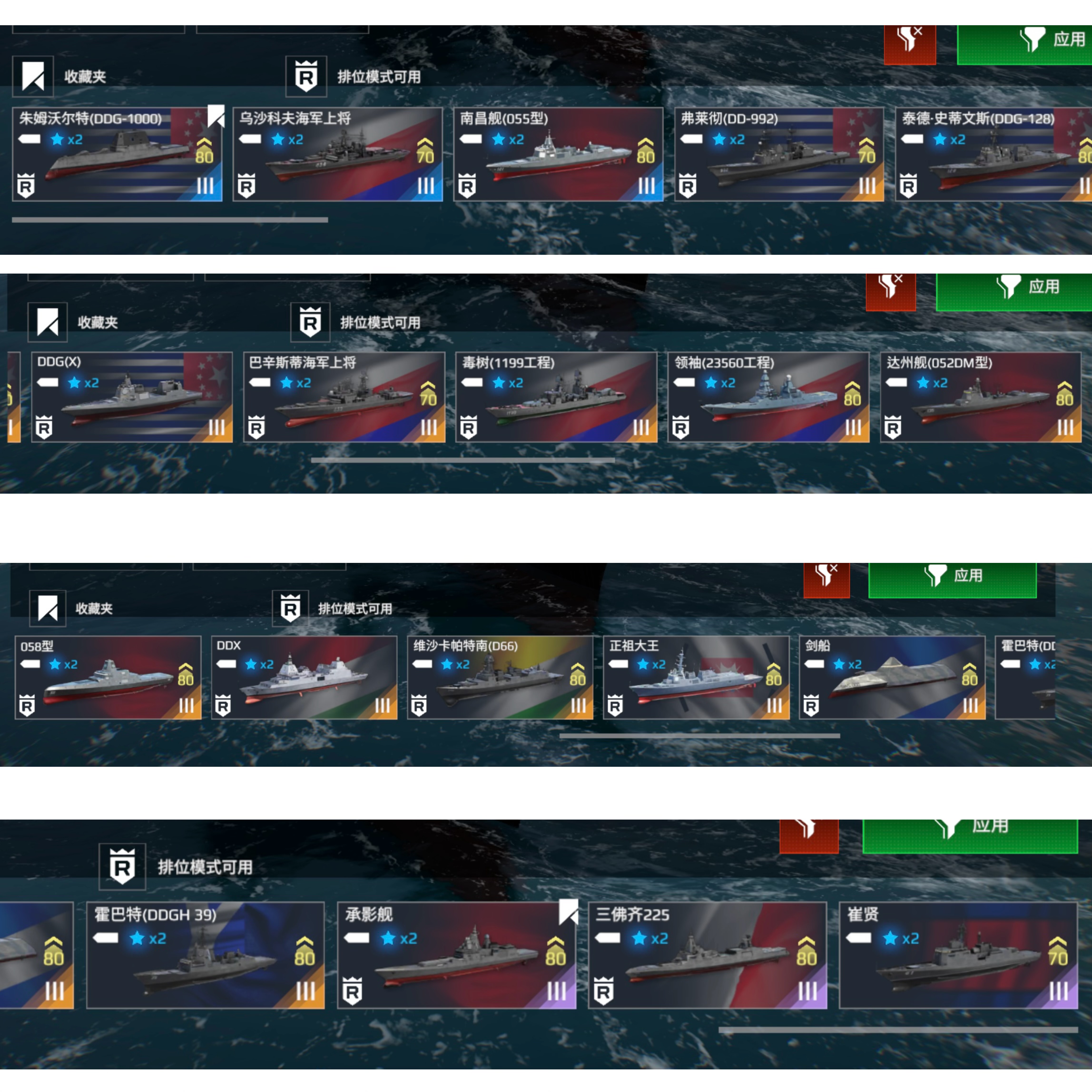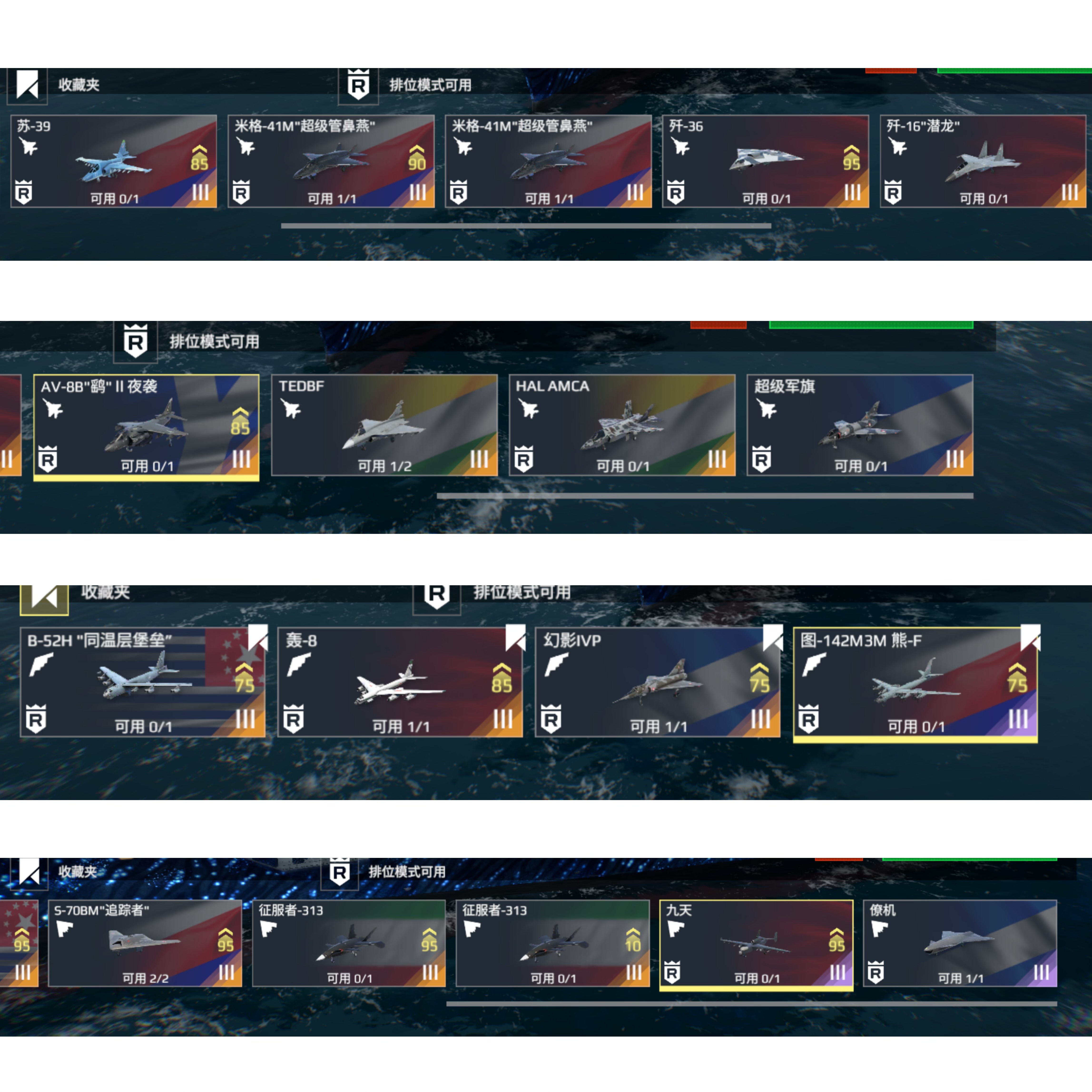 值钱的都在图片中了 黎塞留 超级阿尔萨斯 戴高乐 弗莱彻 格劳上将 苏39 灰鲭鲨9个 双虎火 2法核2核海飞 等等就不一一说明了 图片里很详细 终身包赔已开通