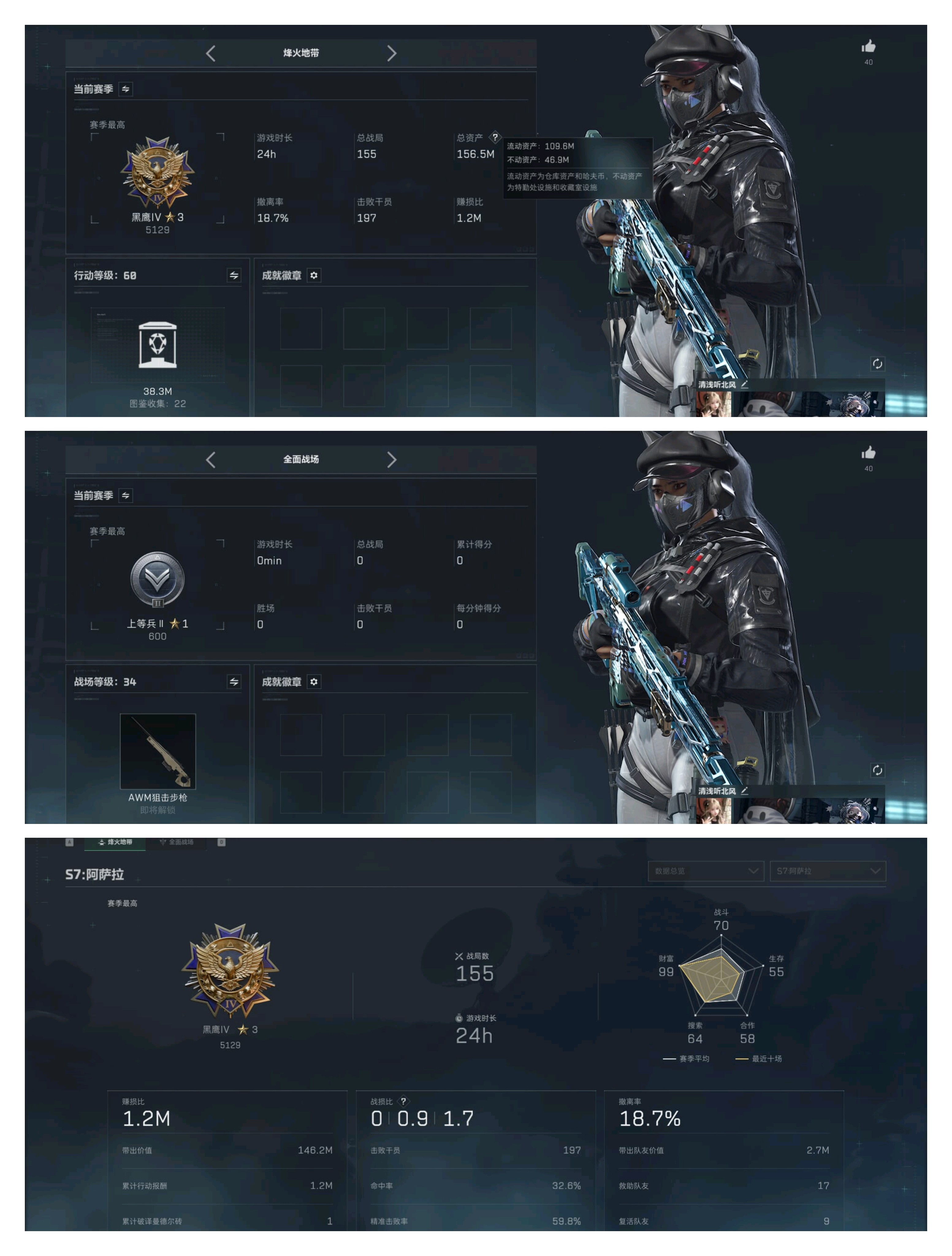 D10754/QQ区/可二次/钱包暂无法注销/总资产:156.5M,哈夫币:260W,武器皮肤227