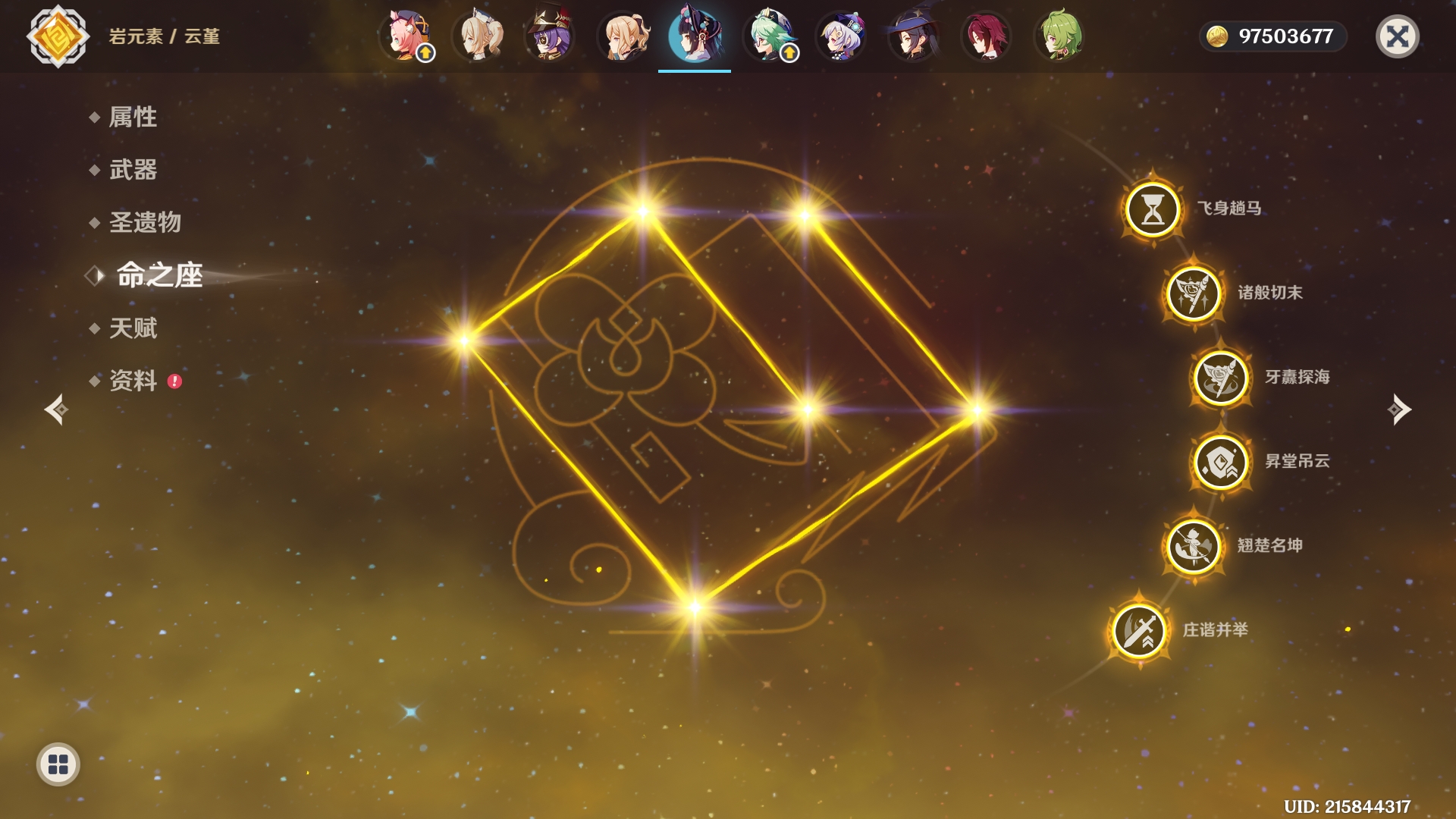 58级/25黄/男主/15个五星角色/5个五星武器/