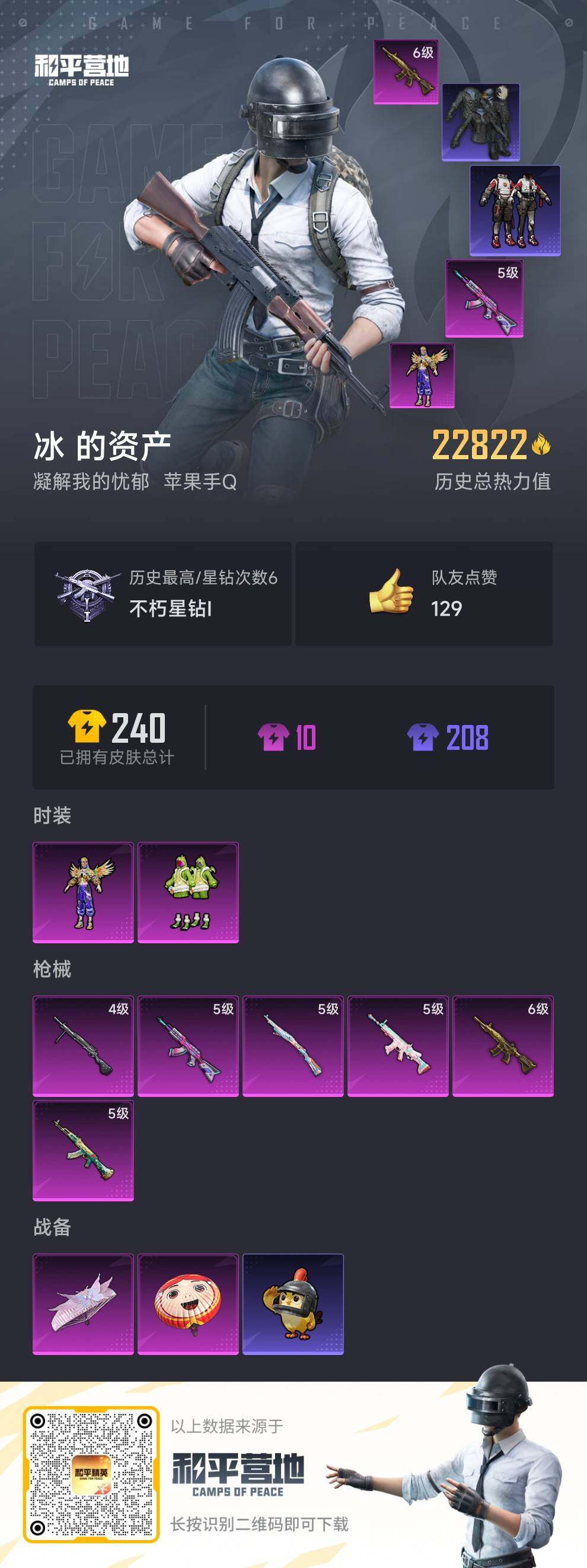 【AZH1633】苹果 手Q-2粉装-6特效枪-0载具-0粉色飞行器-22822热力值-2王牌印记-46套装-73枪皮
