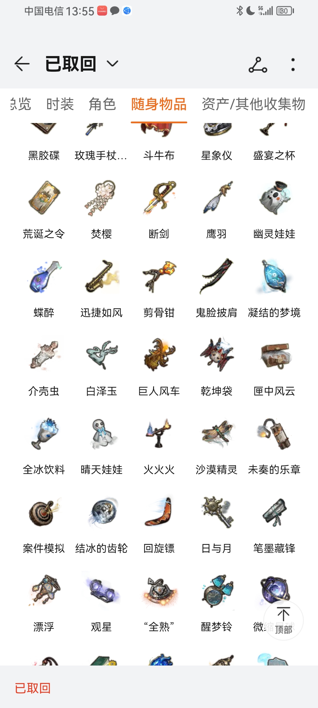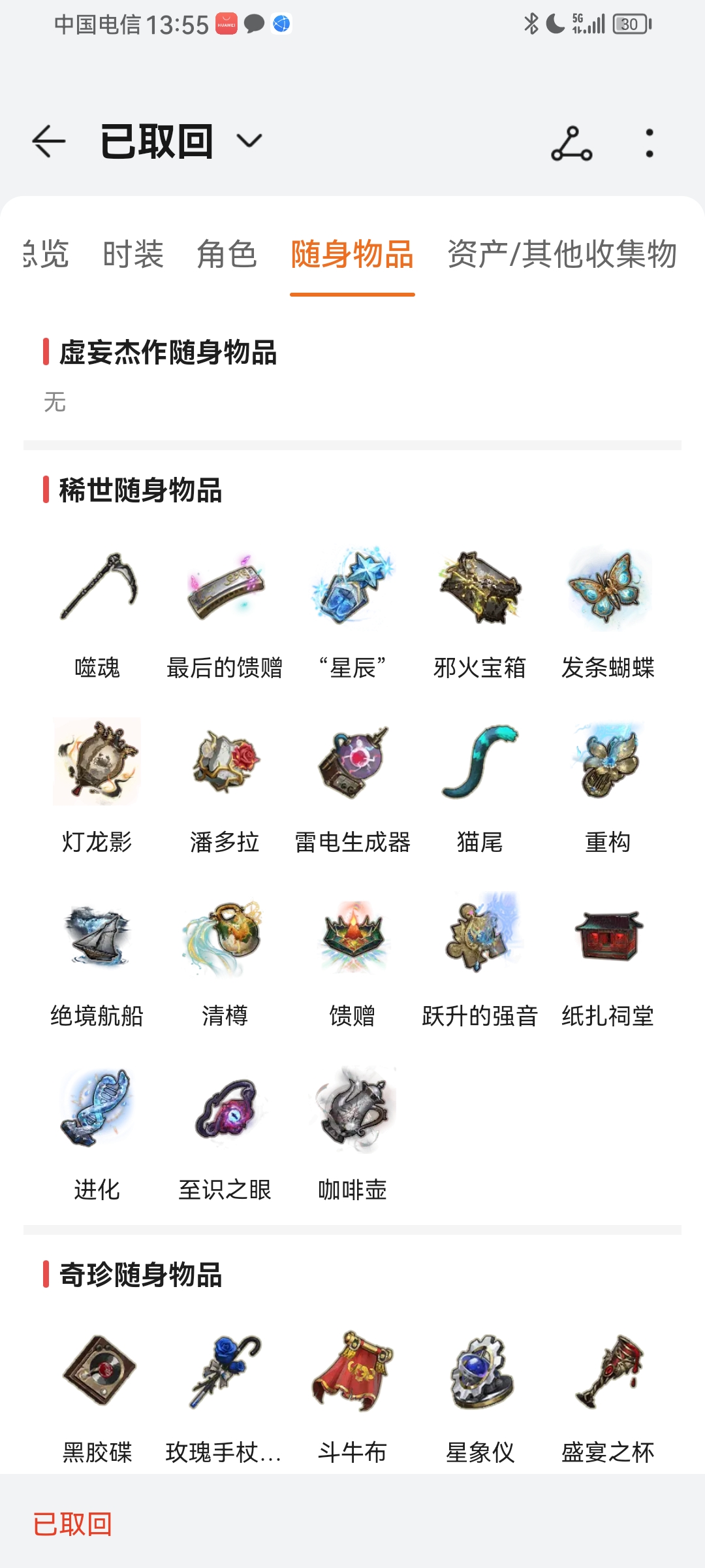 随身物品数量: