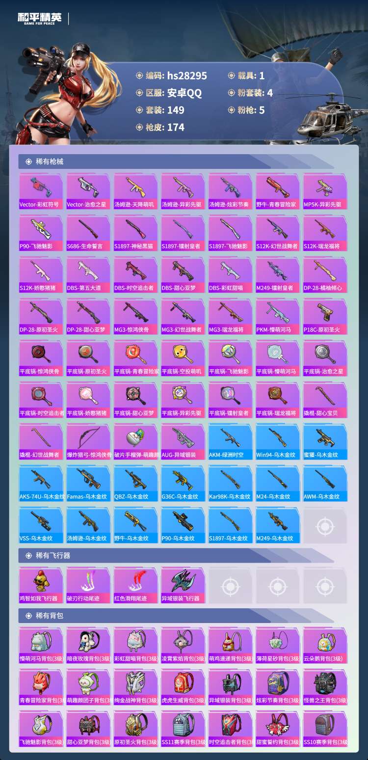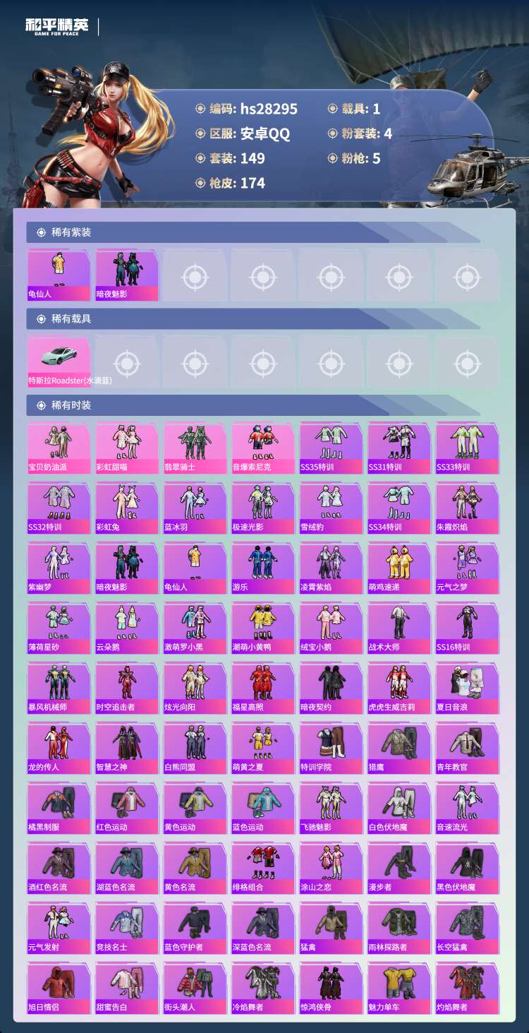 安卓手Q-3王牌印记-4粉装-5特效枪-1载具-149套装-174
