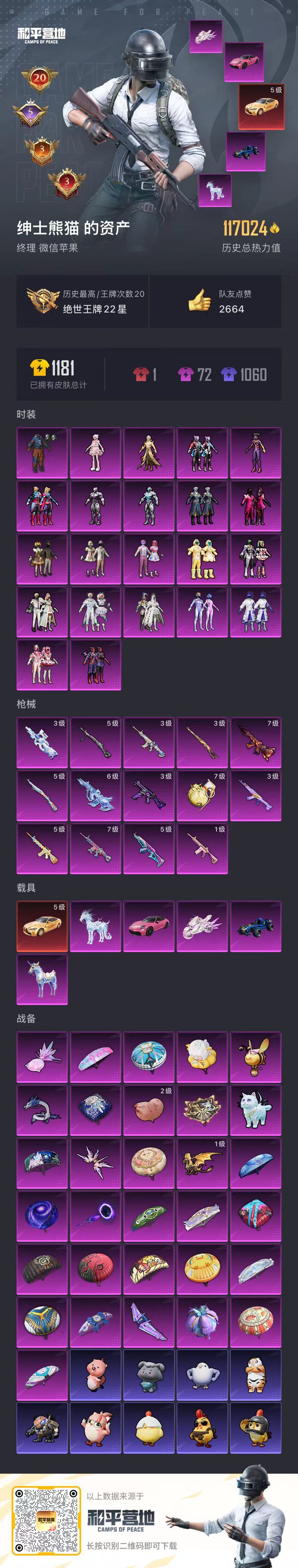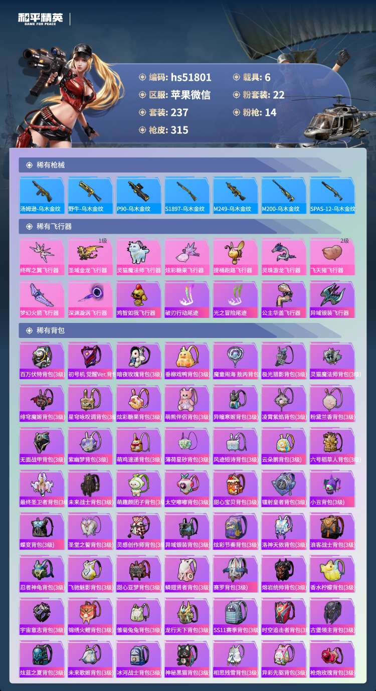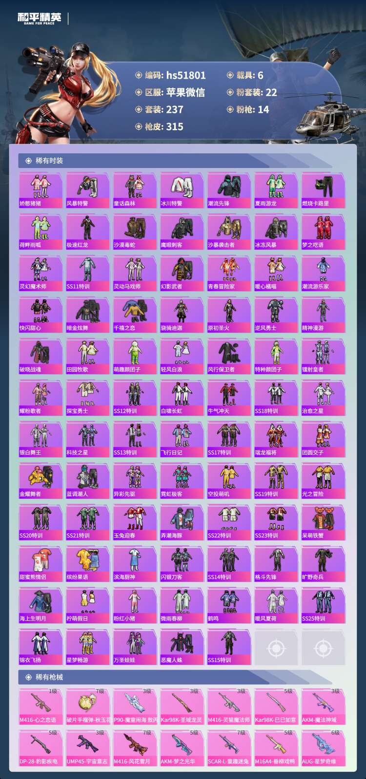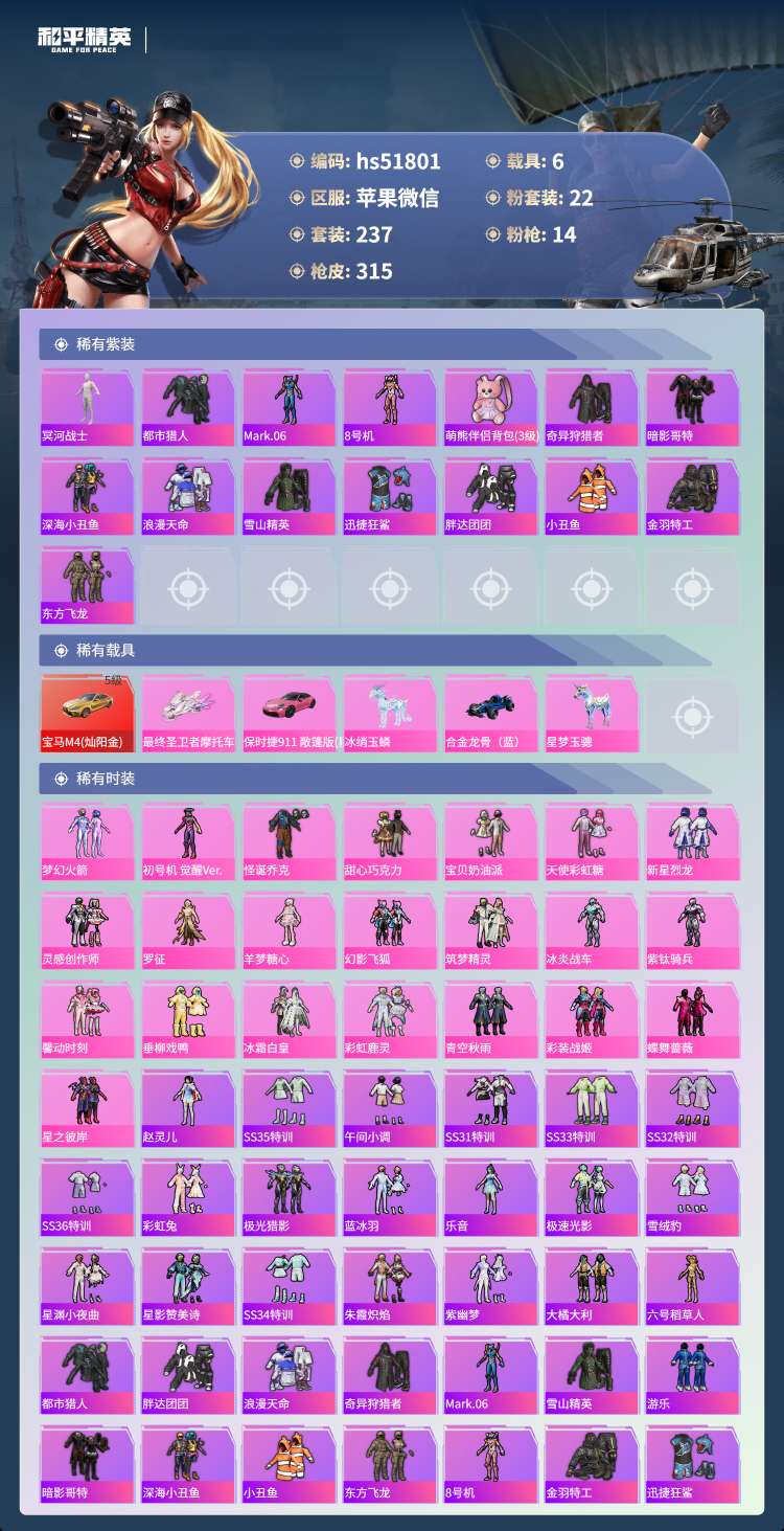 苹果v-20王牌印记-22粉装-14特效枪-6载具-237套装