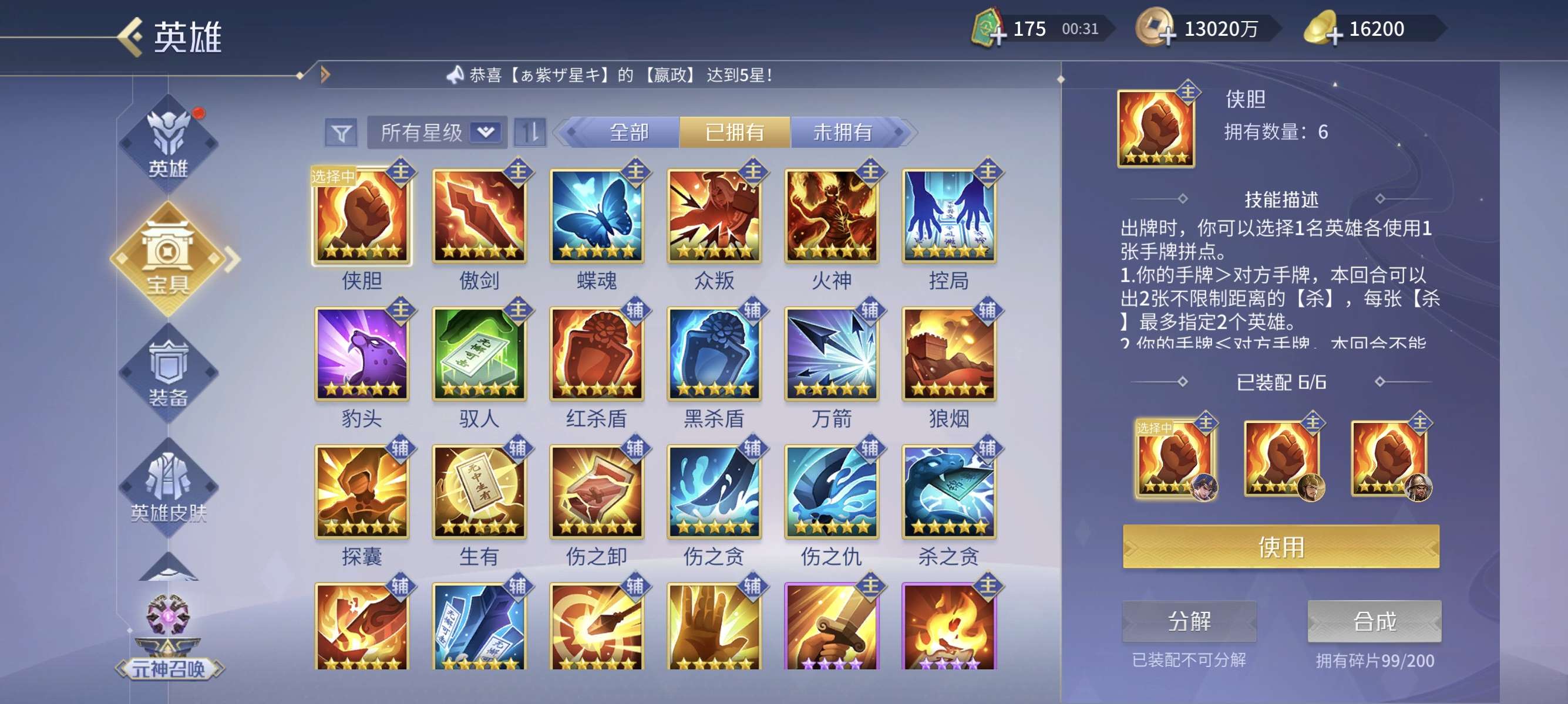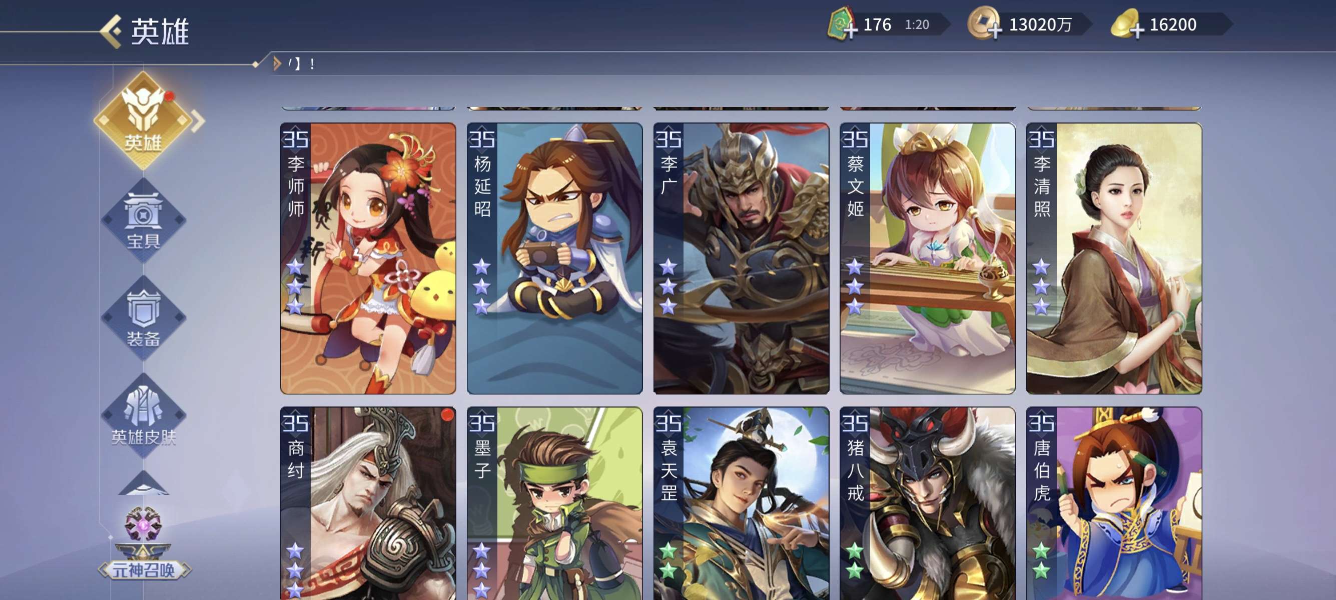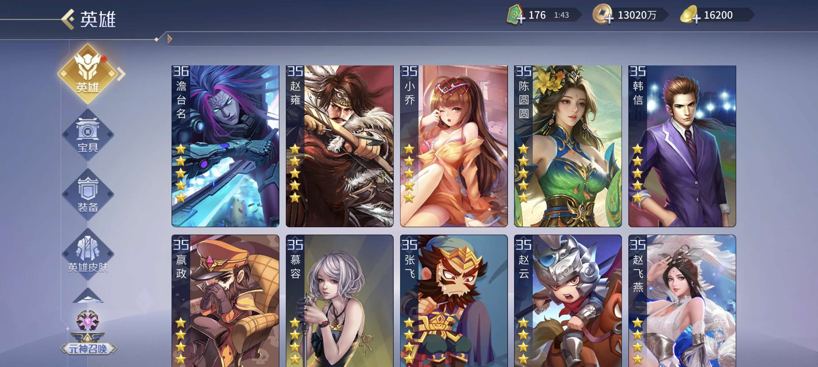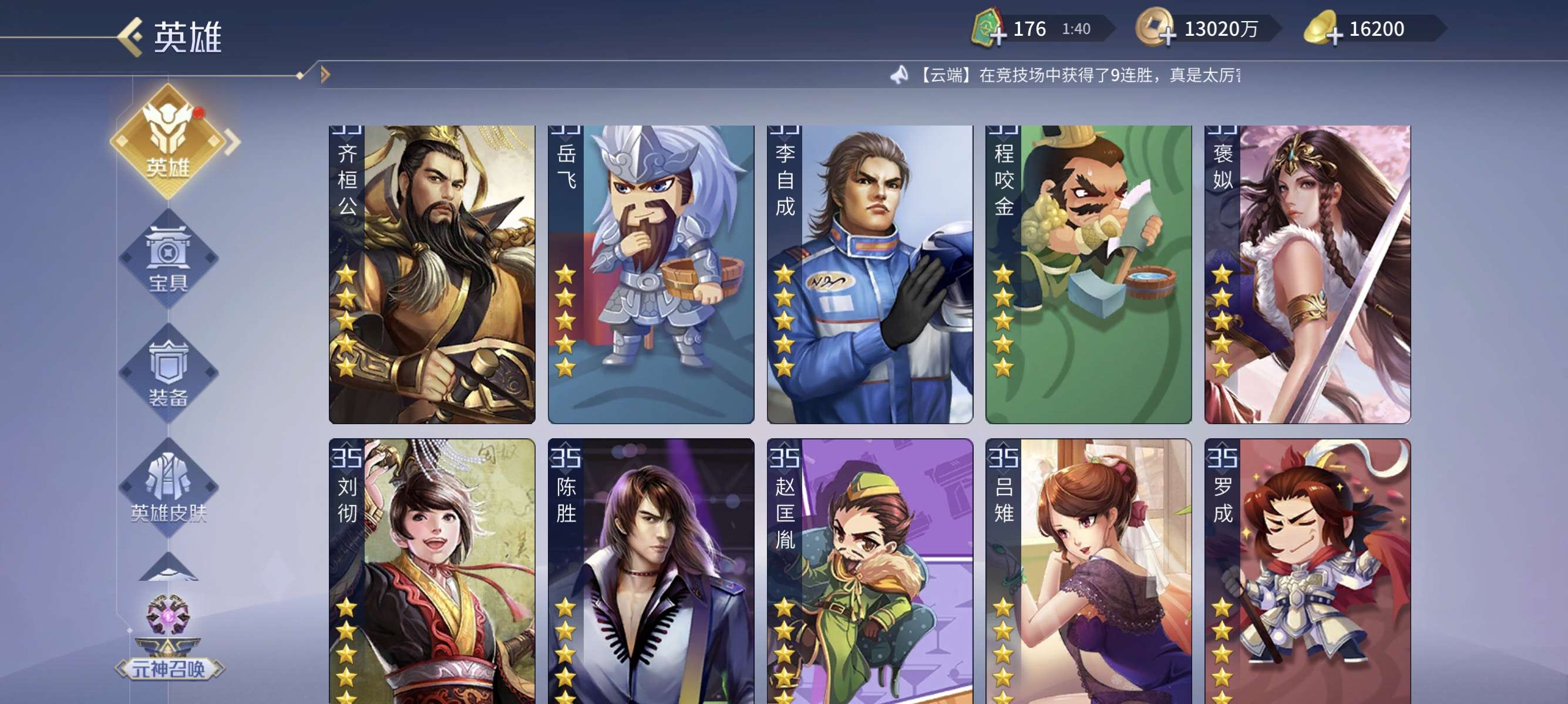 v13,兰陵王商鞅小偷包拯杨玉环等英雄应有尽有,五星印记超多,买到就是赚到