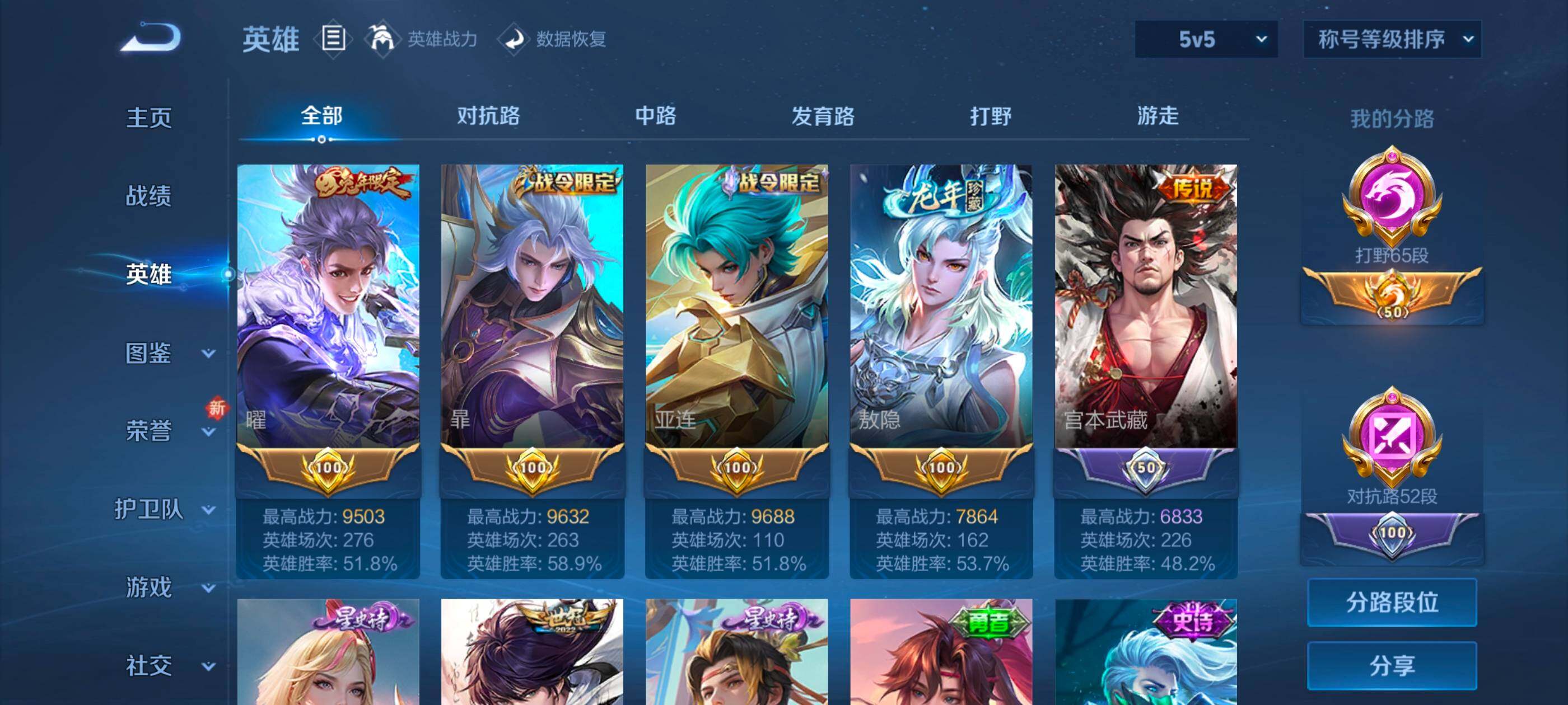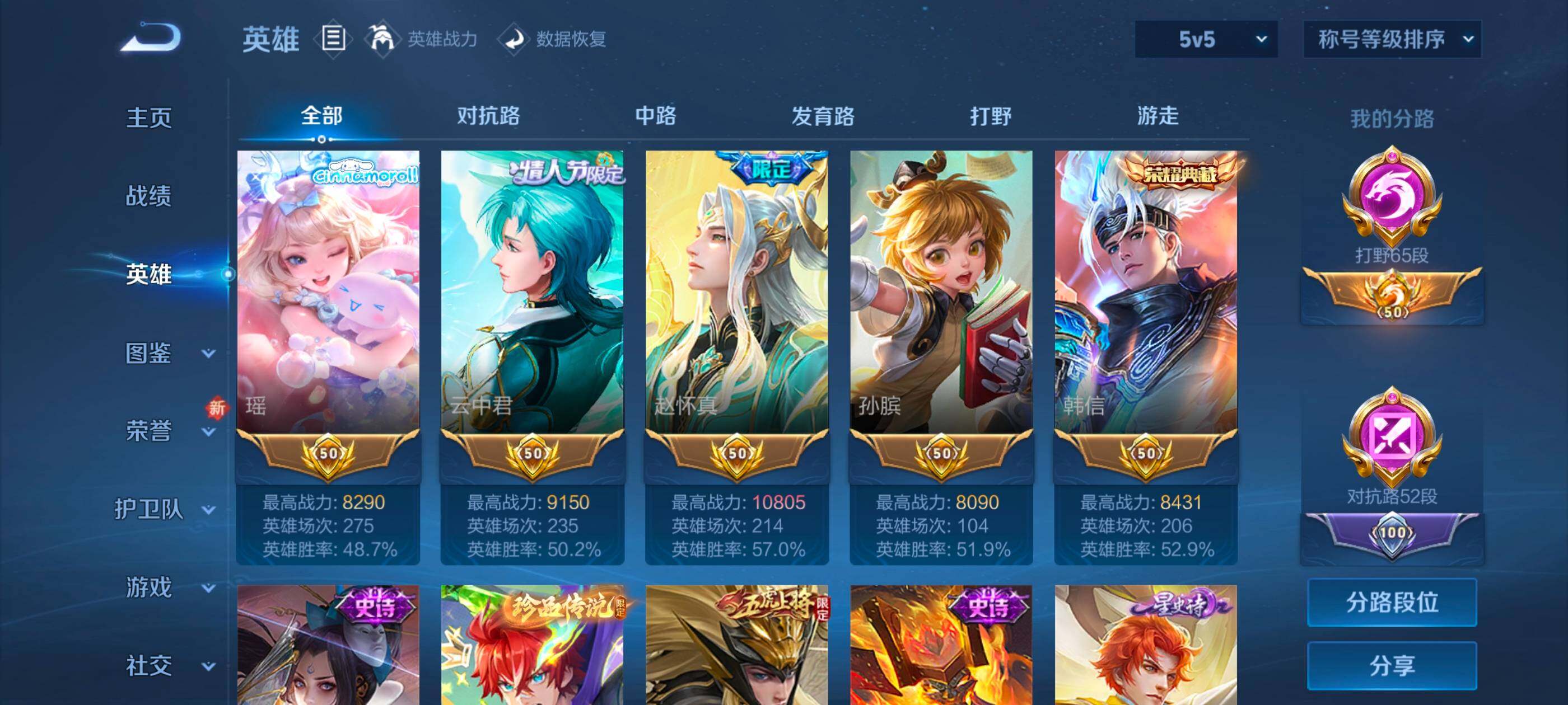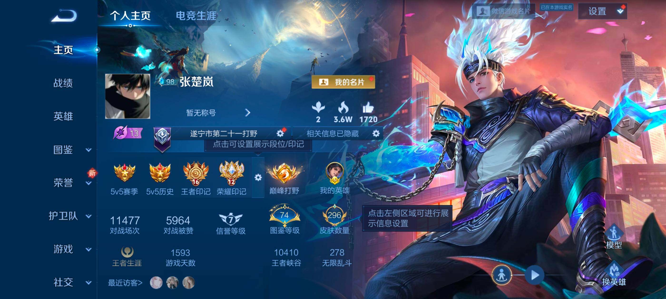 安卓WX-V7-最强王者段位-126英雄-296皮肤-1典藏皮肤-1珍品无双-4珍品传说-23传说-91史诗1月1号才能换绑