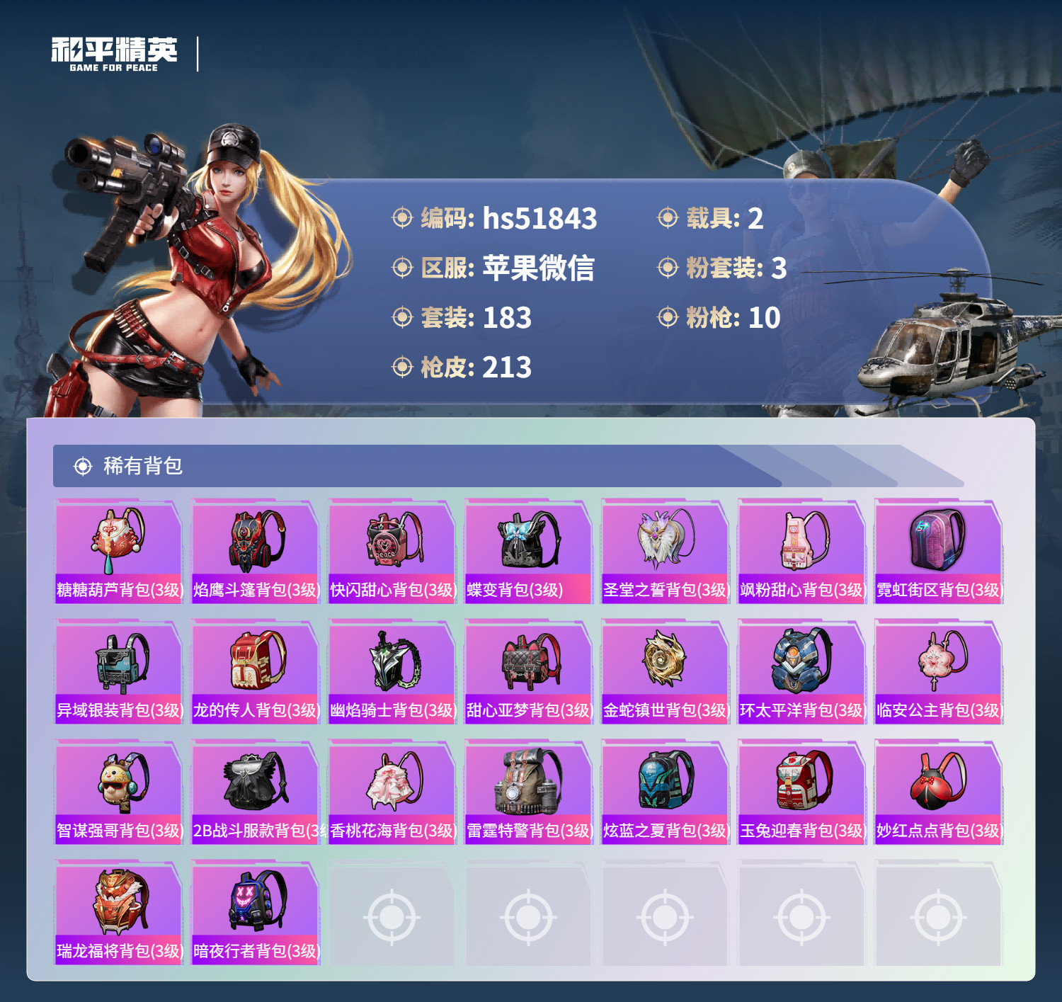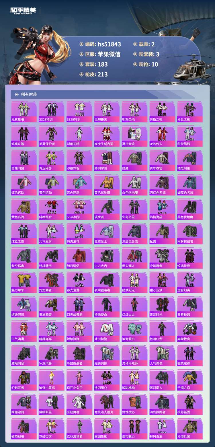 苹果v-15王牌印记-1红装-3粉装-10特效枪-2载具-183