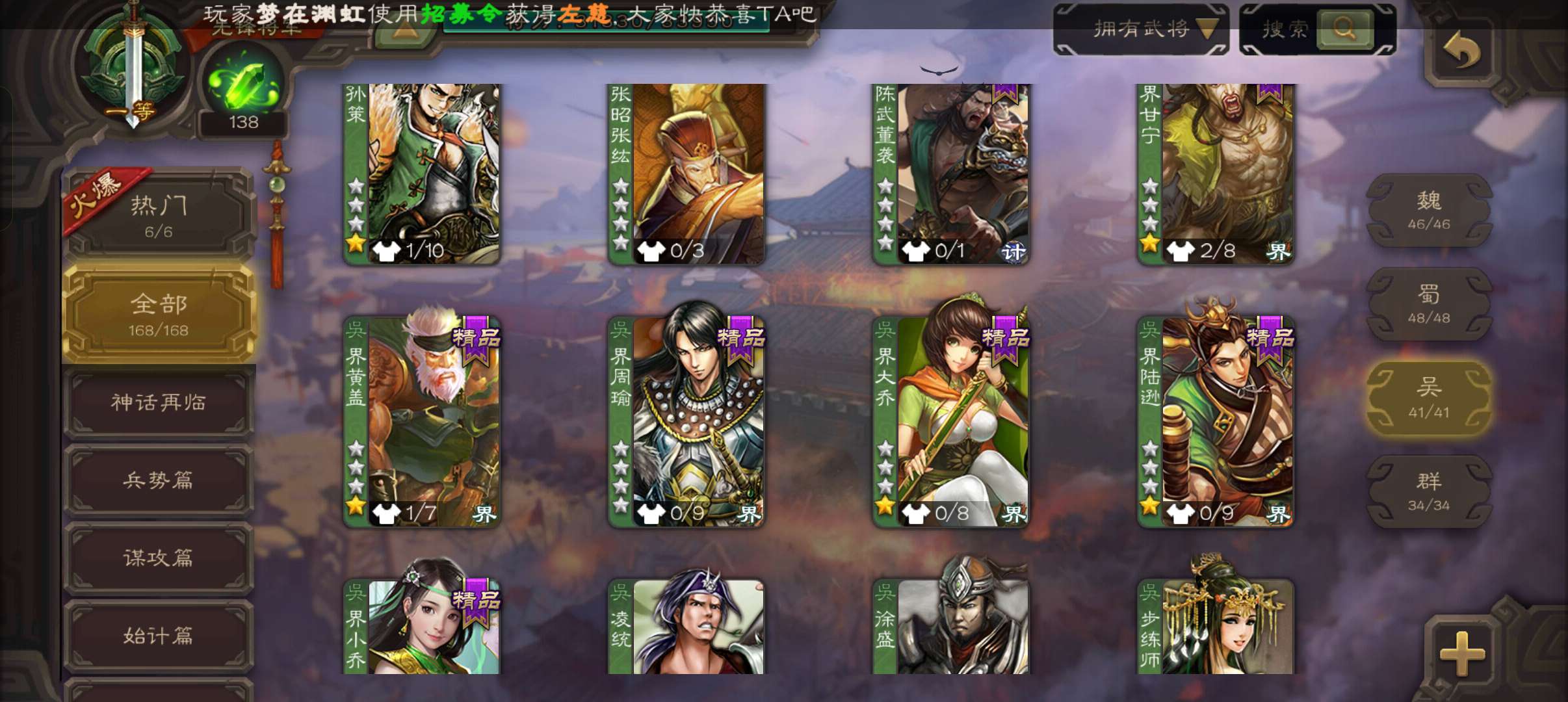 5史诗一等先锋,动态花鬘谋公孙瓒戏志才谯周沮授,甘夫人sp赵云金皮界曹植势田丰168将