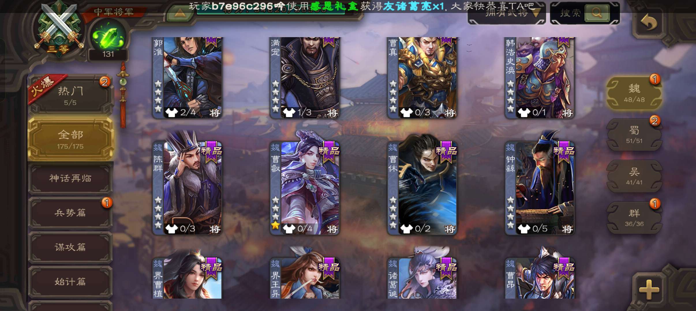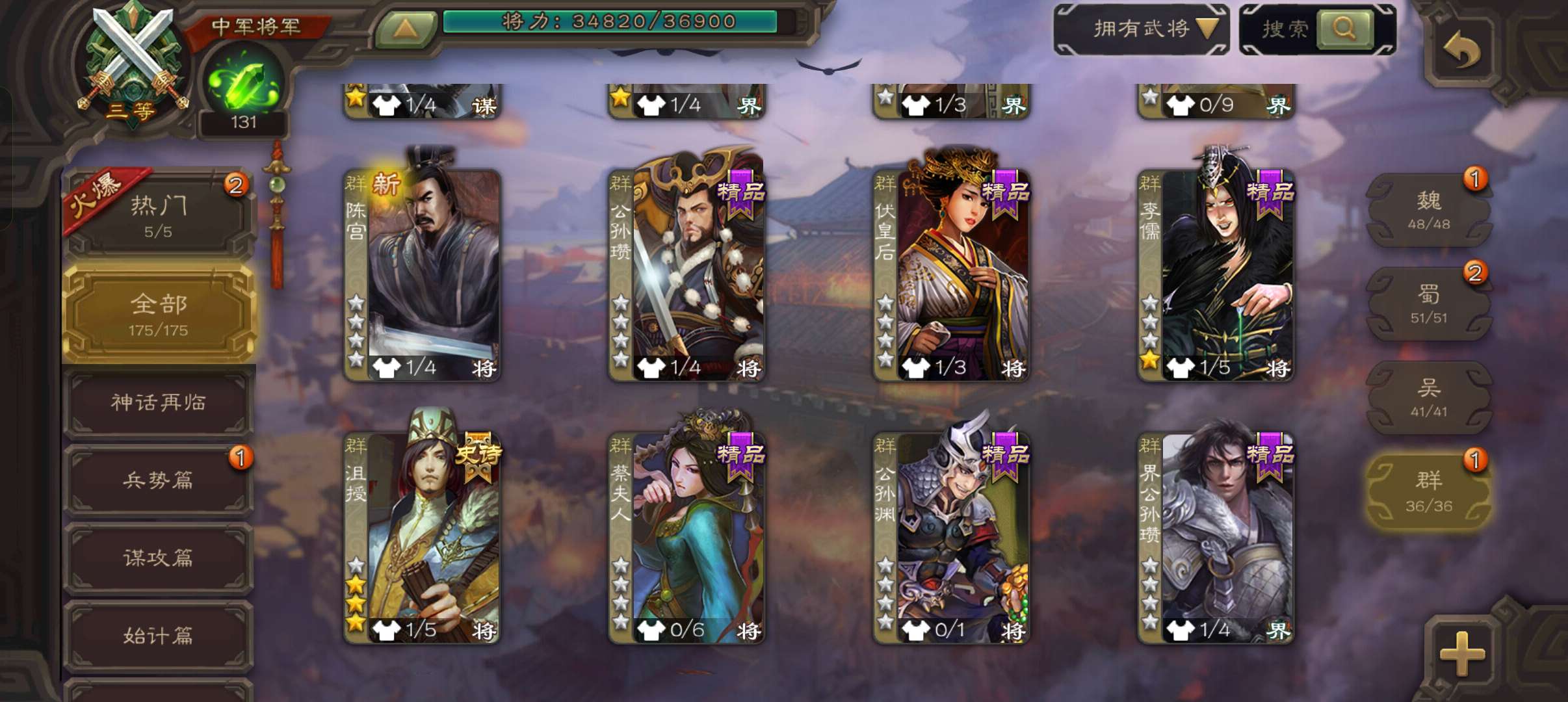 史诗武将数量: