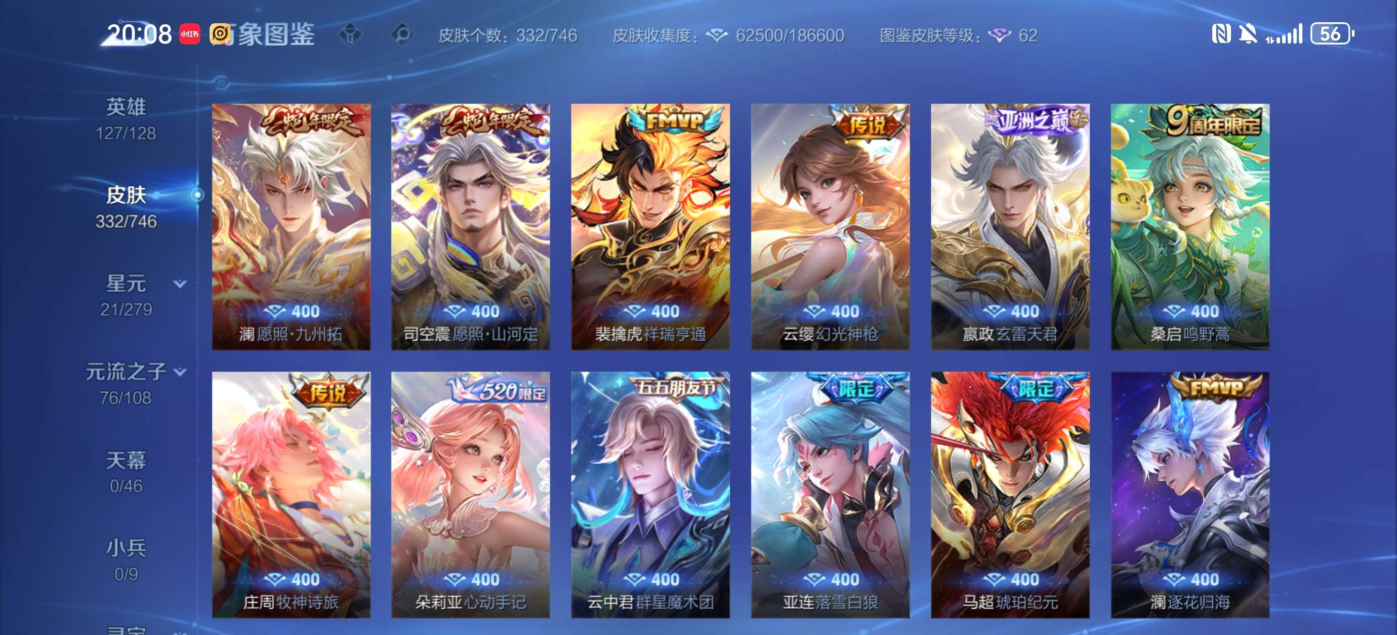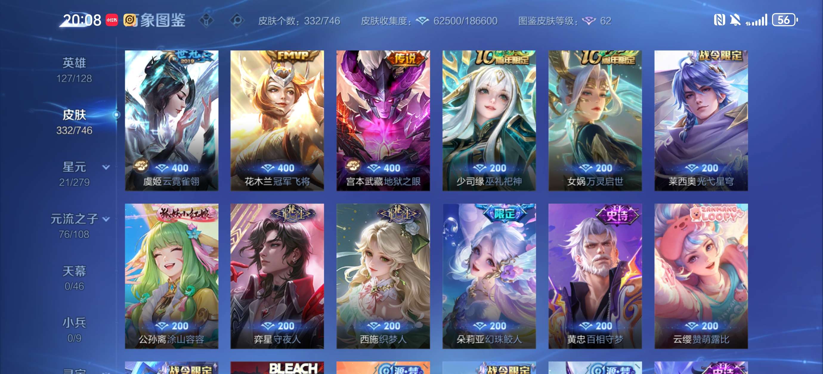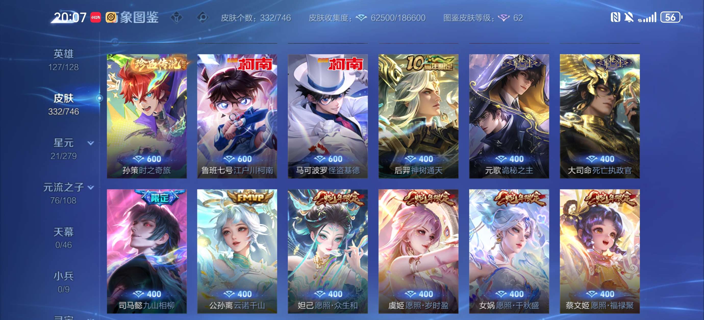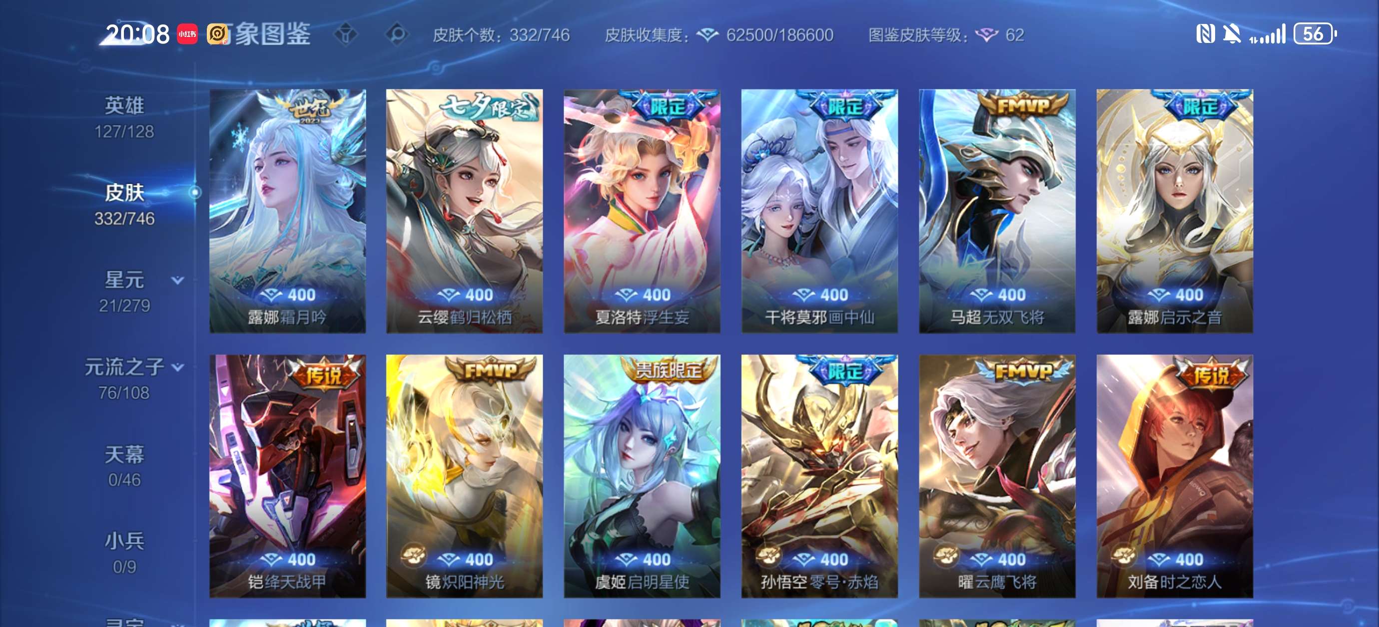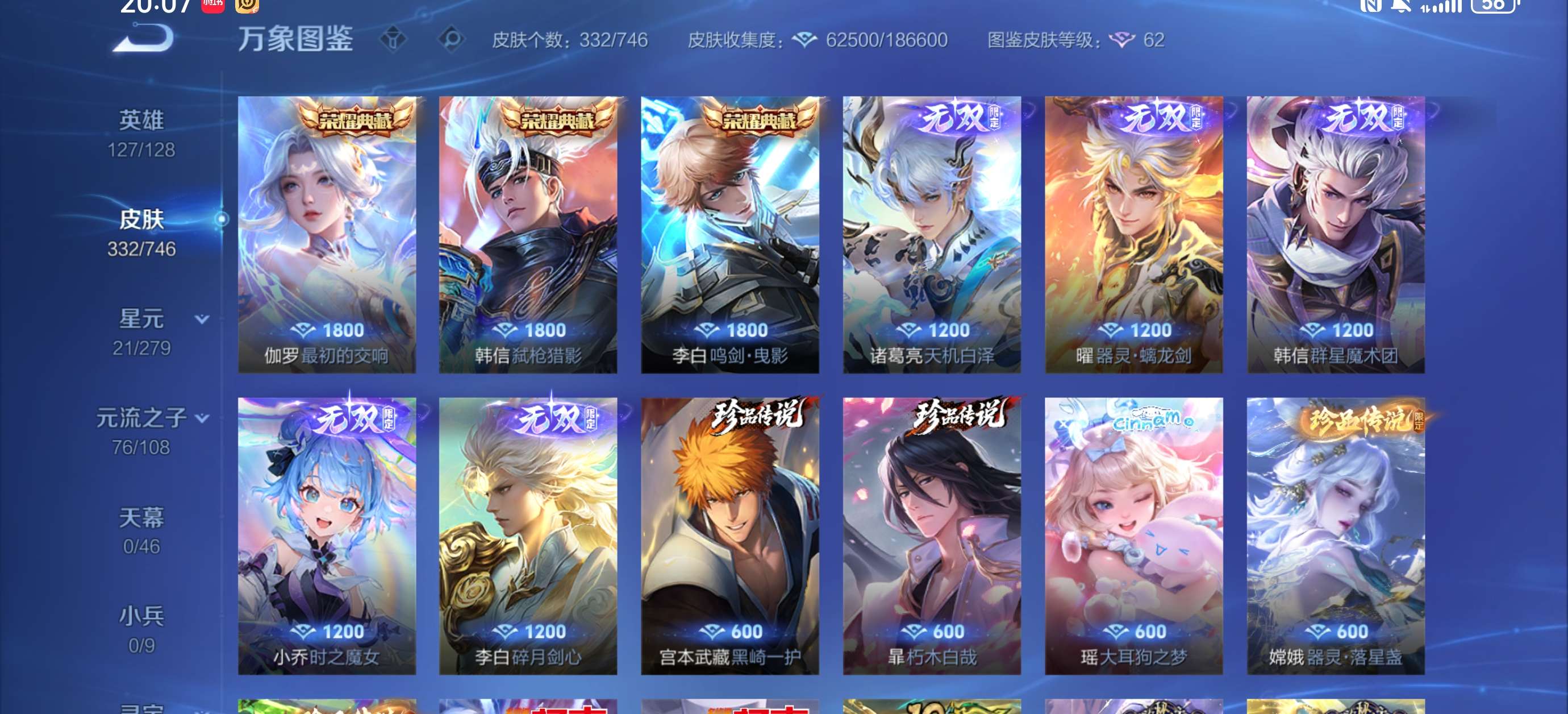 珍品传说7 无双5 典藏3 星元5 传说36 史诗82 限定110 英雄127