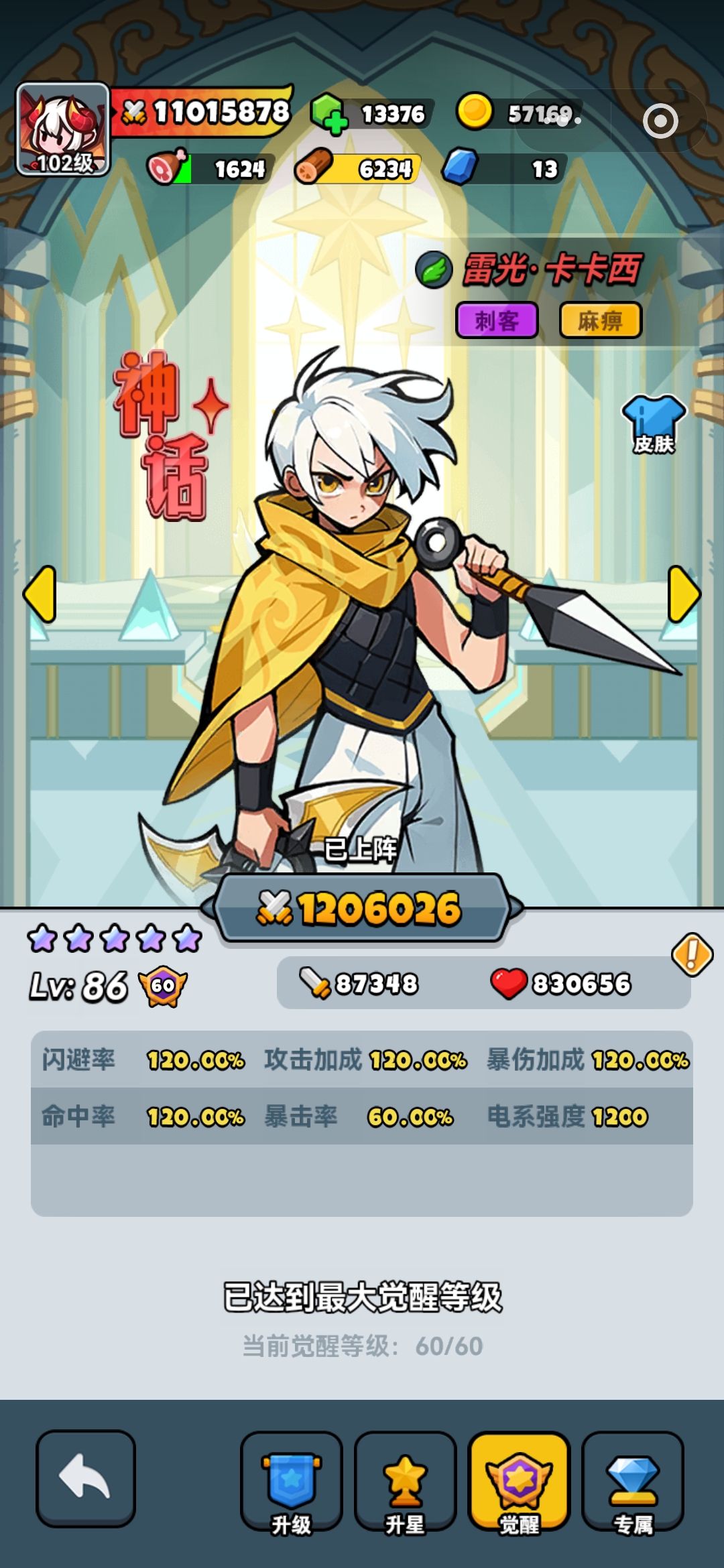 60天V10活跃区账号,基础打得特别牢,李白卡卡西60觉,猴子专武4阶,100级红暴击闪避格挡套都全