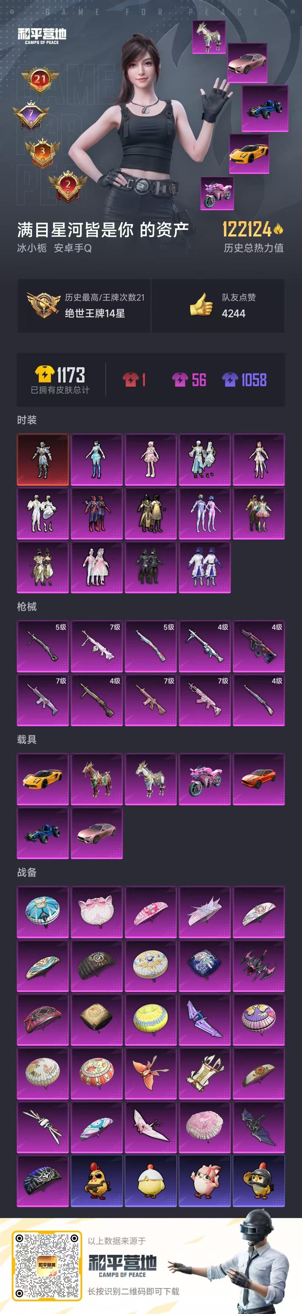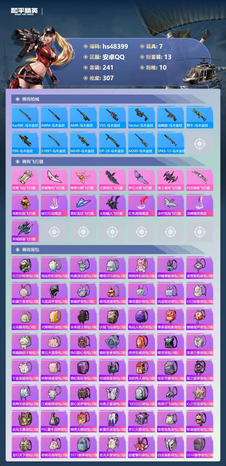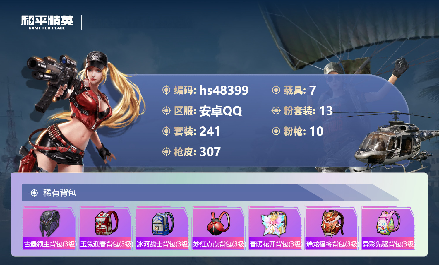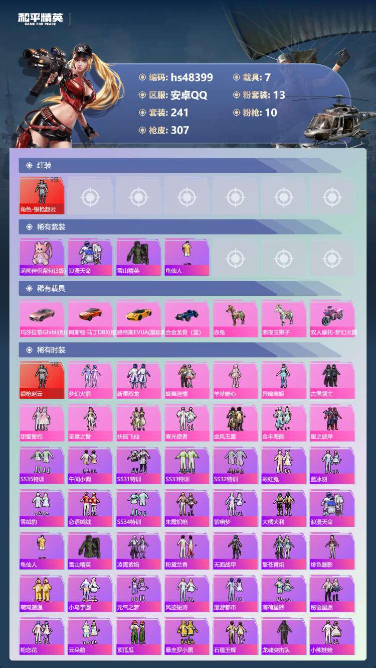 安卓Q-1红装2稀有7载具13粉装10特效枪29热门241套装307枪皮 122124热力值 21印