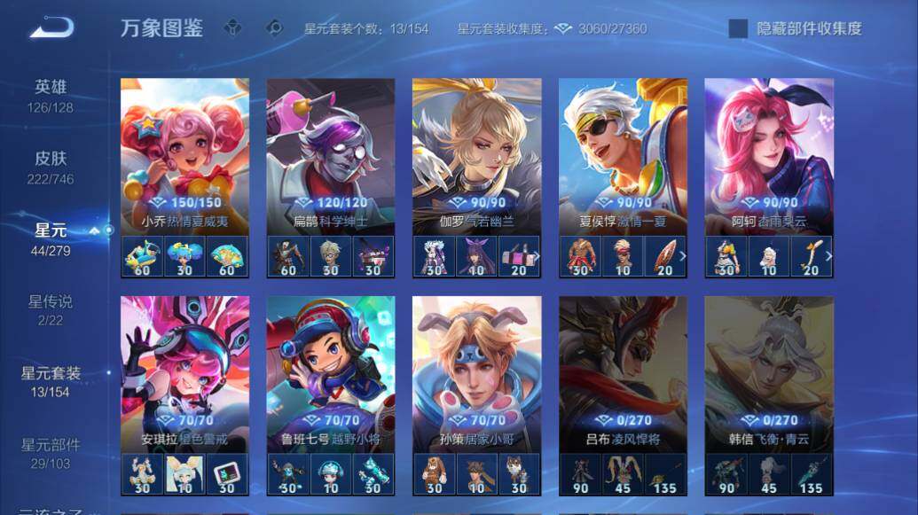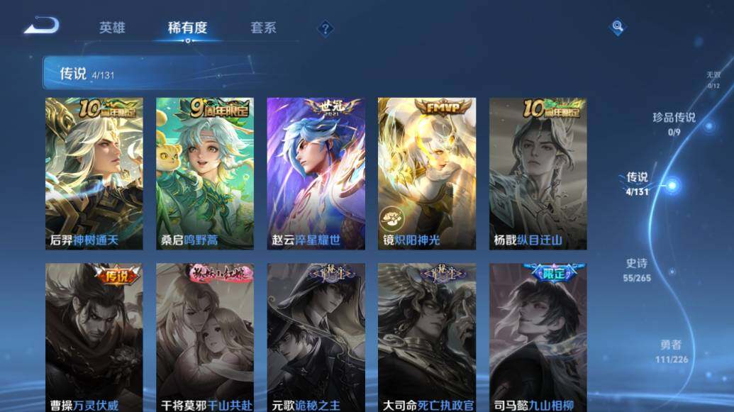 安卓Q-V7-126英雄-222皮肤-1典藏-4传说-55史诗-6按键 铠银白咏叹调铠青龙志 赵云淬星耀世,镜炽阳神光 韩信傲雪梅枪 孙悟空至尊宝