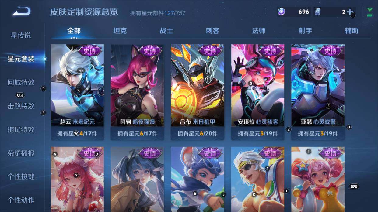 3太阳3月亮3星星0违规,4按键 安卓Q-V5-125英雄-195皮肤-5传说-54史诗