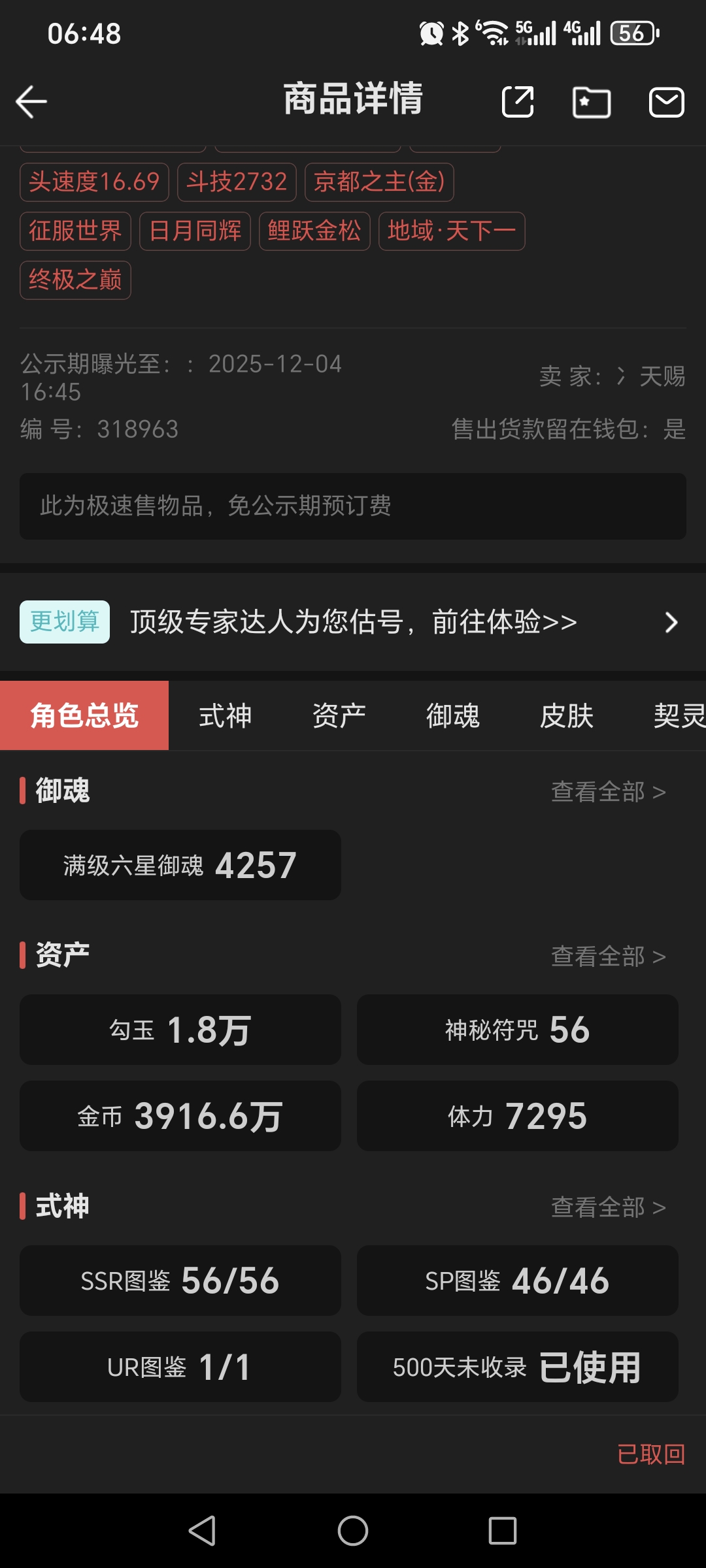 通过App,与卖家商议价格及保险,并向卖家索要账号最新截图,确认后下单购买。
