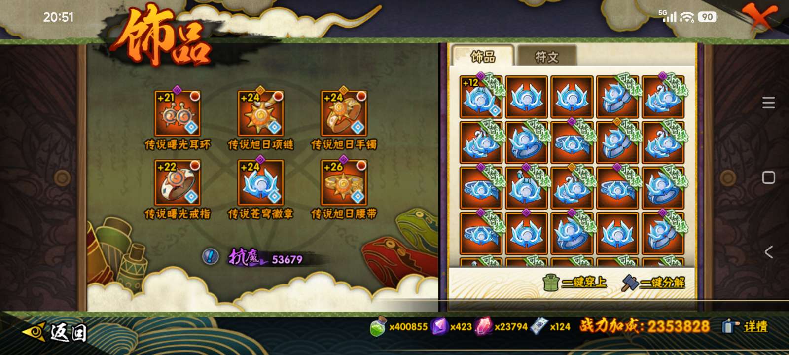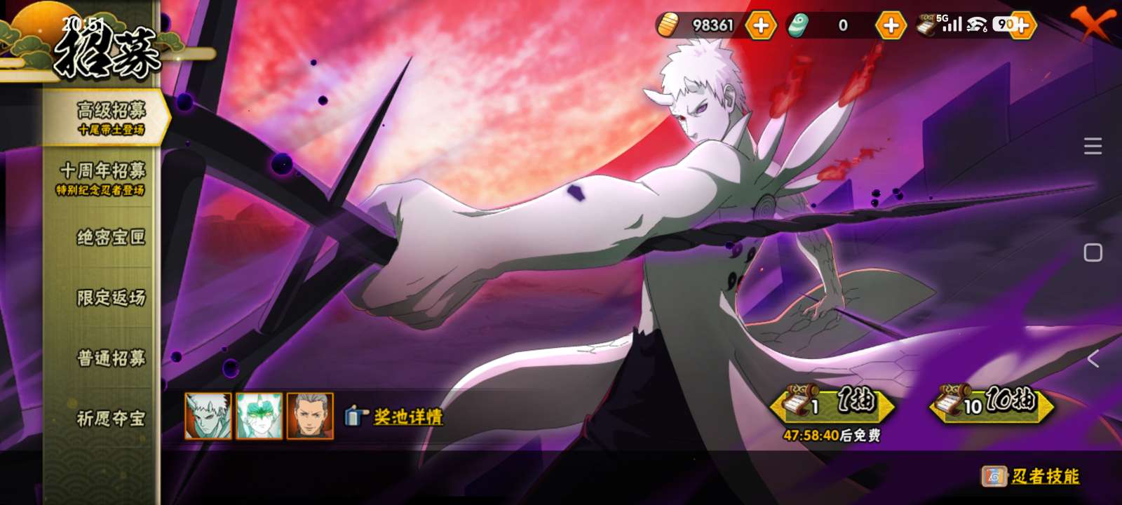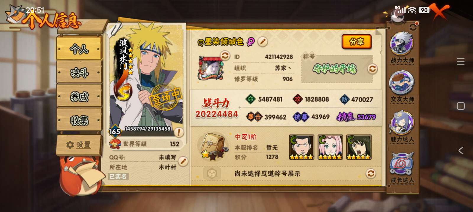 安卓极品装逼号,高招S高招A都有,准V0号,金币还有10万多,十尾带土53片。