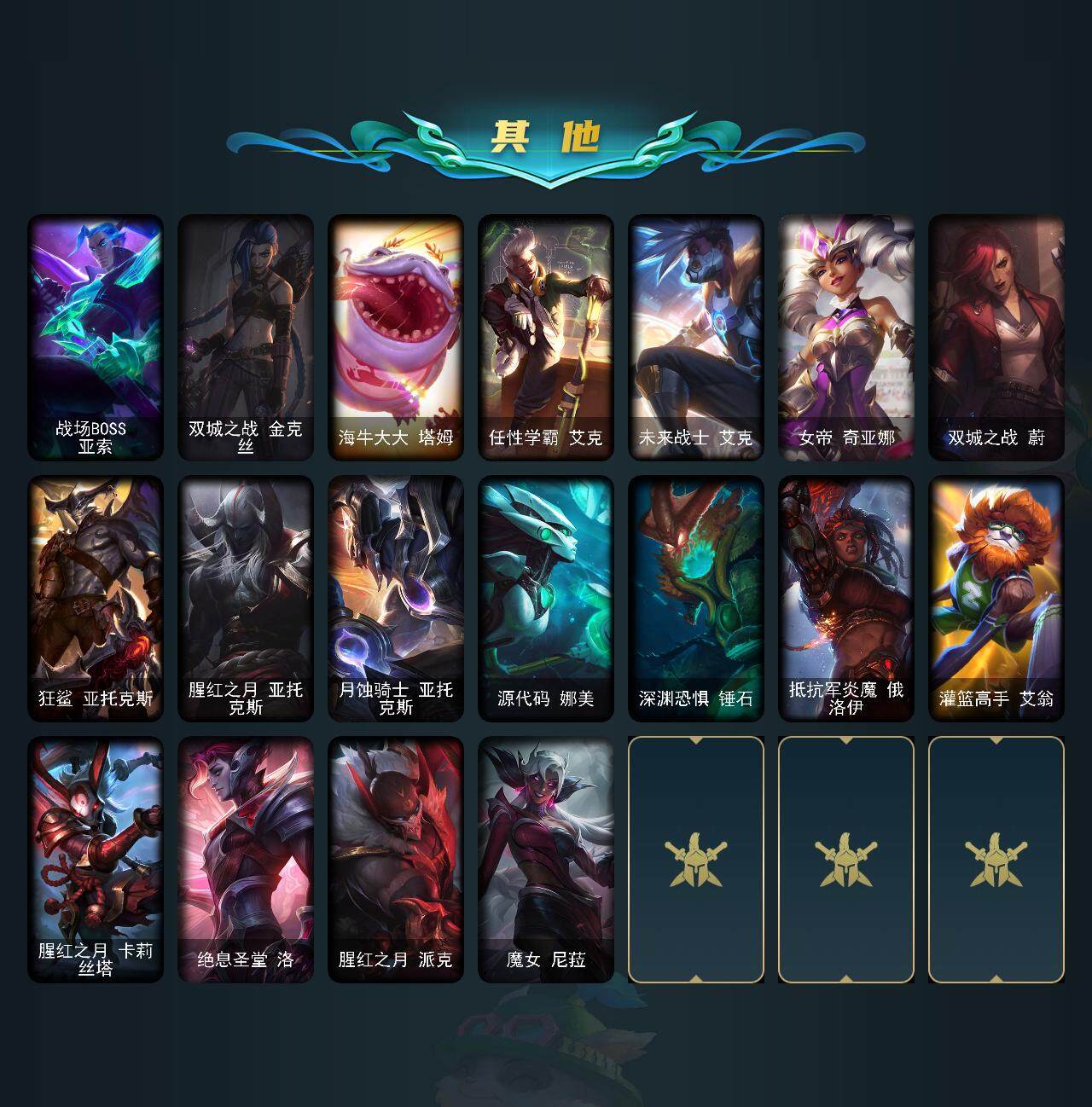 【LOLZ1040】171英雄/385皮肤/6神话/59限定/7臻彩/33炫彩/35传说/85史诗/黑铁/觅心之翼奎因头像/至臻墨之影武者亚索/天龙之子卡莎飞龙乘云/无畏骑士瑟庄妮赤子初心/战斗学院卡特琳娜盛典礼服/幻灵战斗蝠薇恩梦幻强袭/可爱可爱粉红红布里茨/魔女阿卡丽虚荣/净雪之月莫甘娜冬虹/银龙裁决泰隆/神龙之翼库奇/美猴王孙悟空/紫金罗刹莫甘娜/玉净夜叉凯特琳/点心宝贝阿木木/海克斯科技雷克顿/甜心宝贝安妮/幸福女神乐芙兰/冰雪风暴希维尔/圣诞开心鬼提莫/圣诞狂欢努努和威朗普/圣诞糖果棒