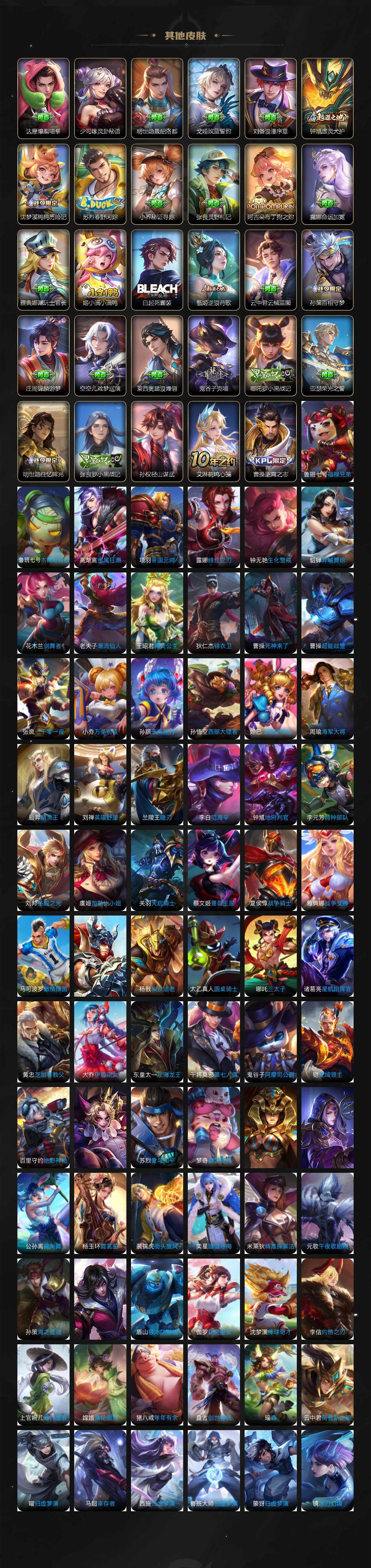 【英雄全皮】:孙权全皮,鬼谷子全皮,猪八戒全皮,夏洛特全皮,空空儿全皮,影全皮