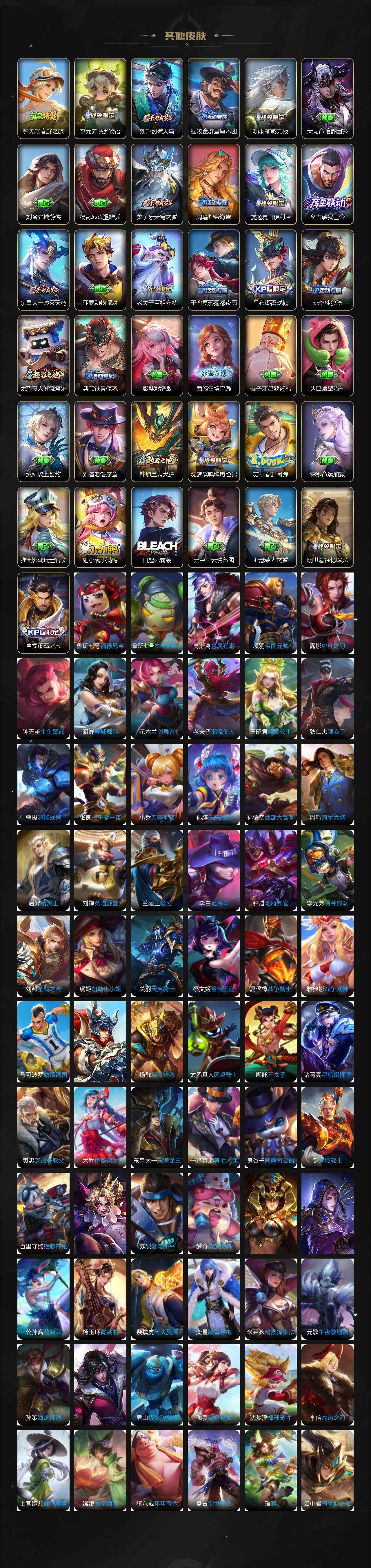 【限定皮肤】:白起狰,蒙犽顽岩魄,虞姬夏日便利店,姜子牙天穹之誓,杨戬破阵退雄兵,狄仁杰阴阳师,赵云皇家上将,赵云百