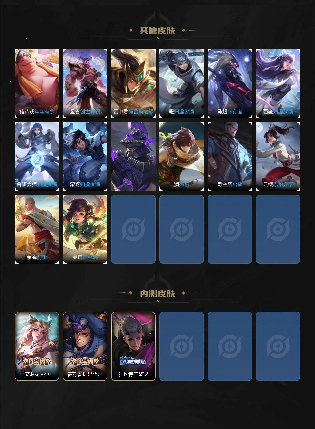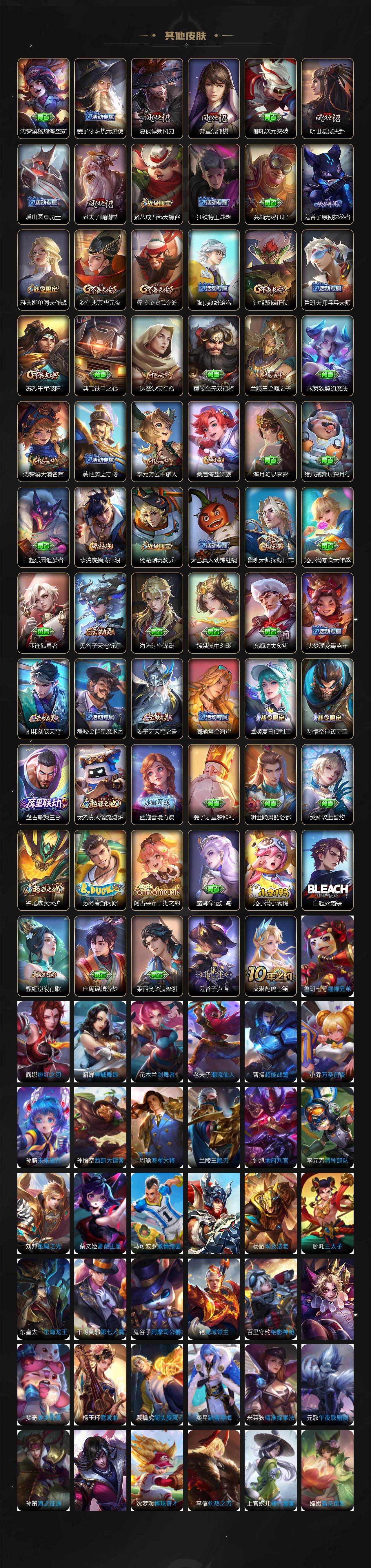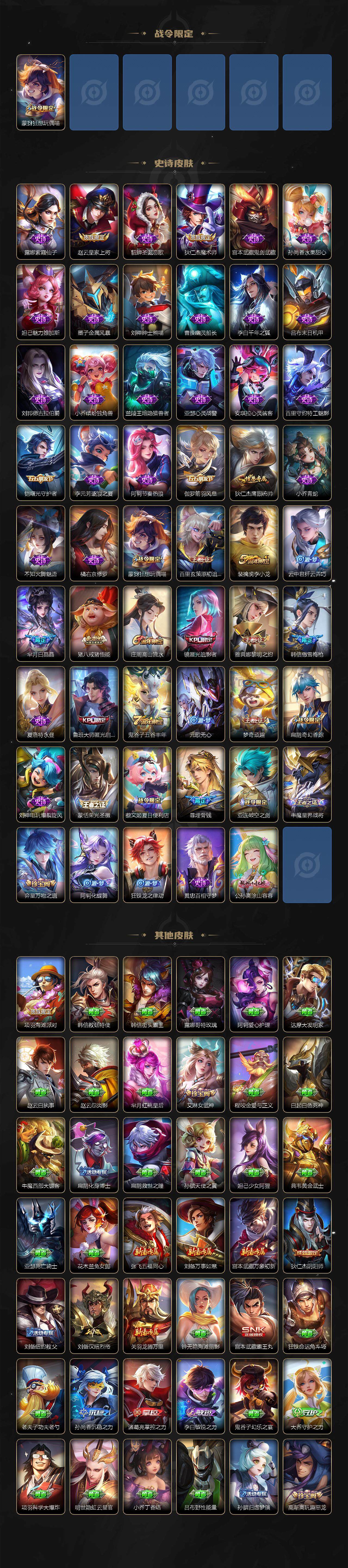 贵族4/皮肤217/典藏1/传说5/史诗53/英雄125/